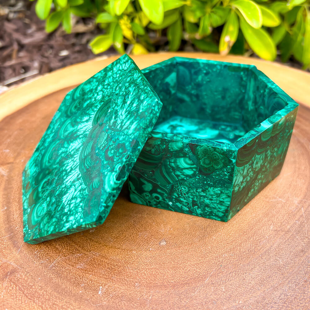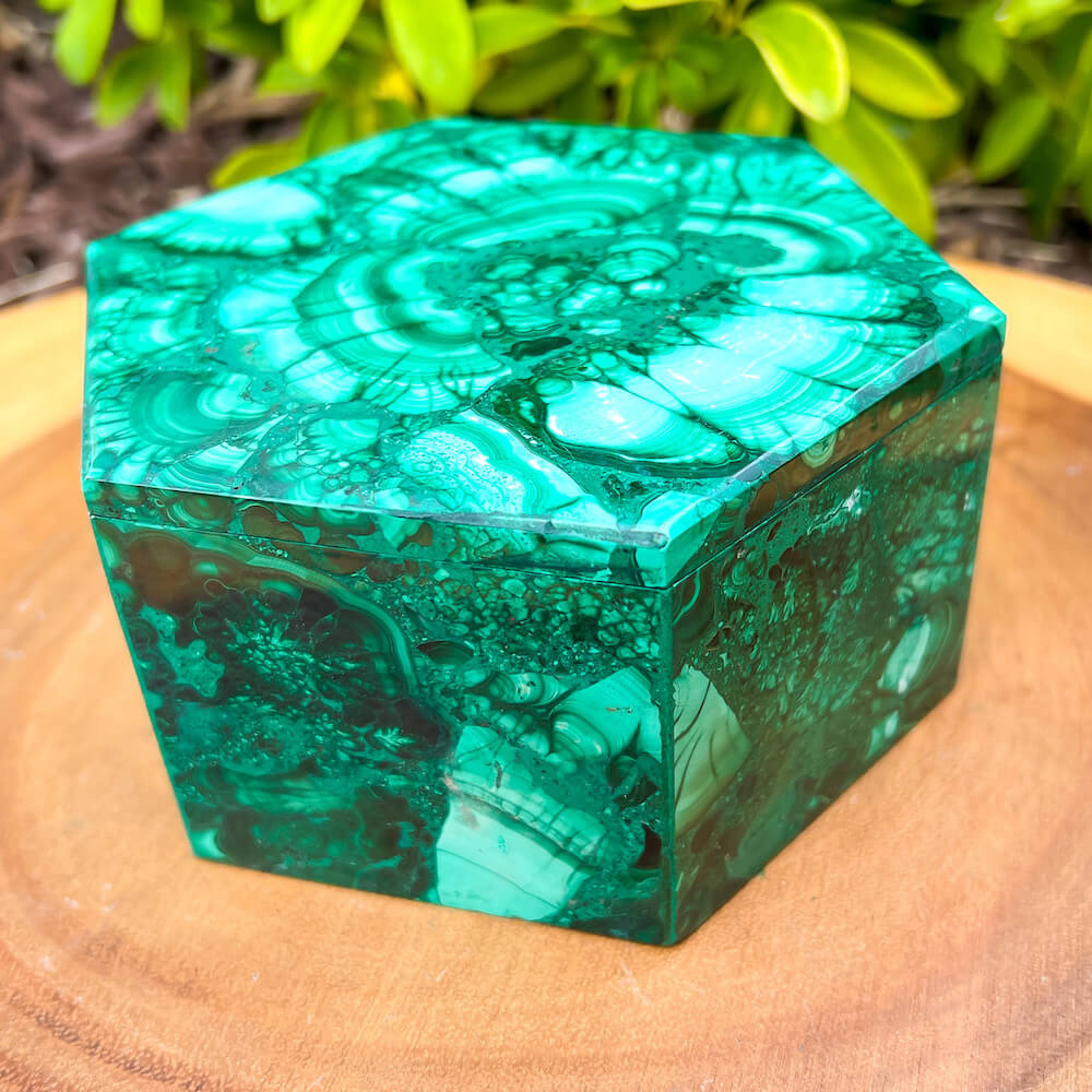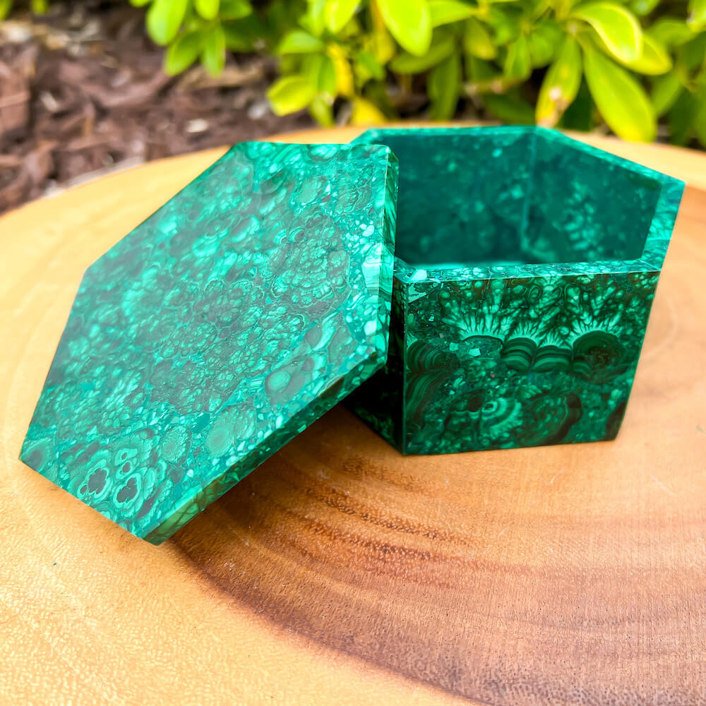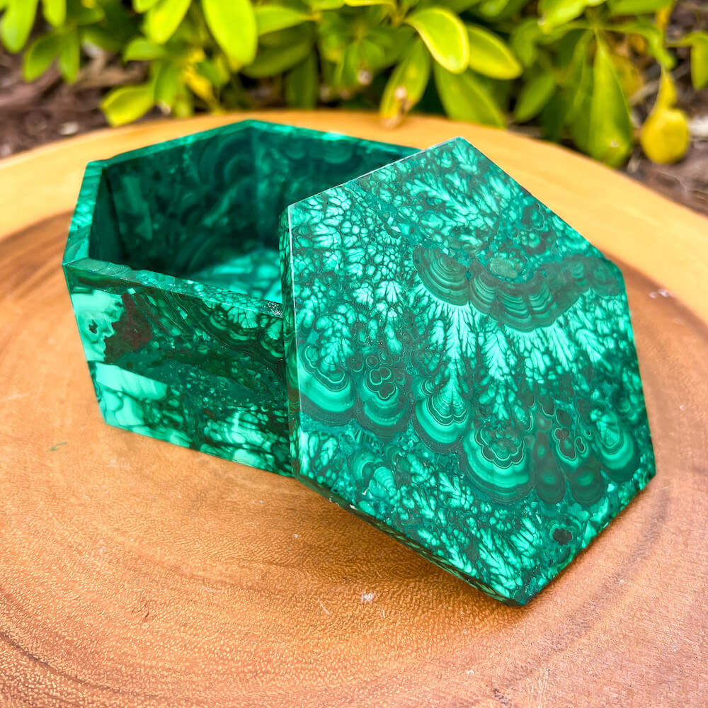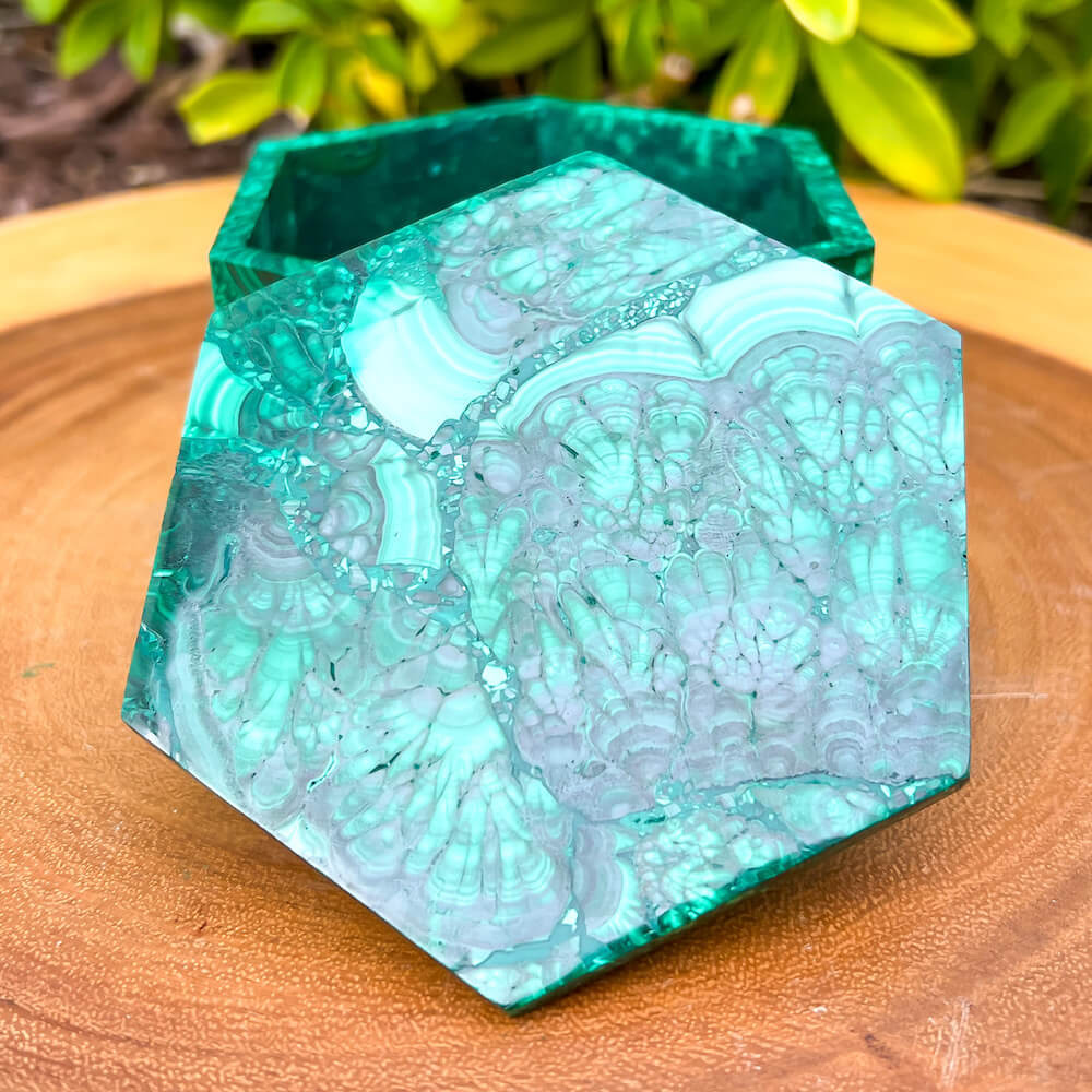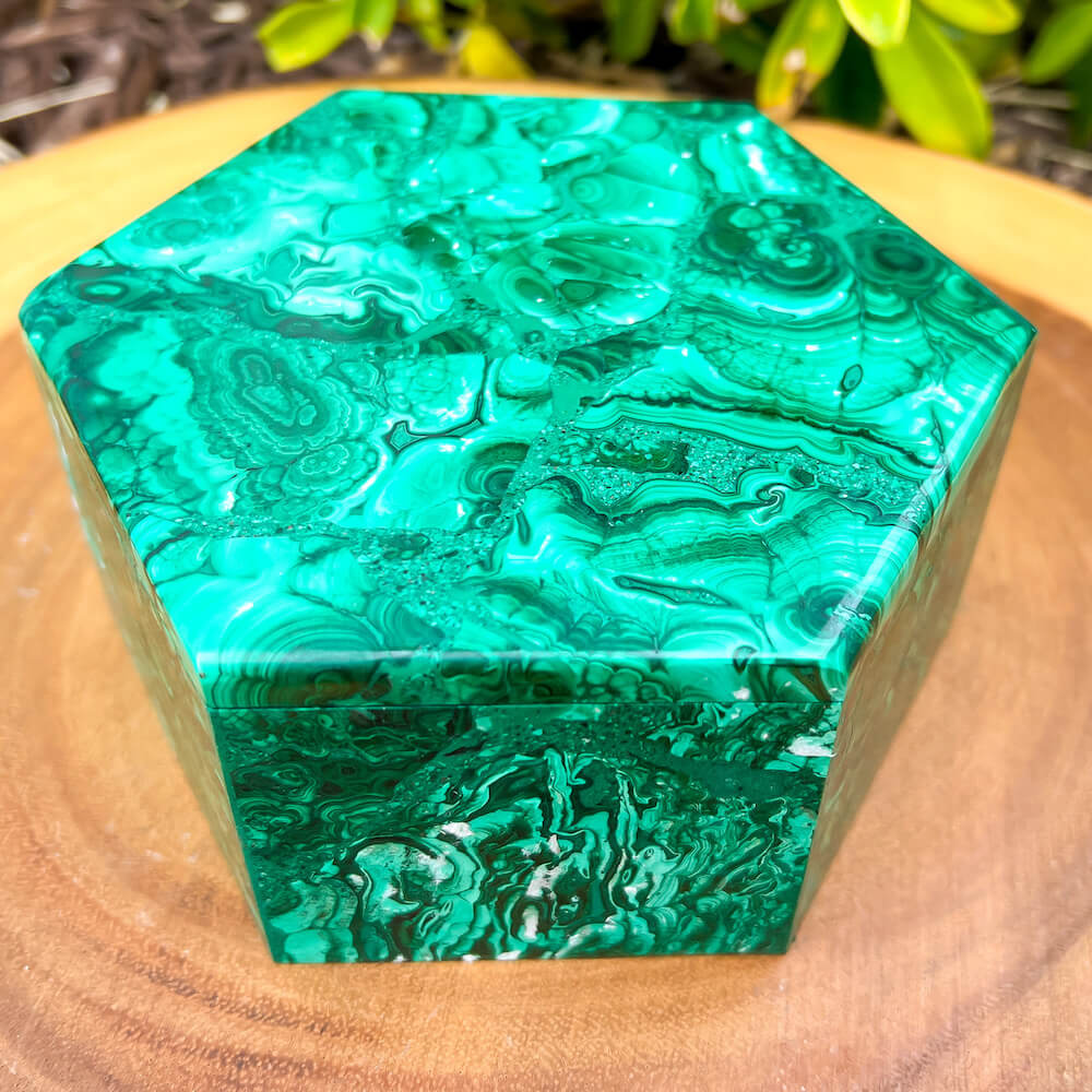 Joyero con Tapa de Malaquita Genuina - Hexágono