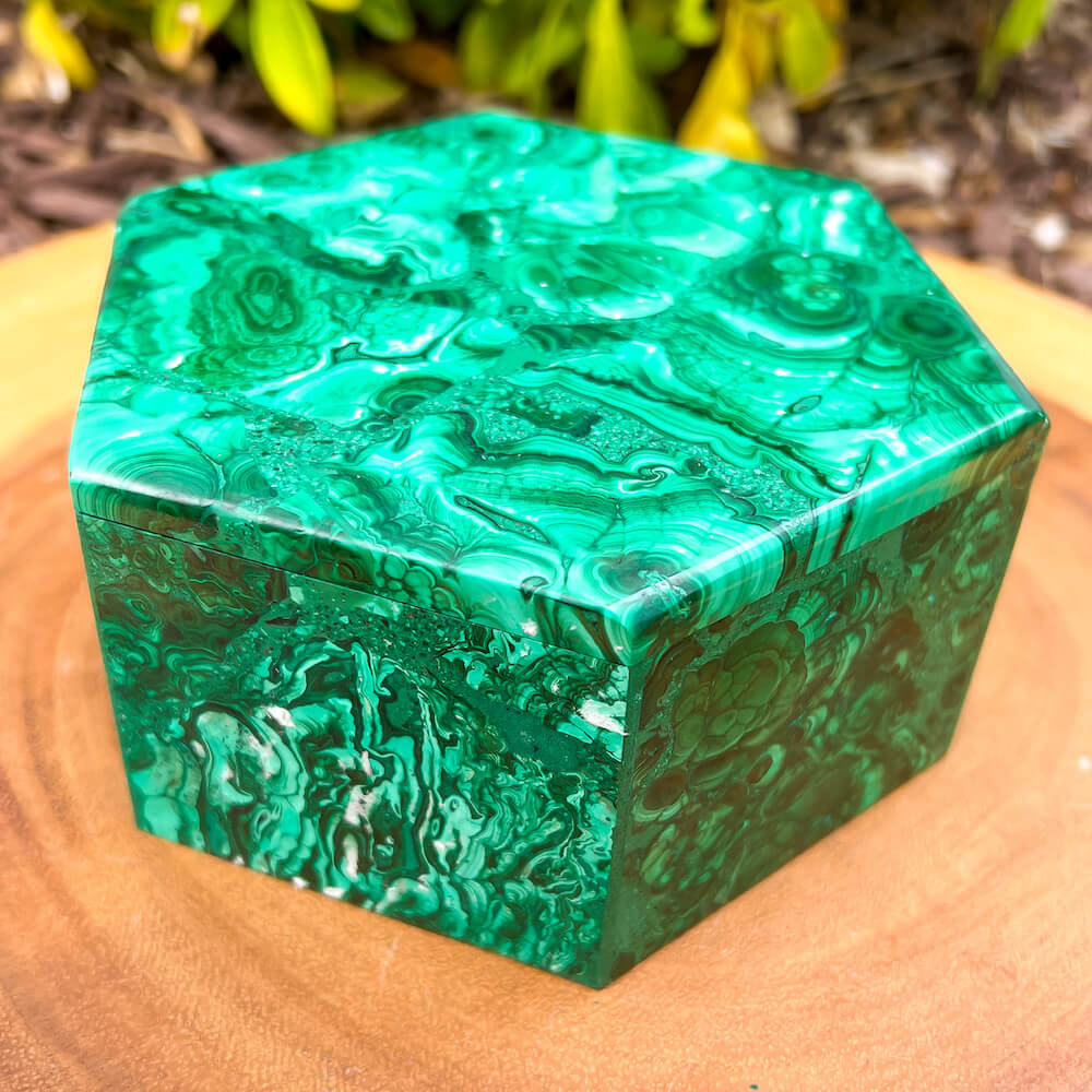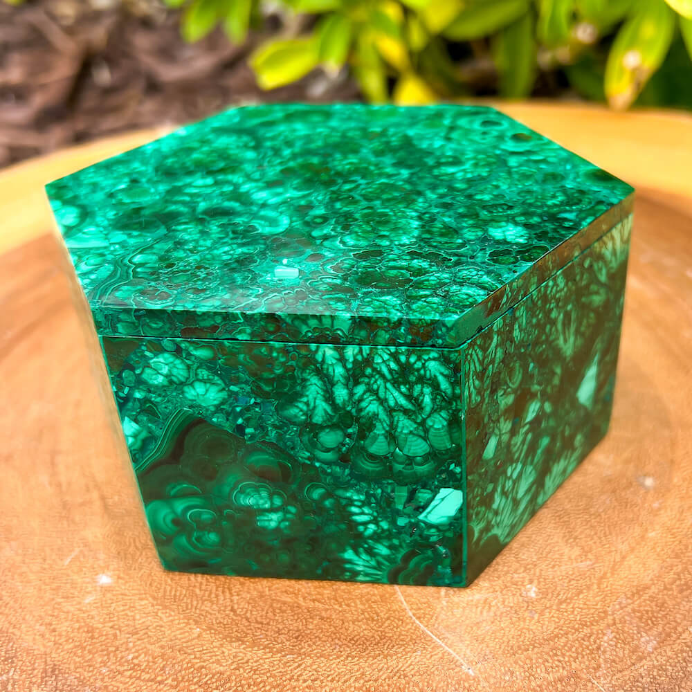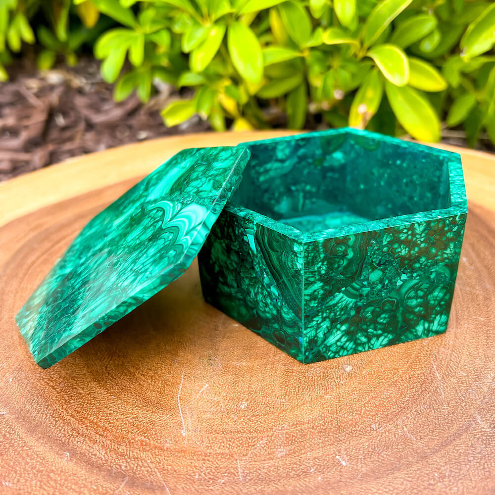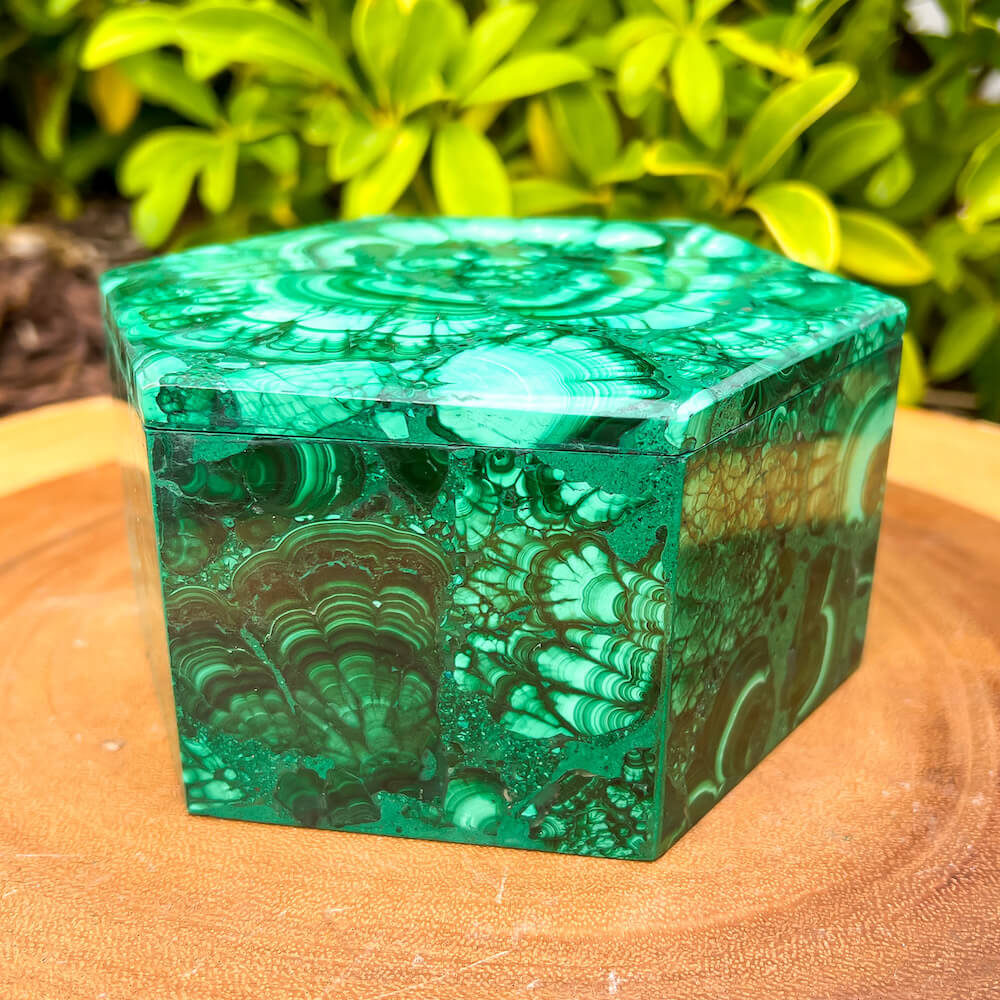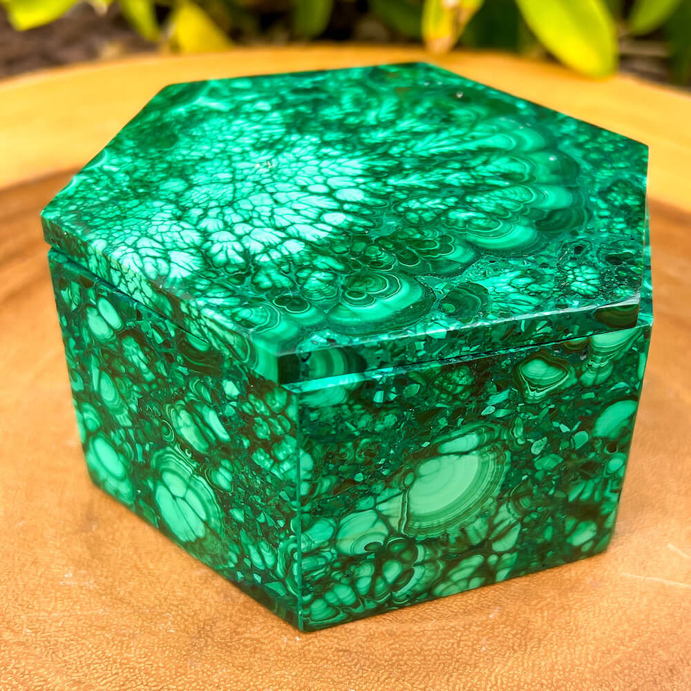 Joyero con Tapa de Malaquita Genuina - Hexágono
