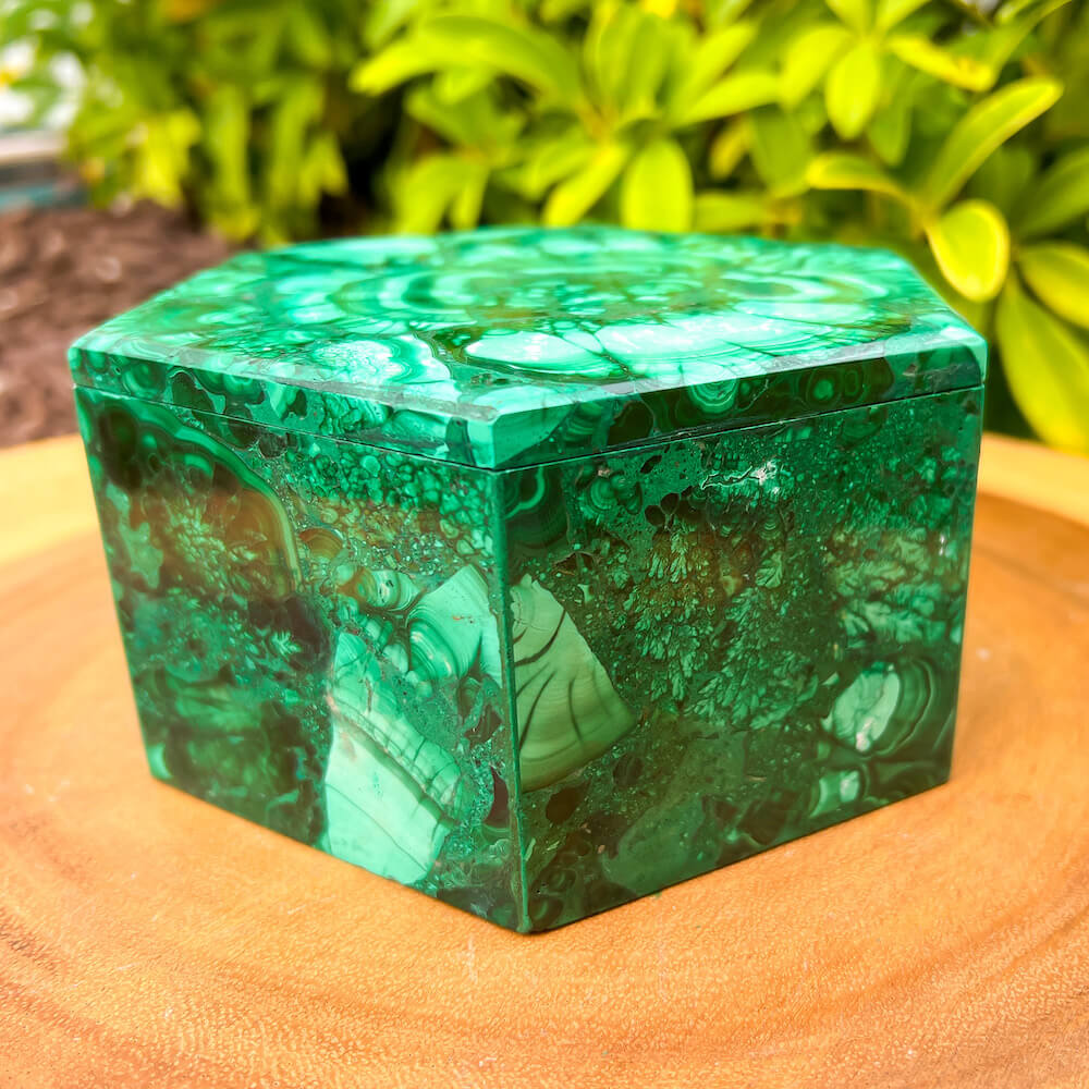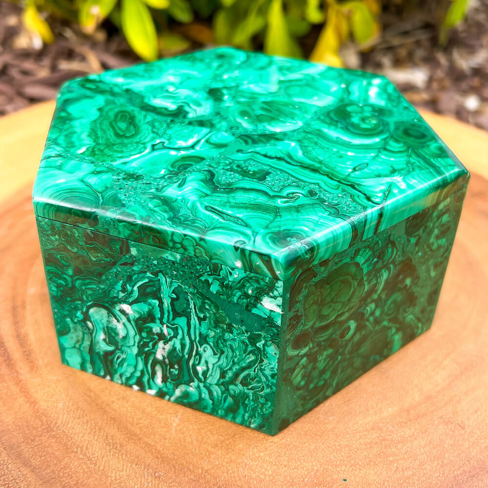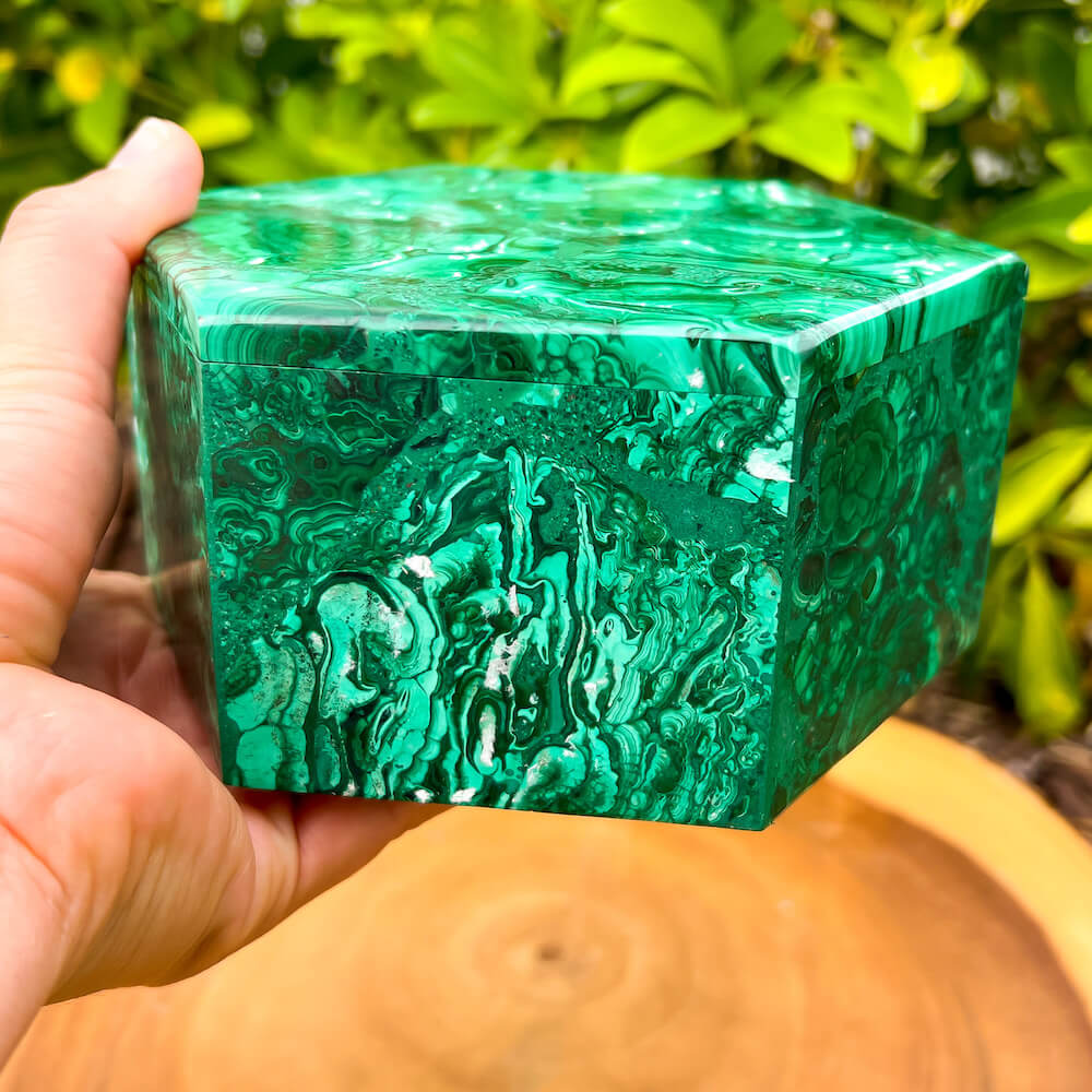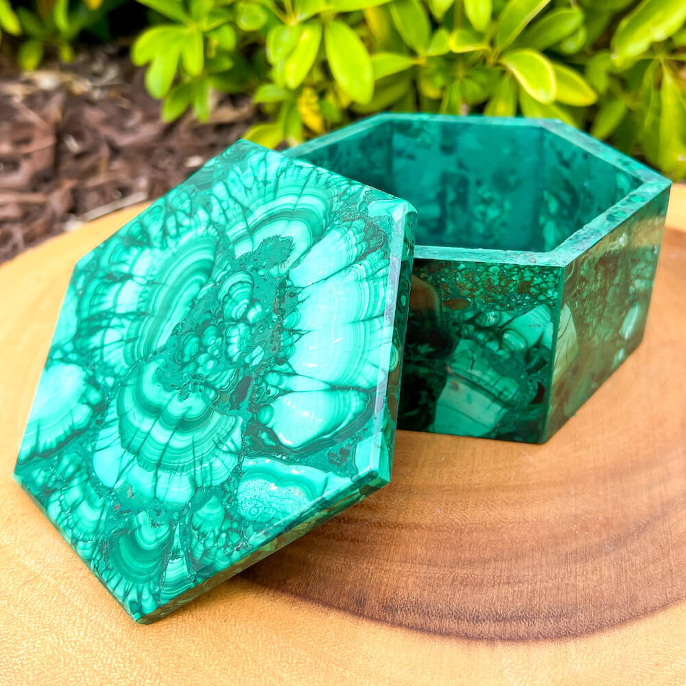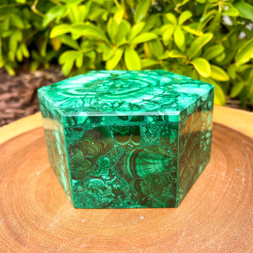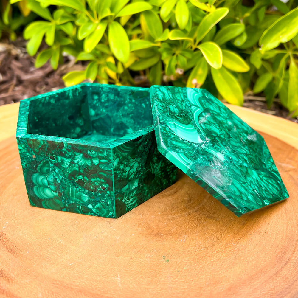 Joyero con Tapa de Malaquita Genuina - Hexágono