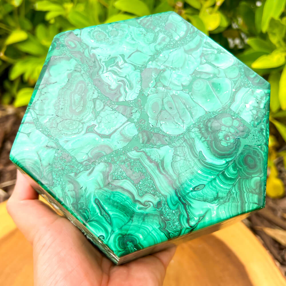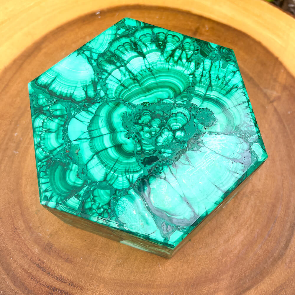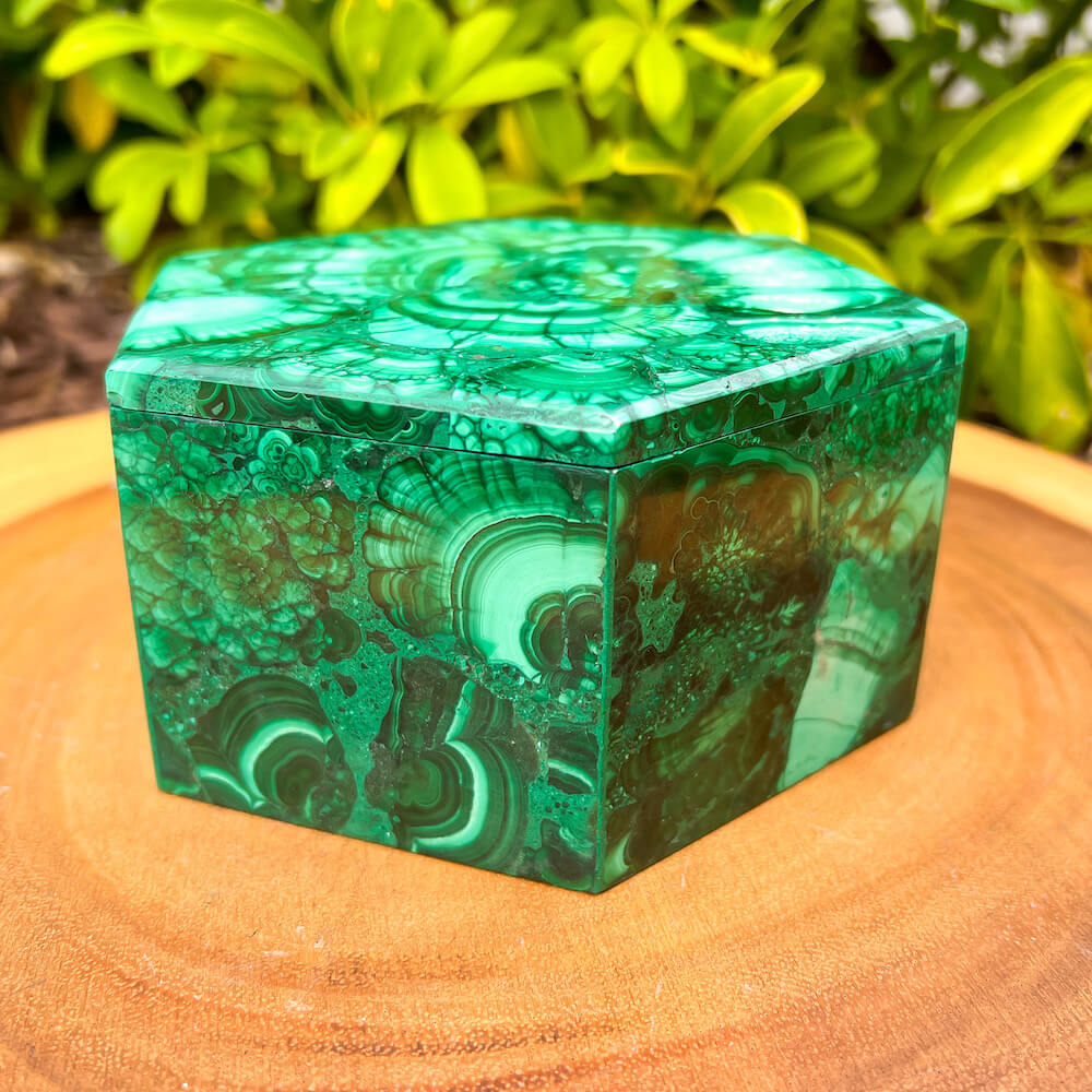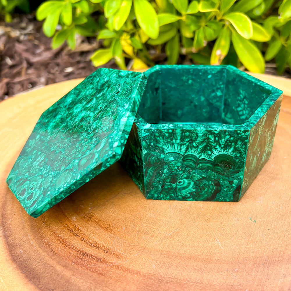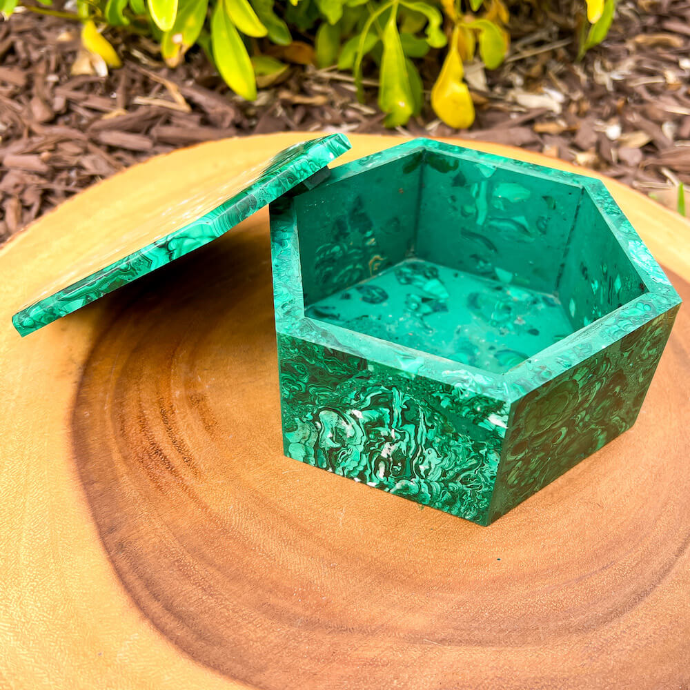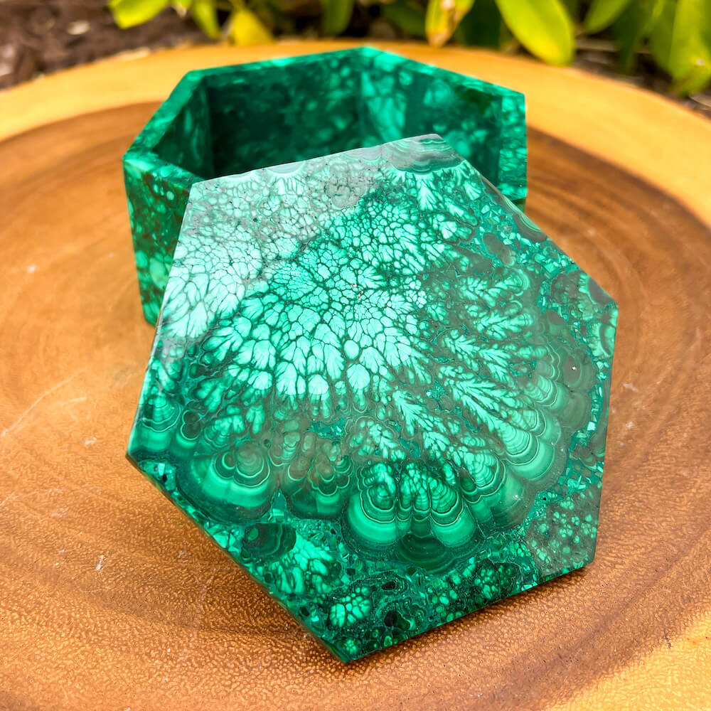 Joyero con Tapa de Malaquita Genuina - Hexágono