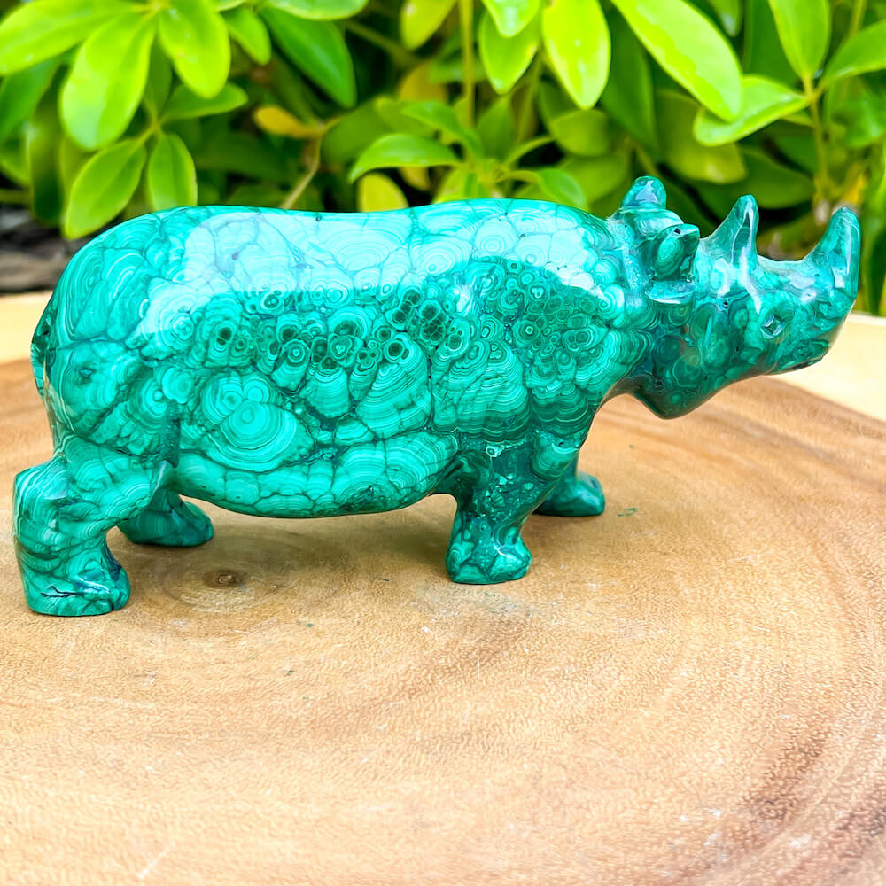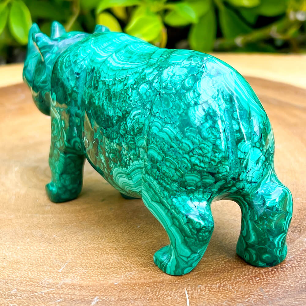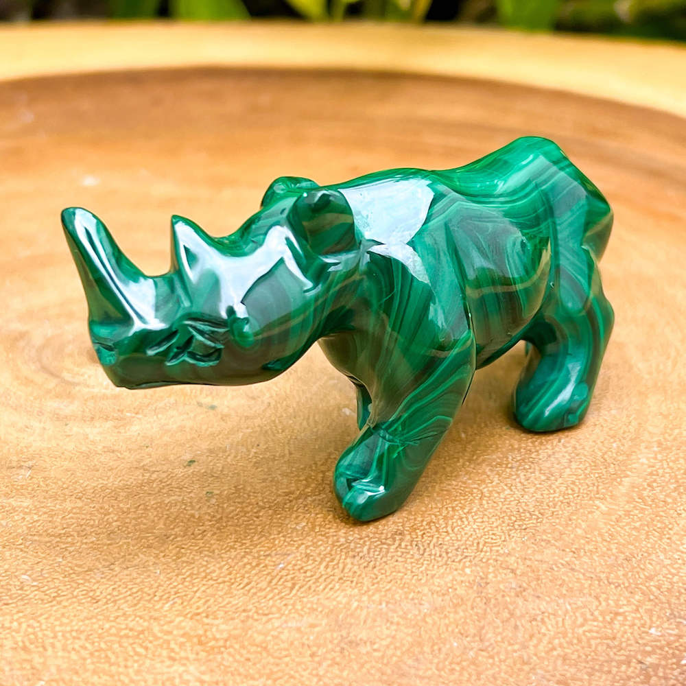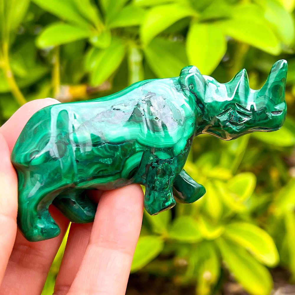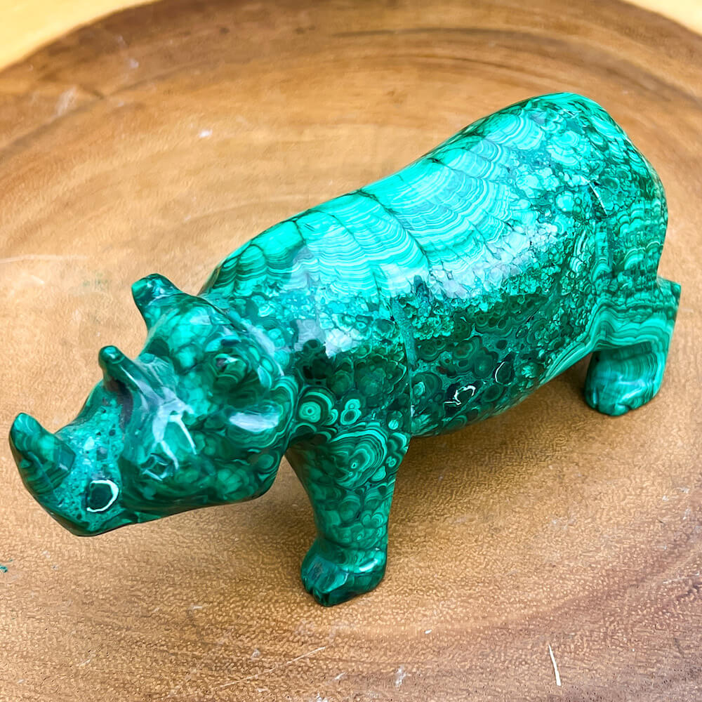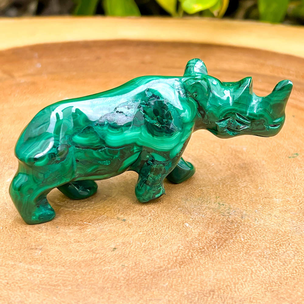 Talla de rinoceronte única en el Congo. Malaquita natural, una piedra semipreciosa genuina de la República Democrática del Congo. Recibirás la pieza exacta de malaquita que se muestra. La malaquita es una piedra tan genial. Es un mineral de hidróxido de carbonato de cobre que forma los patrones y diseños más espléndidos, formándose a menudo en masas botrioidales. Cuando mire a Malachite, recuerde que nunca es uniforme en sus patrones. Tendrá líneas finas, líneas gruesas, círculos, remolinos y esos patrones se forman en tonos de menta claro a los tonos más oscuros de verde cazador. Es una piedra tan impresionante para mirar, espectacular en todos sus patrones retorcidos y retorcidos. - La malaquita genuina nunca se alineará en una formación similar y no tendrá negro. Tenga cuidado con algunas piezas falsas de malaquita que flotan por ahí.