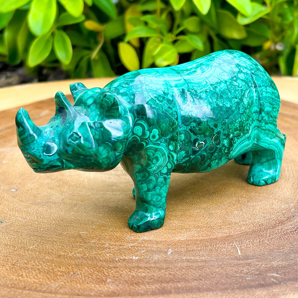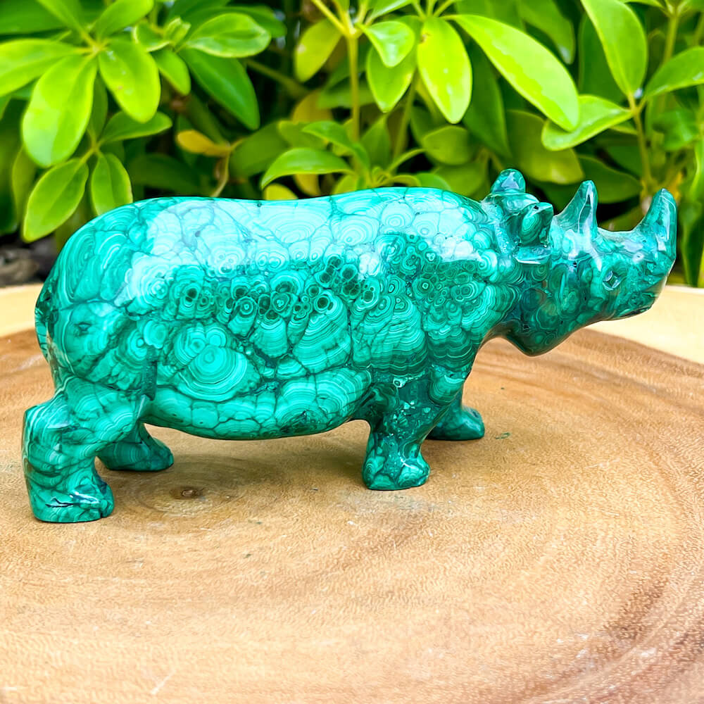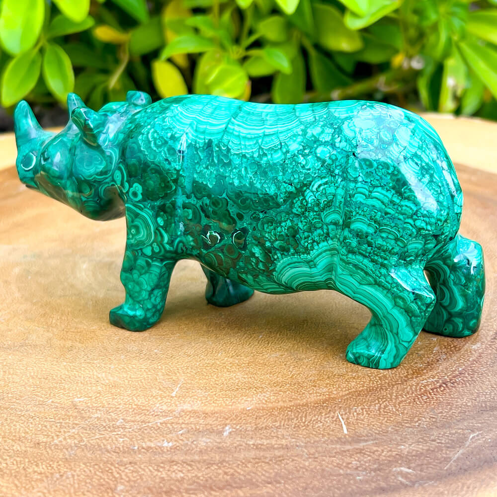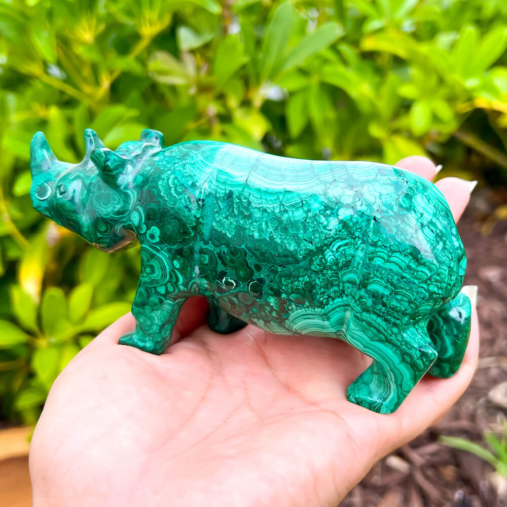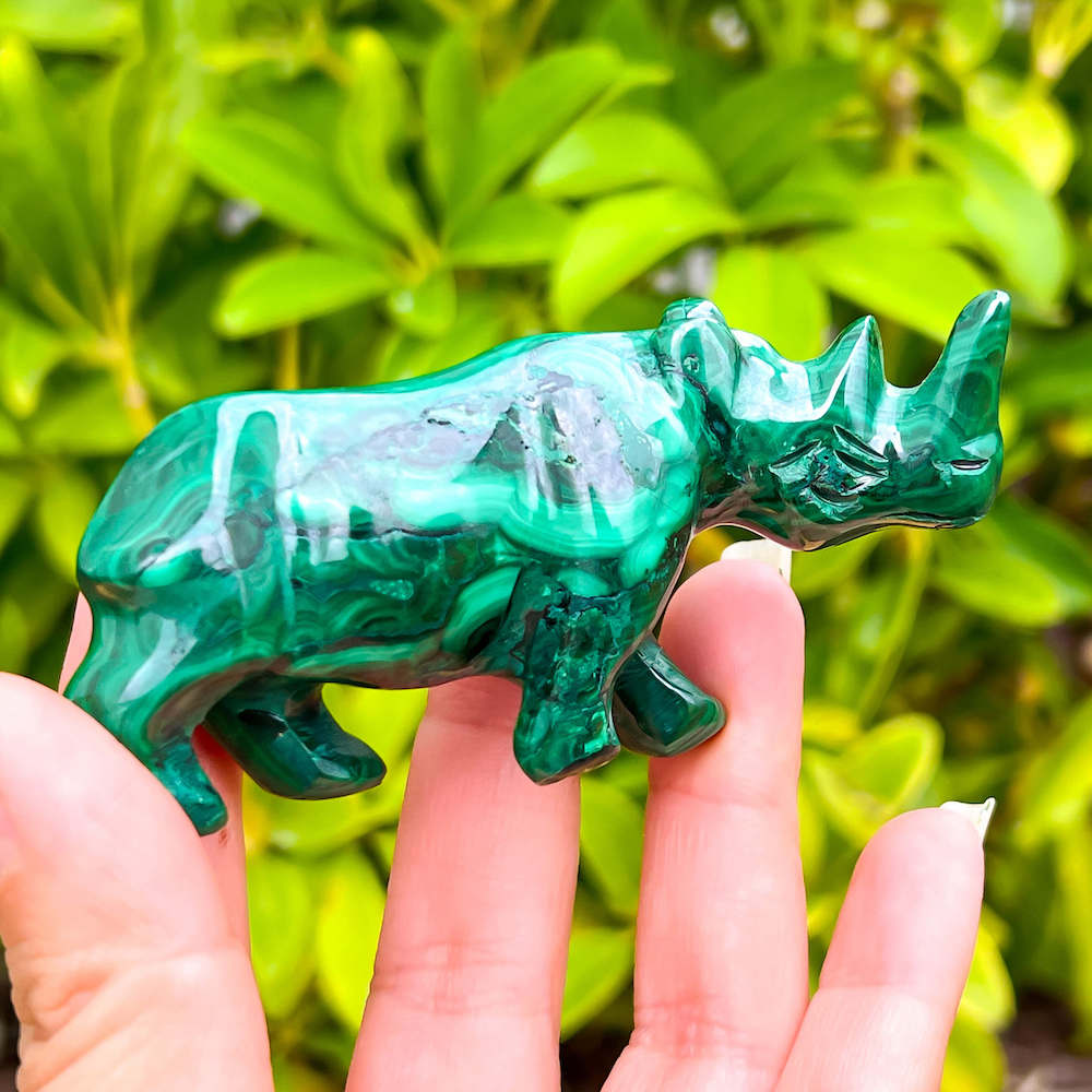 Talla de rinoceronte única en el Congo. Malaquita natural, una piedra semipreciosa genuina de la República Democrática del Congo. Recibirás la pieza exacta de malaquita que se muestra. La malaquita es una piedra tan genial. Es un mineral de hidróxido de carbonato de cobre que forma los patrones y diseños más espléndidos, formándose a menudo en masas botrioidales. Cuando mire a Malachite, recuerde que nunca es uniforme en sus patrones. Tendrá líneas finas, líneas gruesas, círculos, remolinos y esos patrones se forman en tonos de menta claro a los tonos más oscuros de verde cazador. Es una piedra tan impresionante para mirar, espectacular en todos sus patrones retorcidos y retorcidos. - La malaquita genuina nunca se alineará en una formación similar y no tendrá negro. Tenga cuidado con algunas piezas falsas de malaquita que flotan por ahí.