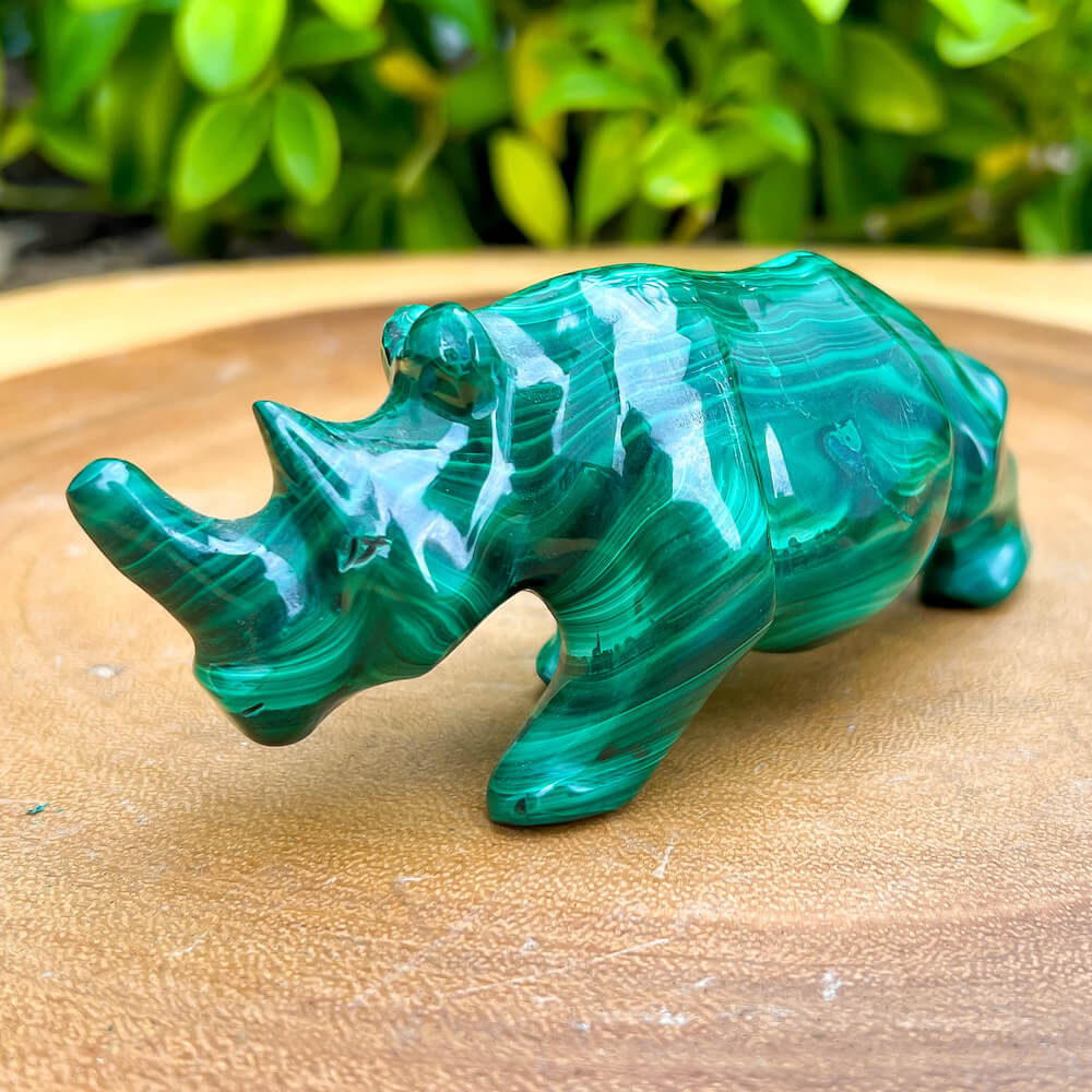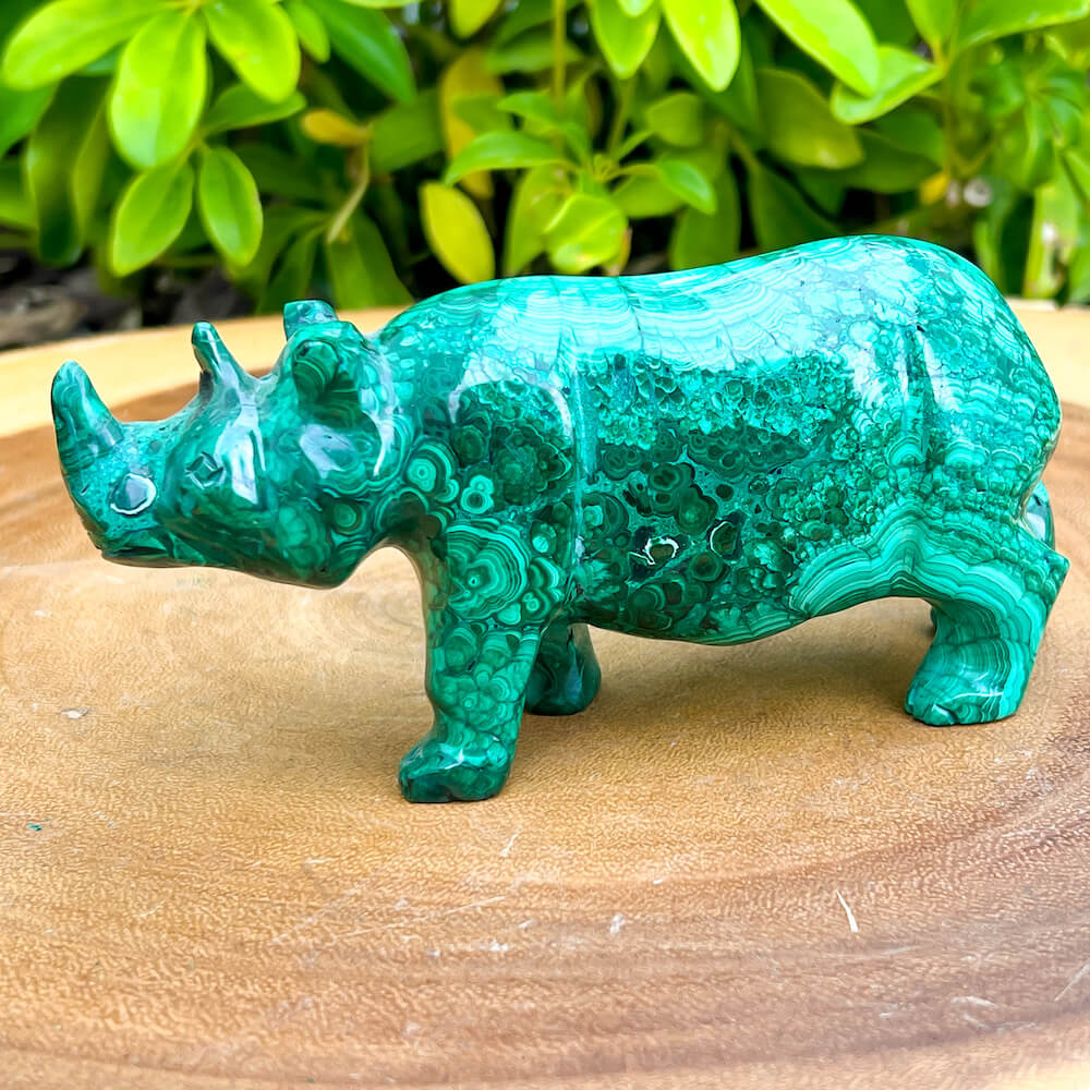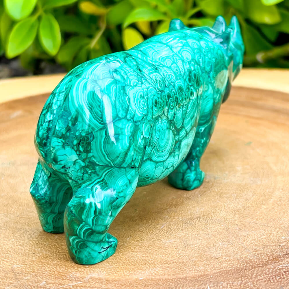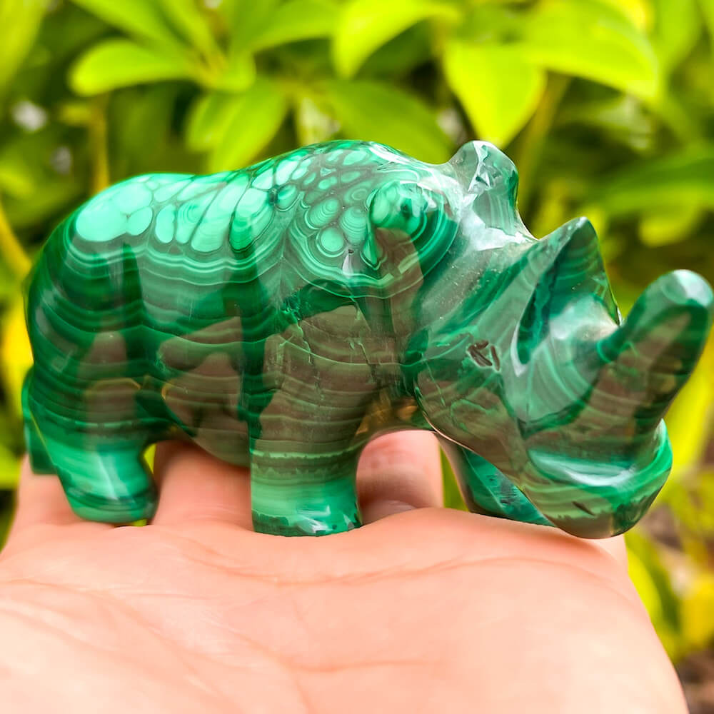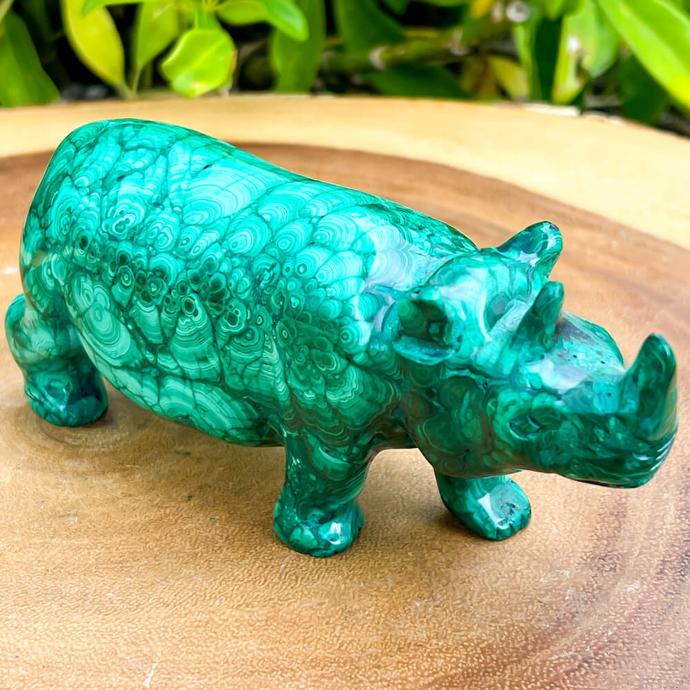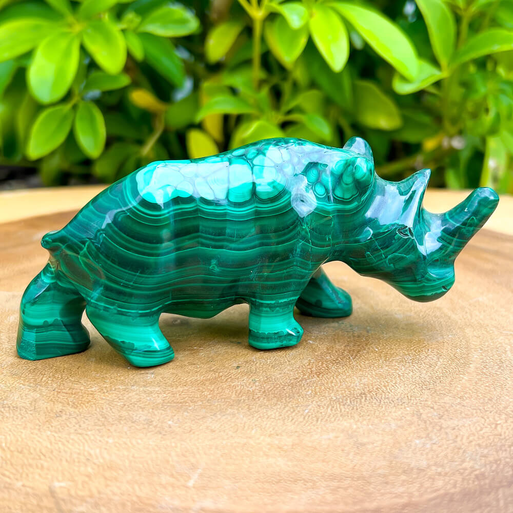 Talla de rinoceronte única en el Congo. Malaquita natural, una piedra semipreciosa genuina de la República Democrática del Congo. Recibirás la pieza exacta de malaquita que se muestra. La malaquita es una piedra tan genial. Es un mineral de hidróxido de carbonato de cobre que forma los patrones y diseños más espléndidos, formándose a menudo en masas botrioidales. Cuando mire a Malachite, recuerde que nunca es uniforme en sus patrones. Tendrá líneas finas, líneas gruesas, círculos, remolinos y esos patrones se forman en tonos de menta claro a los tonos más oscuros de verde cazador. Es una piedra tan impresionante para mirar, espectacular en todos sus patrones retorcidos y retorcidos. - La malaquita genuina nunca se alineará en una formación similar y no tendrá negro. Tenga cuidado con algunas piezas falsas de malaquita que flotan por ahí.