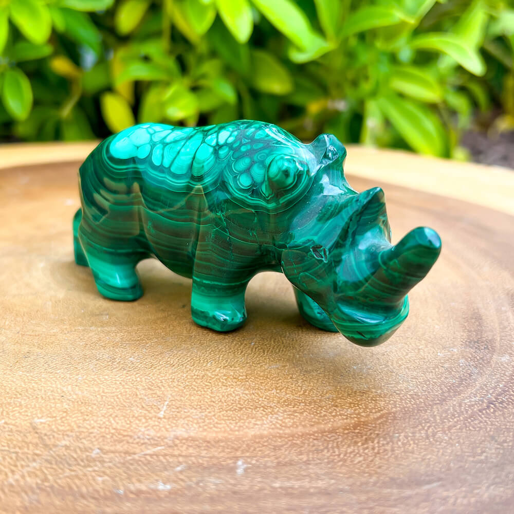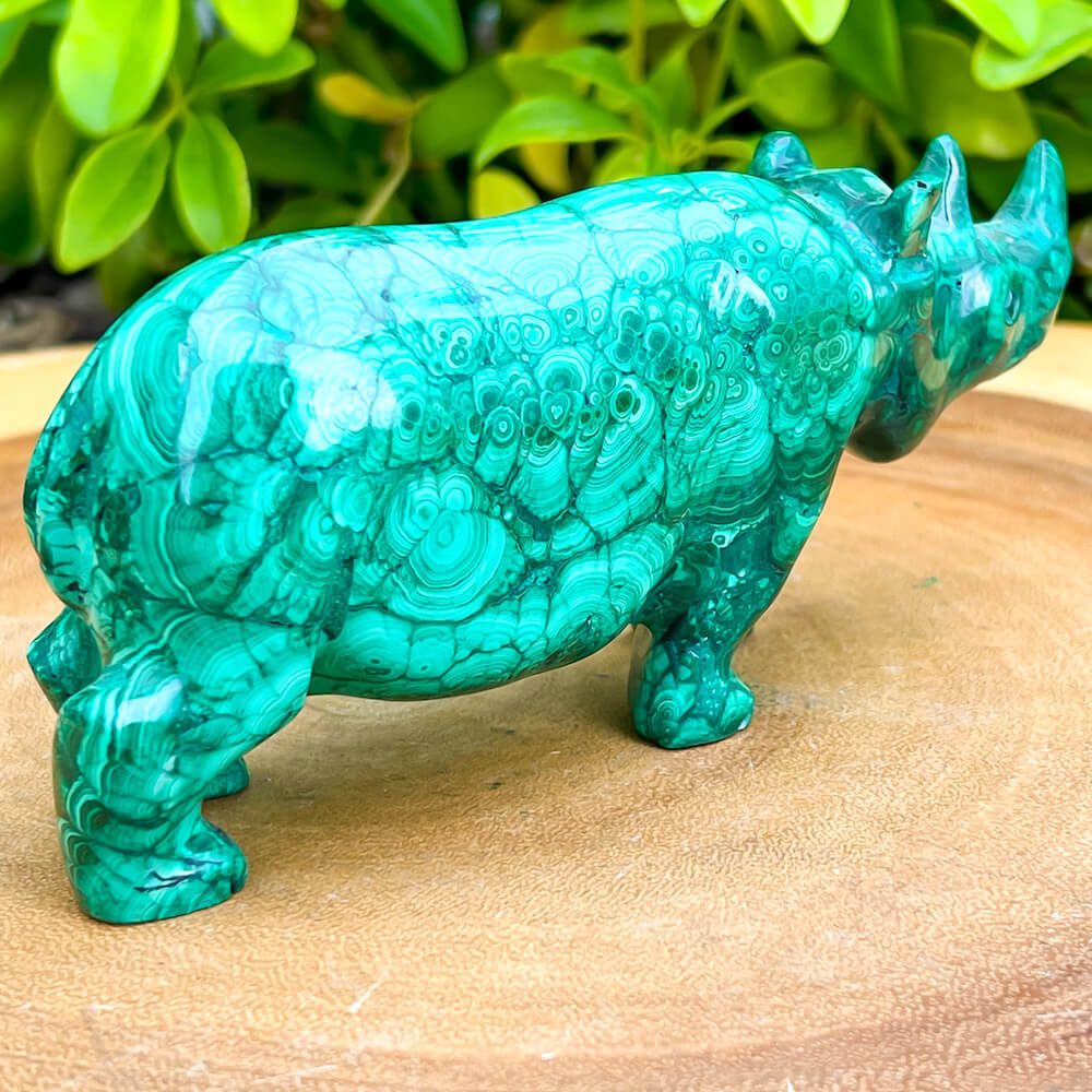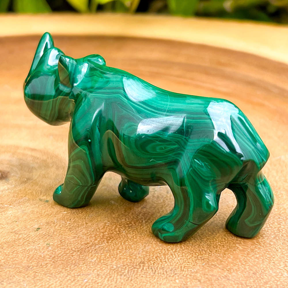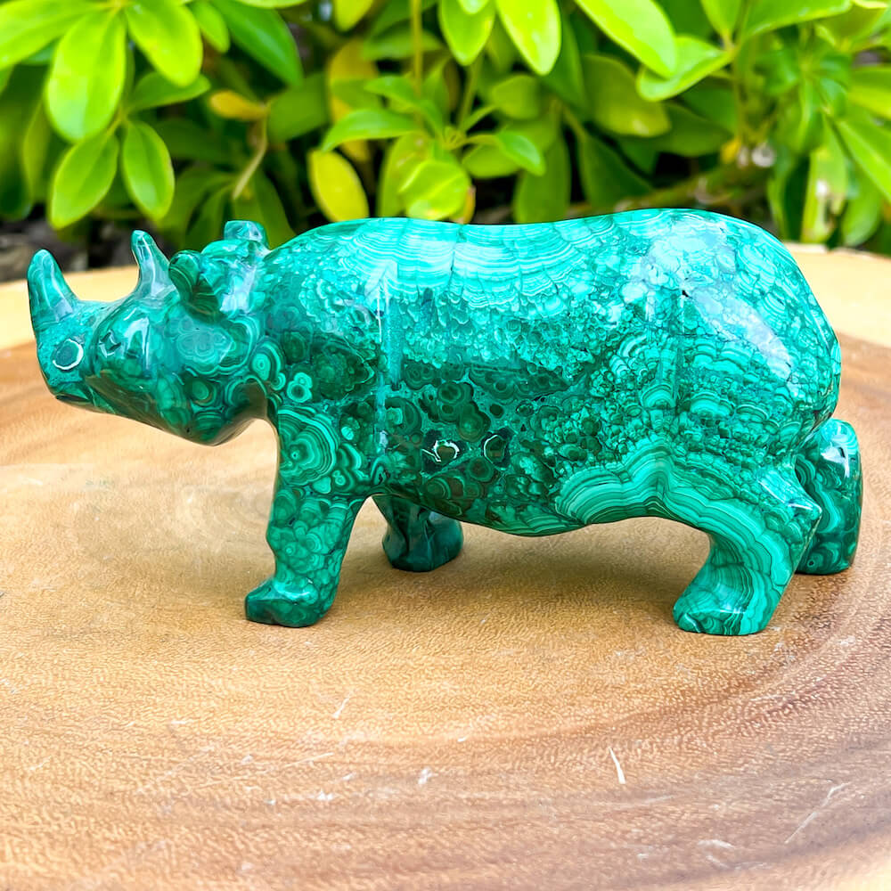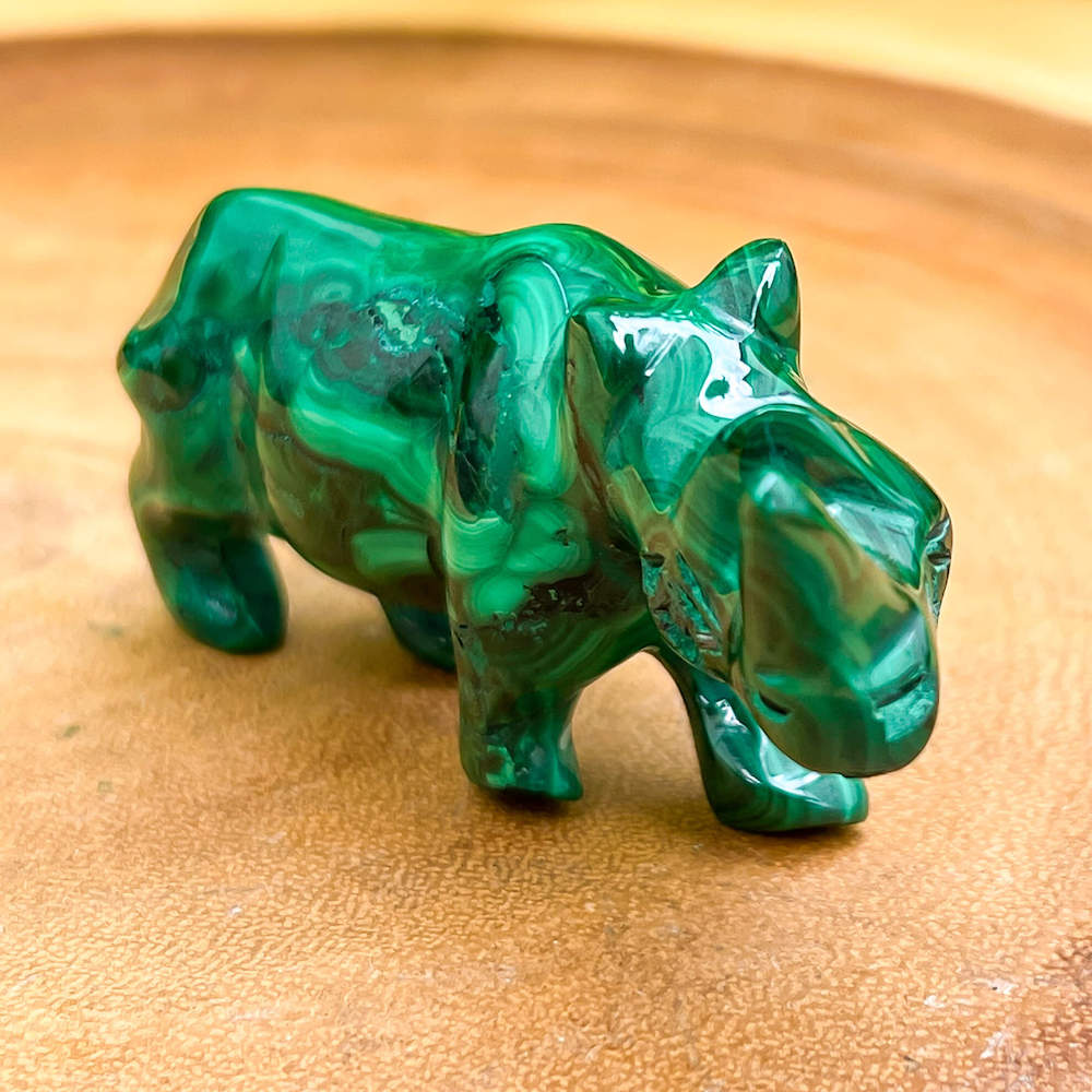 Talla de rinoceronte única en el Congo. Malaquita natural, una piedra semipreciosa genuina de la República Democrática del Congo. Recibirás la pieza exacta de malaquita que se muestra. La malaquita es una piedra tan genial. Es un mineral de hidróxido de carbonato de cobre que forma los patrones y diseños más espléndidos, formándose a menudo en masas botrioidales. Cuando mire a Malachite, recuerde que nunca es uniforme en sus patrones. Tendrá líneas finas, líneas gruesas, círculos, remolinos y esos patrones se forman en tonos de menta claro a los tonos más oscuros de verde cazador. Es una piedra tan impresionante para mirar, espectacular en todos sus patrones retorcidos y retorcidos. - La malaquita genuina nunca se alineará en una formación similar y no tendrá negro. Tenga cuidado con algunas piezas falsas de malaquita que flotan por ahí.