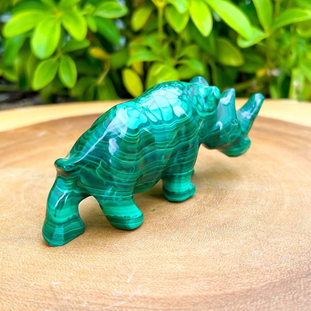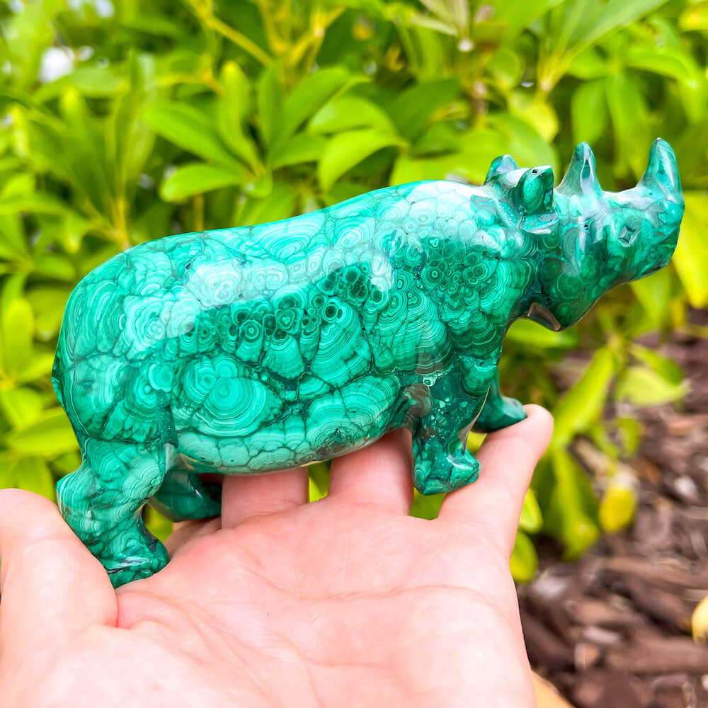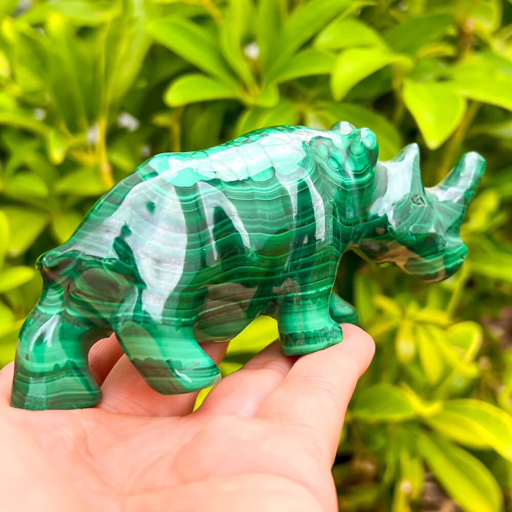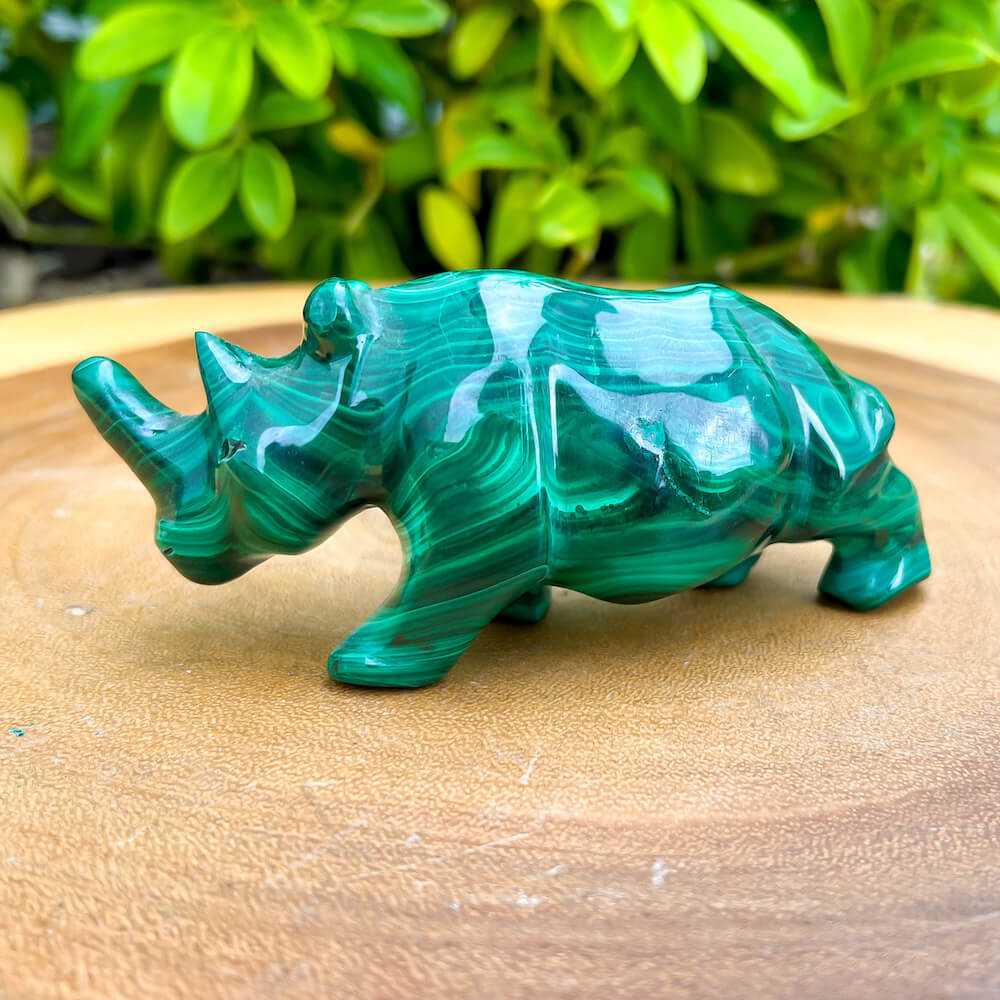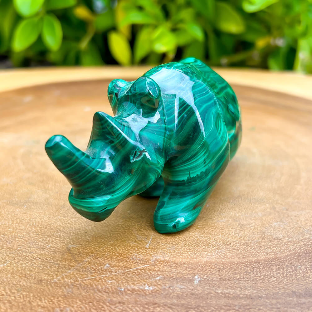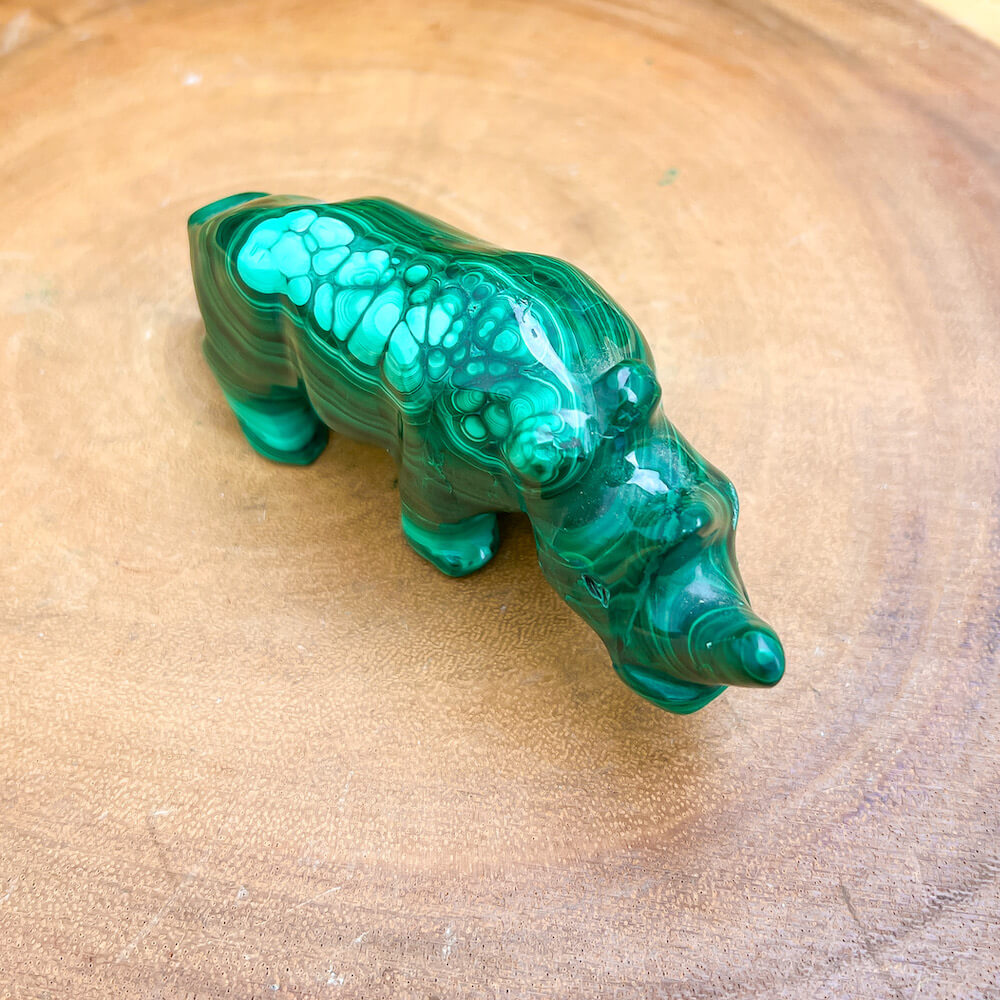 Talla de rinoceronte única en el Congo. Malaquita natural, una piedra semipreciosa genuina de la República Democrática del Congo. Recibirás la pieza exacta de malaquita que se muestra. La malaquita es una piedra tan genial. Es un mineral de hidróxido de carbonato de cobre que forma los patrones y diseños más espléndidos, formándose a menudo en masas botrioidales. Cuando mire a Malachite, recuerde que nunca es uniforme en sus patrones. Tendrá líneas finas, líneas gruesas, círculos, remolinos y esos patrones se forman en tonos de menta claro a los tonos más oscuros de verde cazador. Es una piedra tan impresionante para mirar, espectacular en todos sus patrones retorcidos y retorcidos. - La malaquita genuina nunca se alineará en una formación similar y no tendrá negro. Tenga cuidado con algunas piezas falsas de malaquita que flotan por ahí.