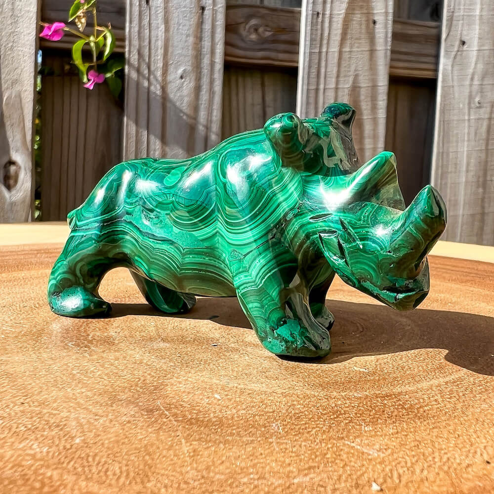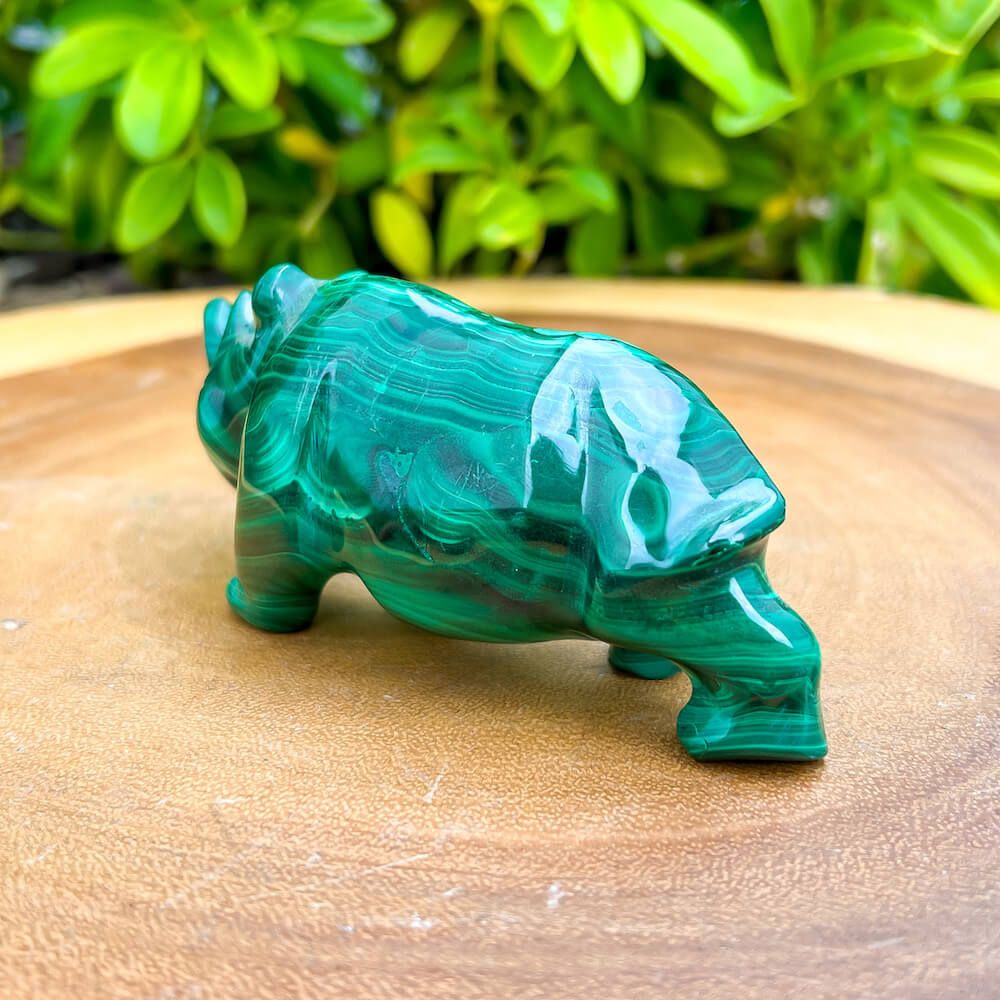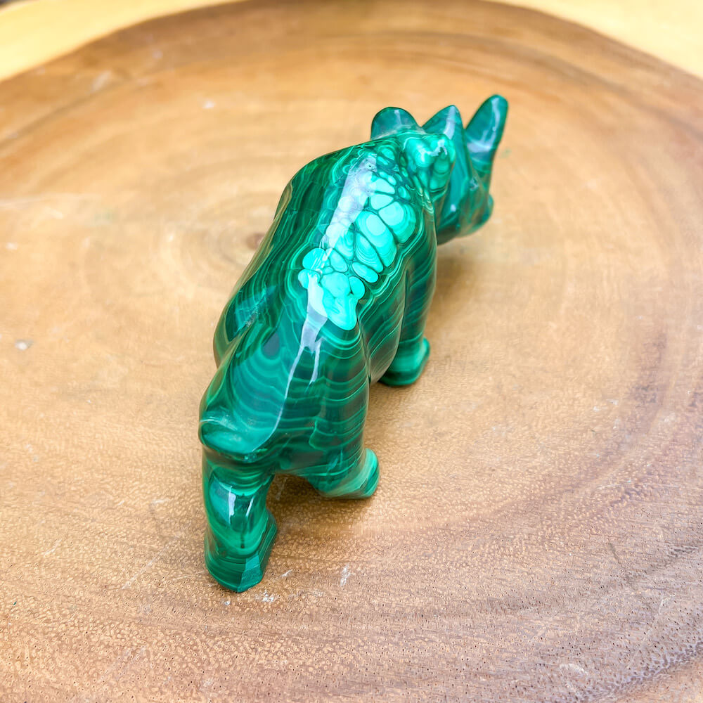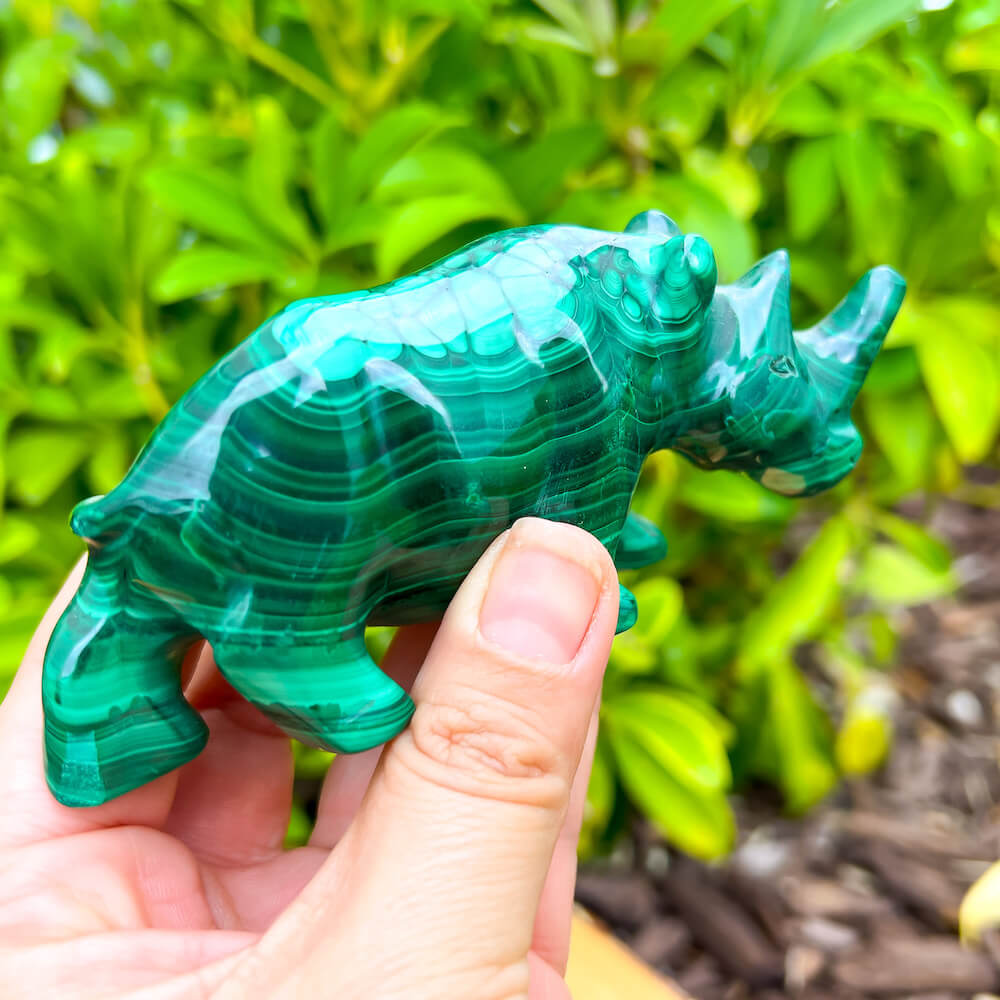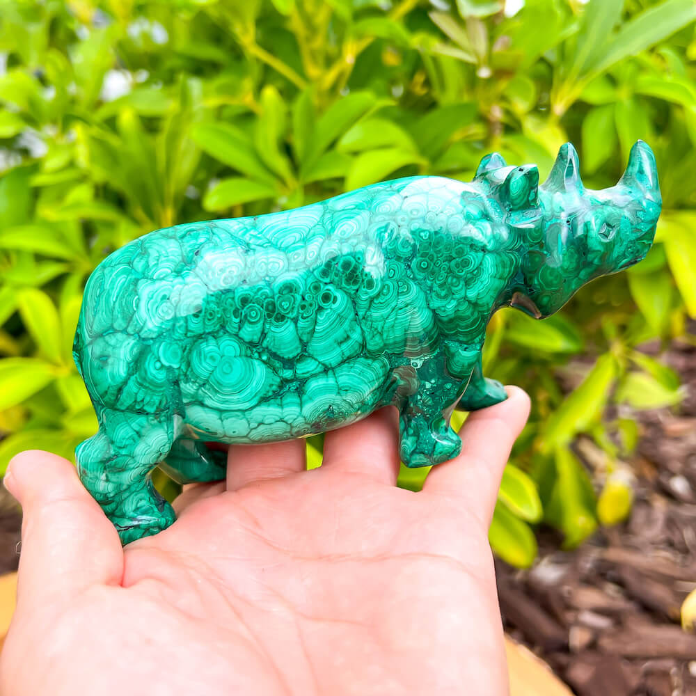 Talla de rinoceronte única en el Congo. Malaquita natural, una piedra semipreciosa genuina de la República Democrática del Congo. Recibirás la pieza exacta de malaquita que se muestra. La malaquita es una piedra tan genial. Es un mineral de hidróxido de carbonato de cobre que forma los patrones y diseños más espléndidos, formándose a menudo en masas botrioidales. Cuando mire a Malachite, recuerde que nunca es uniforme en sus patrones. Tendrá líneas finas, líneas gruesas, círculos, remolinos y esos patrones se forman en tonos de menta claro a los tonos más oscuros de verde cazador. Es una piedra tan impresionante para mirar, espectacular en todos sus patrones retorcidos y retorcidos. - La malaquita genuina nunca se alineará en una formación similar y no tendrá negro. Tenga cuidado con algunas piezas falsas de malaquita que flotan por ahí.