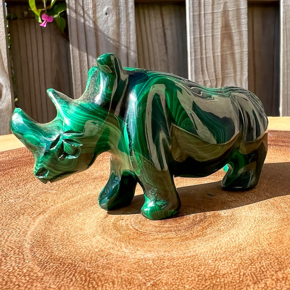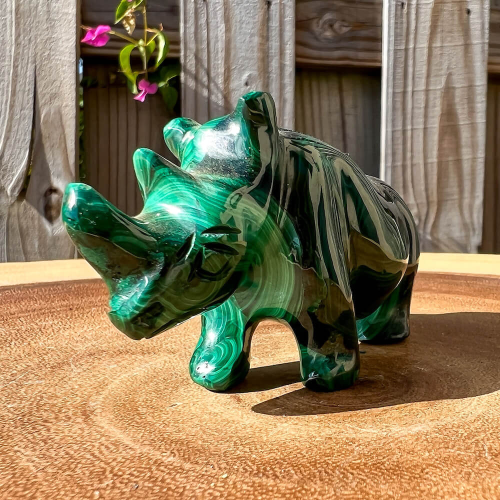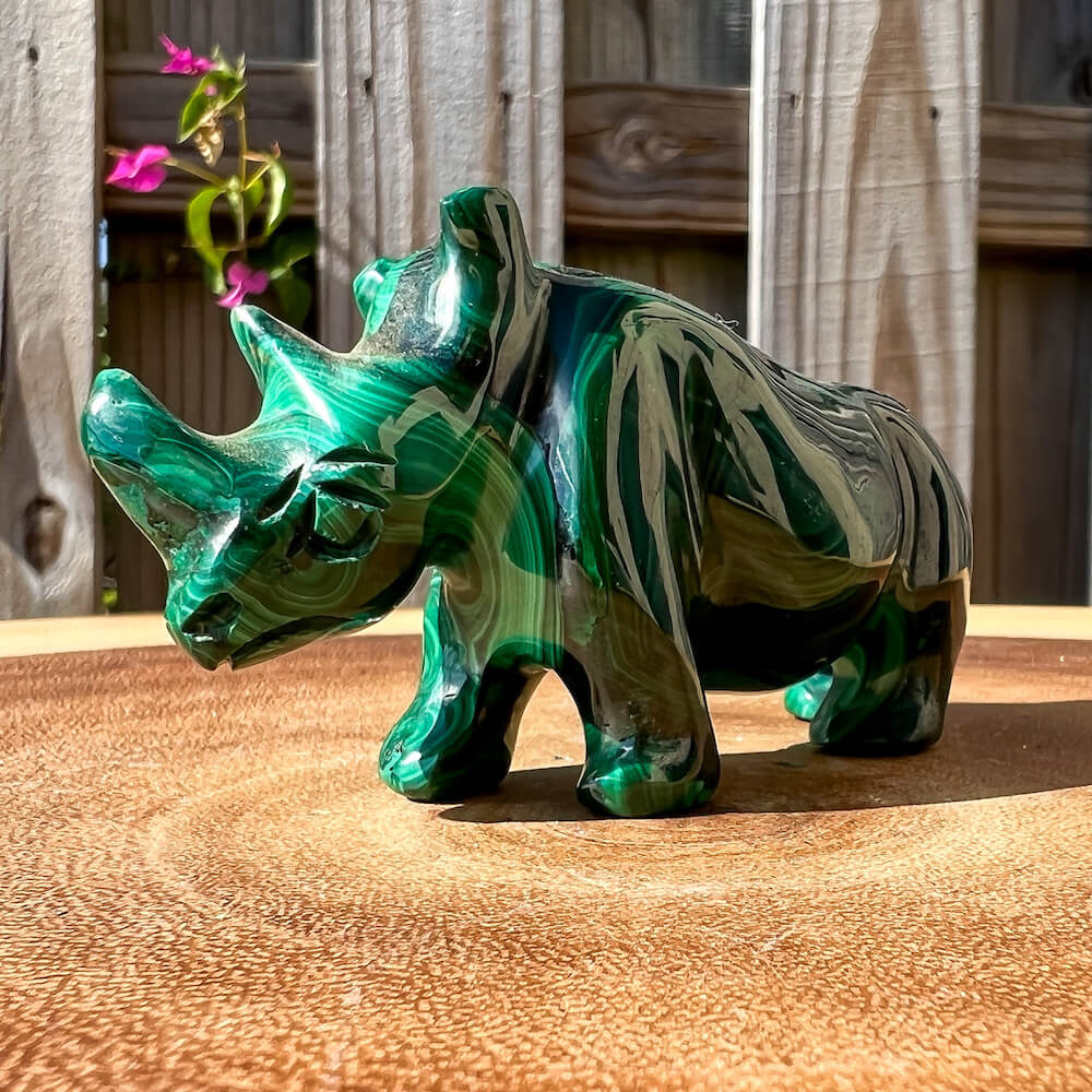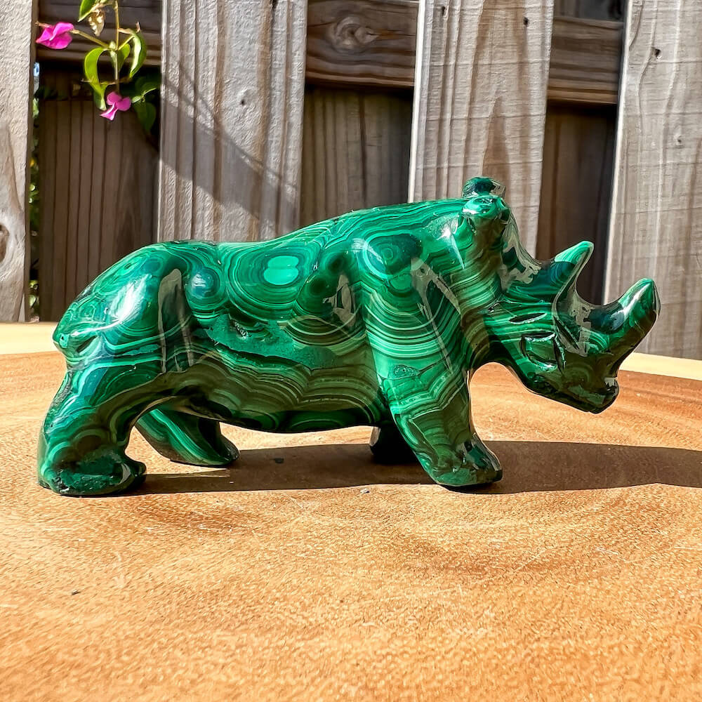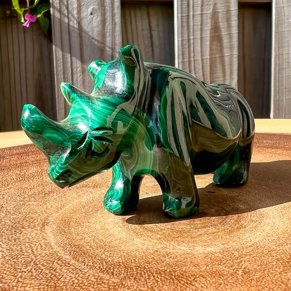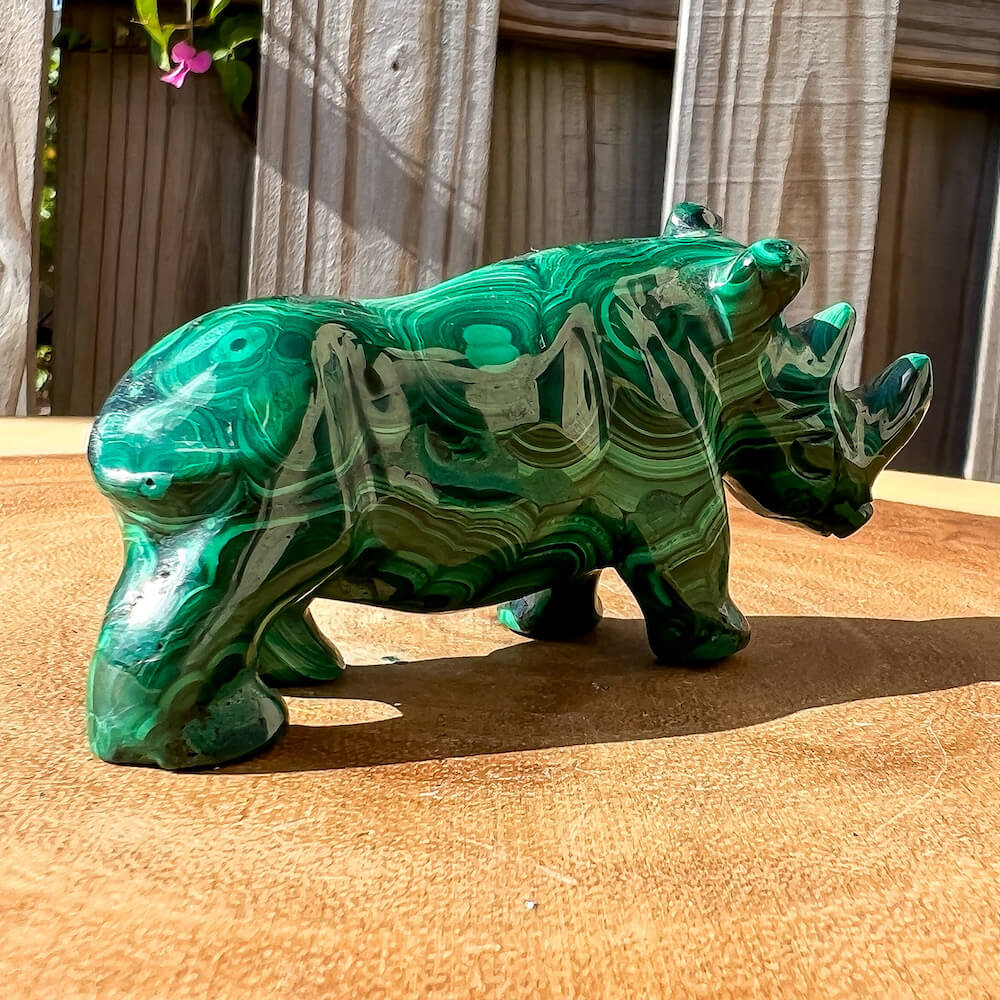 Talla de rinoceronte única en el Congo. Malaquita natural, una piedra semipreciosa genuina de la República Democrática del Congo. Recibirás la pieza exacta de malaquita que se muestra. La malaquita es una piedra tan genial. Es un mineral de hidróxido de carbonato de cobre que forma los patrones y diseños más espléndidos, formándose a menudo en masas botrioidales. Cuando mire a Malachite, recuerde que nunca es uniforme en sus patrones. Tendrá líneas finas, líneas gruesas, círculos, remolinos y esos patrones se forman en tonos de menta claro a los tonos más oscuros de verde cazador. Es una piedra tan impresionante para mirar, espectacular en todos sus patrones retorcidos y retorcidos. - La malaquita genuina nunca se alineará en una formación similar y no tendrá negro. Tenga cuidado con algunas piezas falsas de malaquita que flotan por ahí.