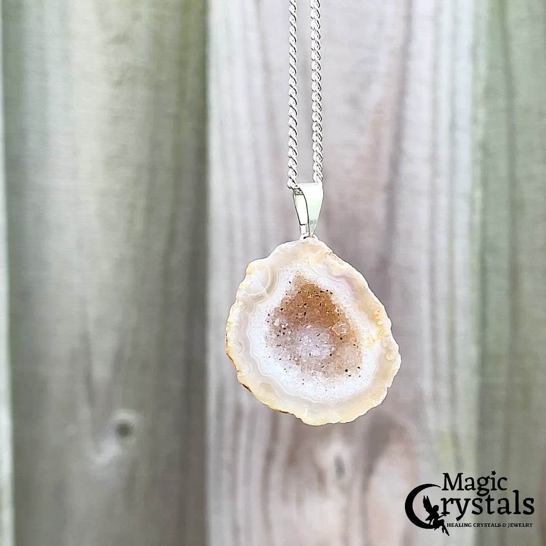 • Rebanada de geoda brasileña con druzy de cuarzo brillante