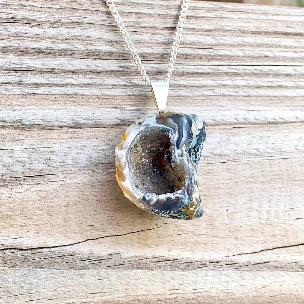 El ágata es una de las piedras curativas más antiguas que provienen de la familia del cuarzo. La variación de colores es lo que hace que este cristal sea tan hermoso. En la antigüedad, el ágata se usaba para dar fuerza a los guerreros en la batalla y ayudarlos a salir victoriosos. El ágata ahora se usa para aumentar la seguridad y la confianza en uno mismo, así como para la conexión a tierra y el equilibrio. También se dice que fomenta el amor, la buena fortuna y la abundancia.