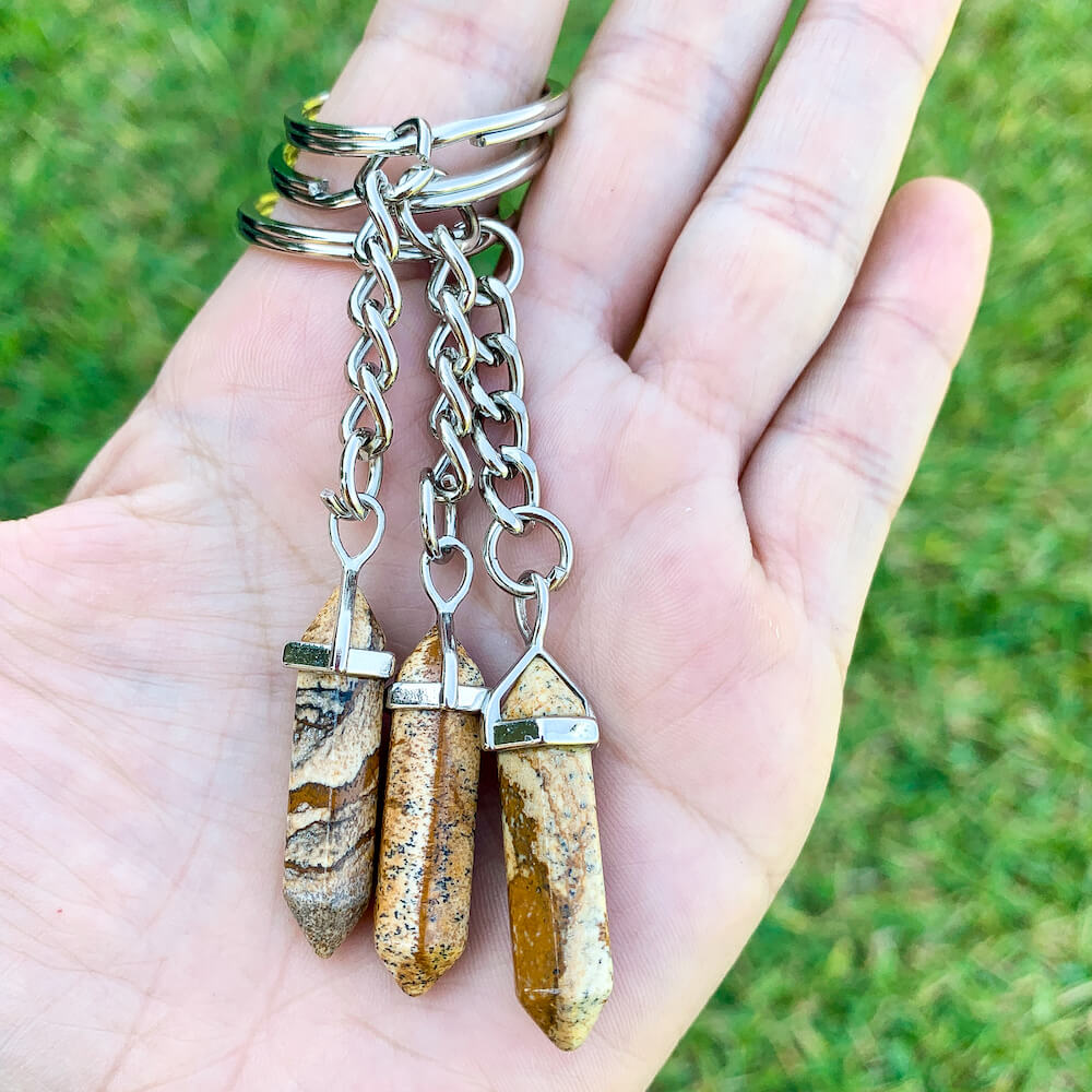 Tenga en cuenta que cada llavero es único en apariencia como cada uno de nosotros. Debido a que todas nuestras piedras preciosas se cortan de piedra 100 % natural, siempre hay una variación de color. Es posible que el llavero real que recibirá no sea exactamente igual al que se muestra en las imágenes de arriba, pero el color será similar. Solo almacenamos gemas de calidad.