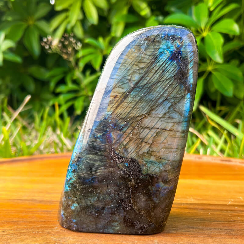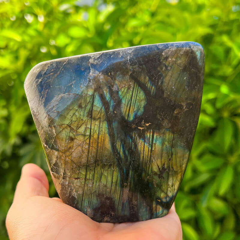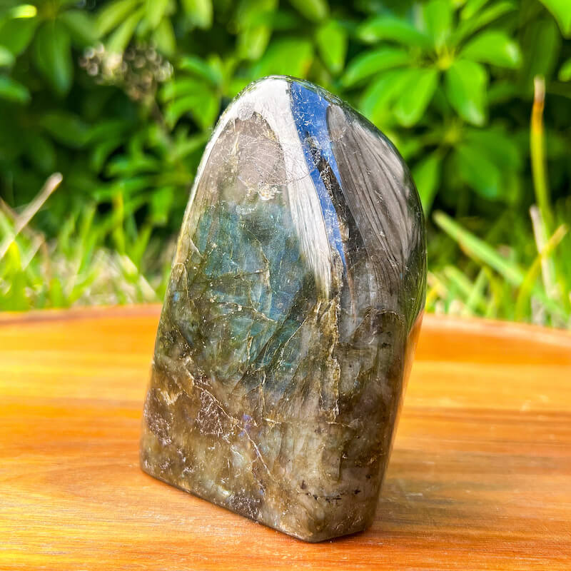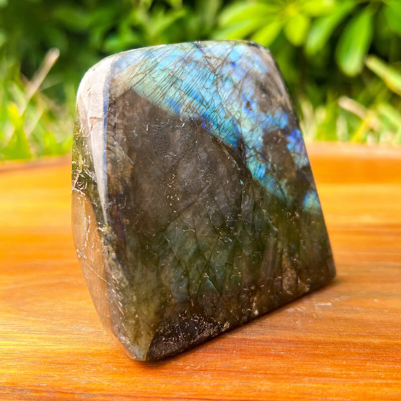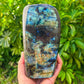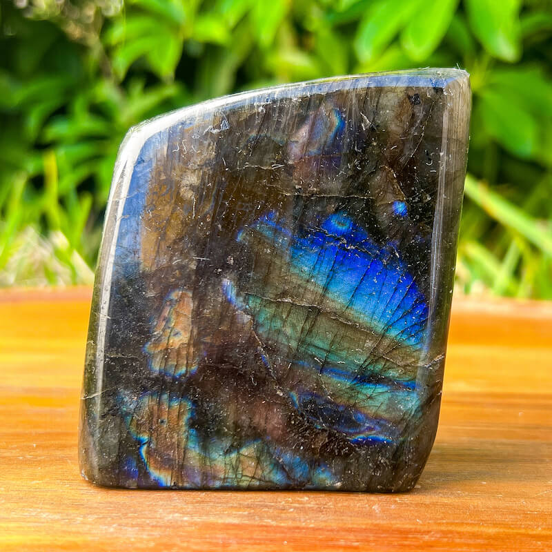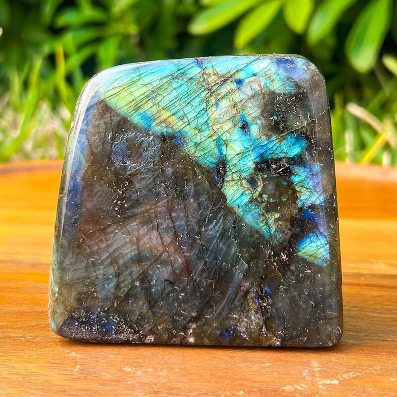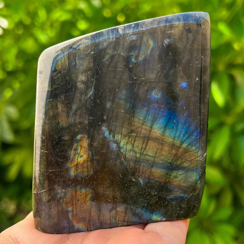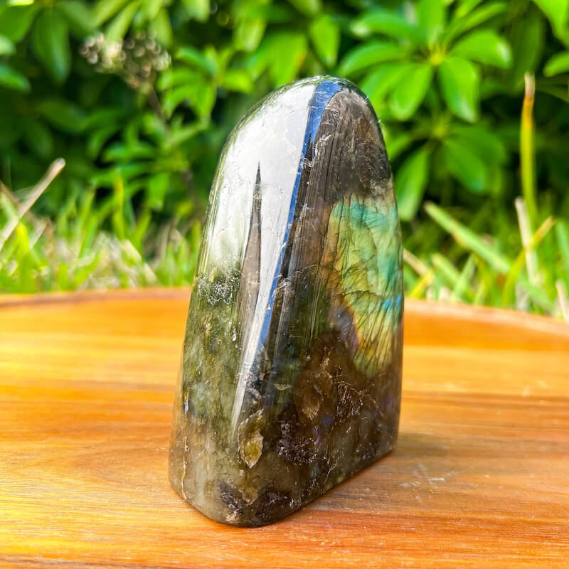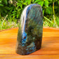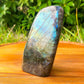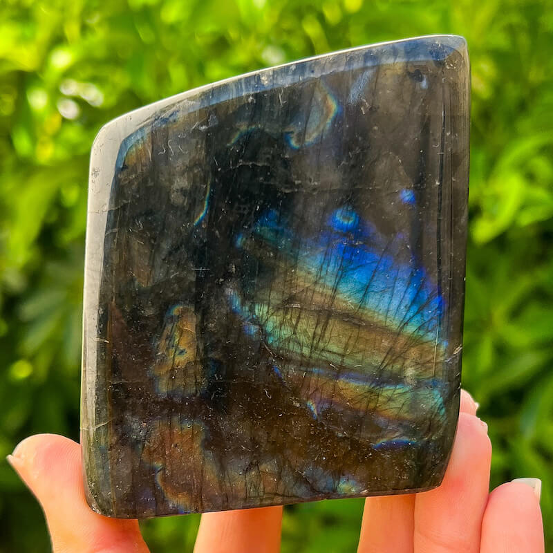 ¡Esta es una labradorita de destello alto absolutamente impresionante! Esta labradorita está pulida, tiene una forma libre y una labradorita de base cortada, lo que significa que se mantiene bien. ¡Los colores son preciosos y el flash es impresionante! ¡Esta pieza sería un gran regalo para alguien o una gran pieza para agregar a cualquier colección de cristales! Una piedra de transformación, la labradorita es una compañera útil a través del cambio, impartiendo fuerza y perseverancia. La labradorita se considera una piedra tremendamente espiritual, especialmente útil para las personas que tienden a trabajar demasiado. La labradorita es conocida por su vibración para iluminar el camino del destino espiritual.