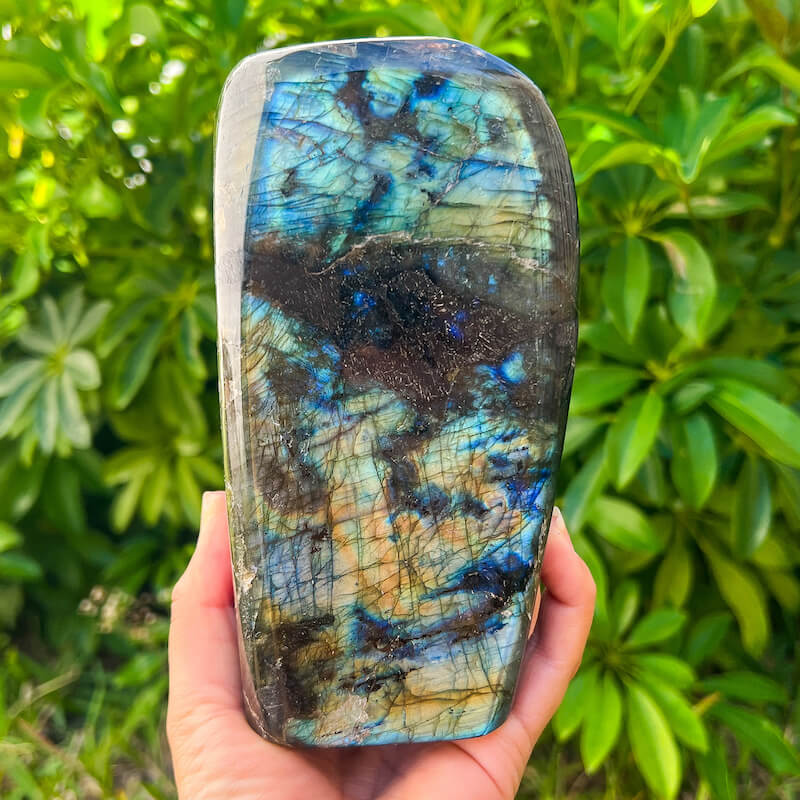 También se dice que la labradorita es excelente para la magia elemental y para conectarse con los espíritus de la naturaleza. Se dice que ayuda a leer entre líneas para comprender lo que otros quieren decir tanto a nivel consciente como inconsciente. A nivel físico, la tradición de la curación con cristales dice que la labradorita es buena para renovar y mantener la vitalidad y la juventud, así como para el mantenimiento y la curación del cerebro. Tenga en cuenta que los significados de los cristales curativos son apoyos espirituales para la curación y no son recetas ni información médica. La labradorita se asocia generalmente con los chakras del tercer ojo y de la garganta.