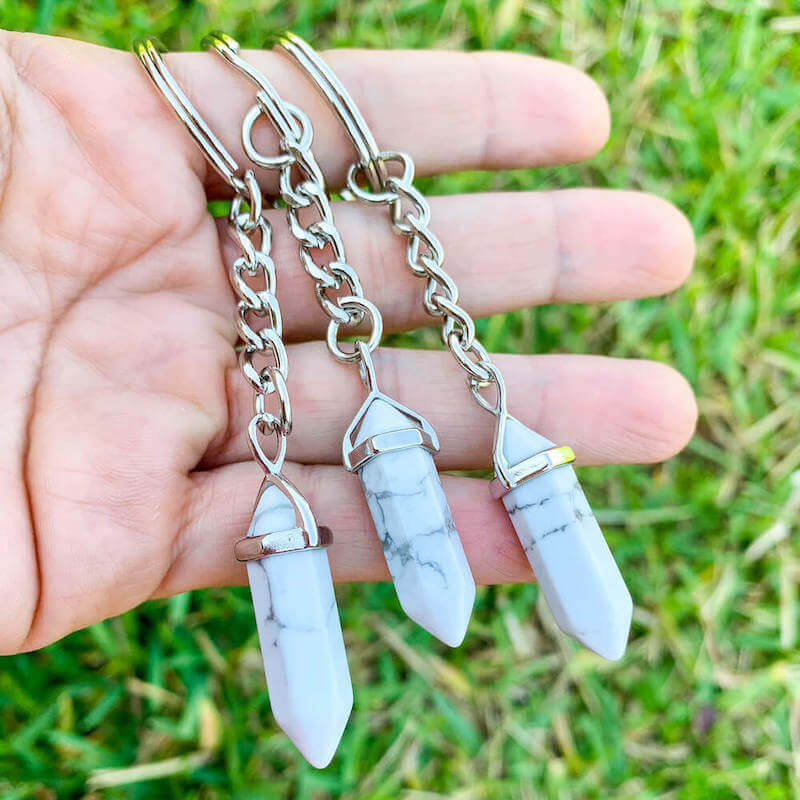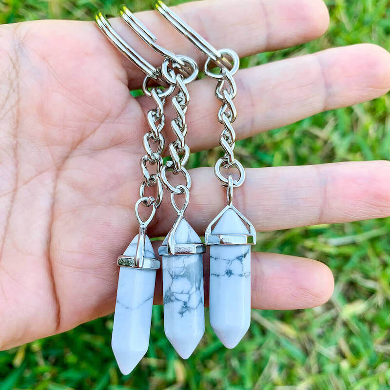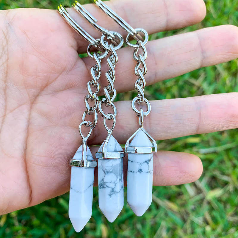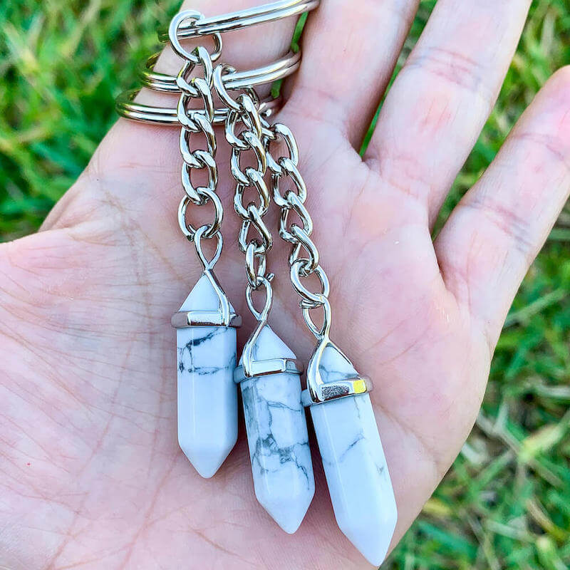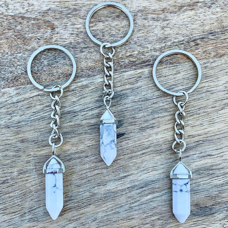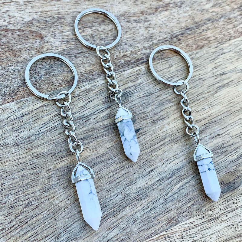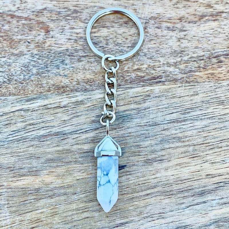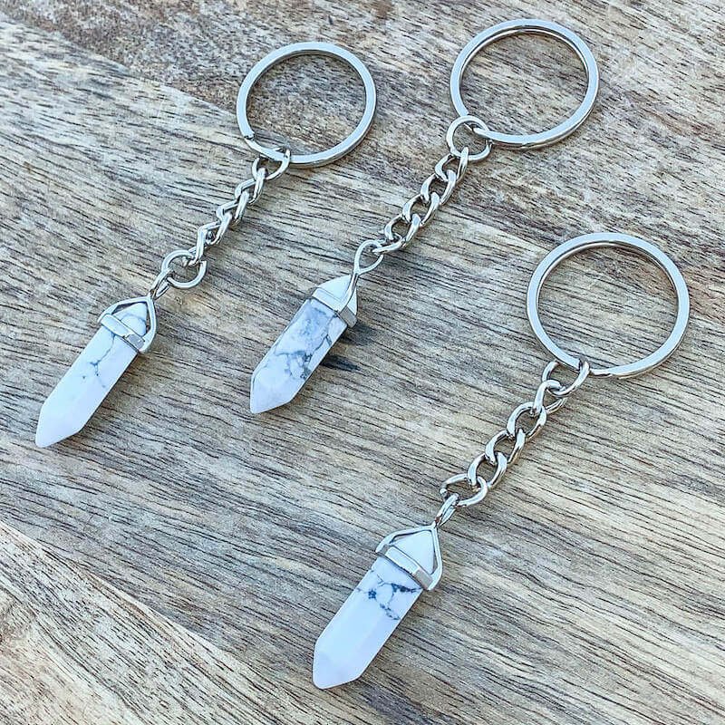 Pon tus llaves en tu Llavero de howlita blanca y conéctate con la piedra cuando necesites un momento de sabiduría.