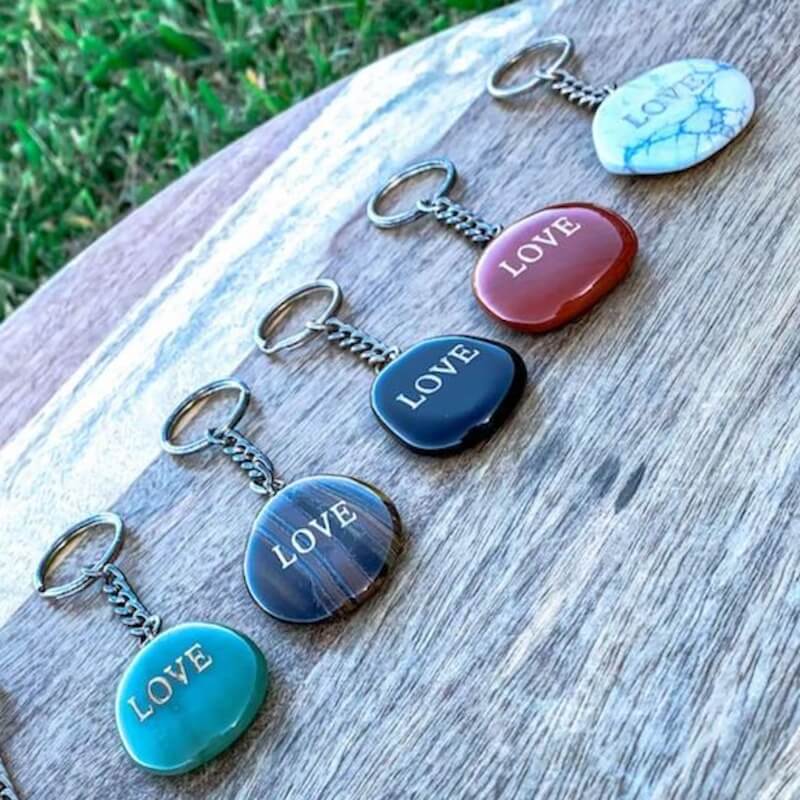 Tenga en cuenta que cada llavero es único en apariencia como cada uno de nosotros. Debido a que todas nuestras piedras preciosas se cortan de piedra 100 % natural, siempre hay una variación de color. Es posible que el llavero real que recibirá no sea exactamente igual al que se muestra en las imágenes de arriba, pero el color será similar. Solo almacenamos gemas de calidad.