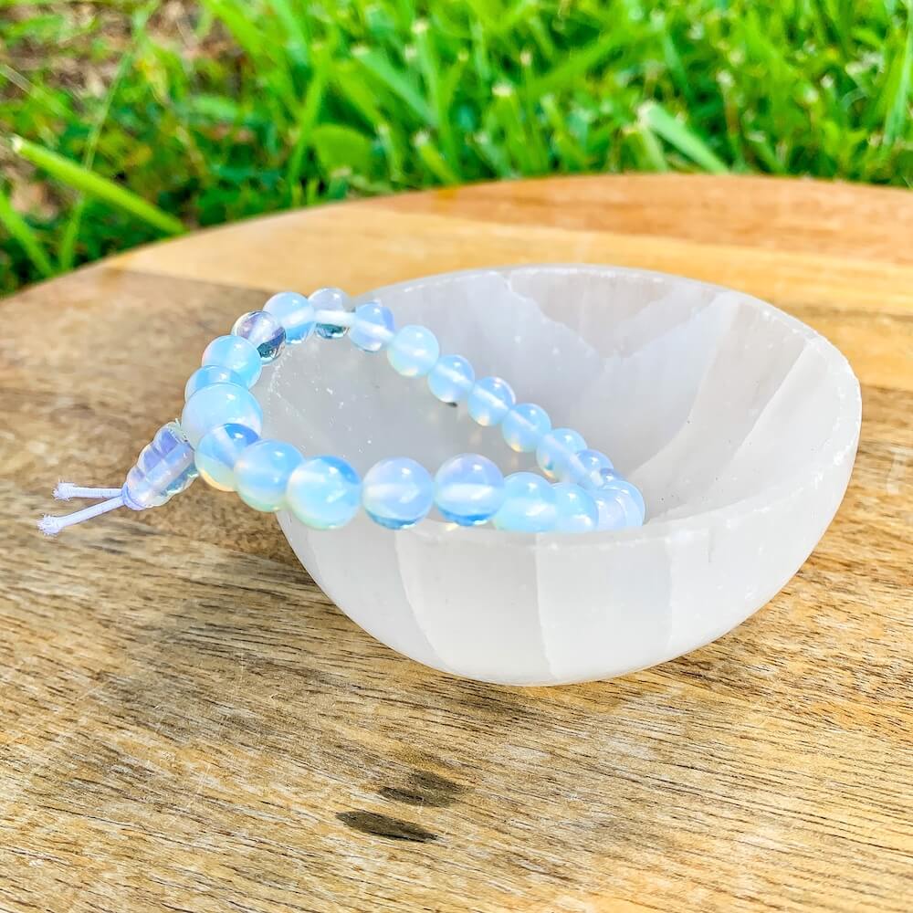 Opalite tiene una mayor proporción de agua que la mayoría de las piedras y se considera una piedra de agua. Esto puede ayudar a aliviar el esfuerzo de manejar el cambio en la vida. Al igual que el agua pasa por encima de las rocas y las raíces en su camino, la energía del ópalo puede ayudarlo a continuar en su camino a pesar de los obstáculos. Durante tiempos de transformación, esta es una energía invaluable para trabajar y mantener cerca de tu corazón.