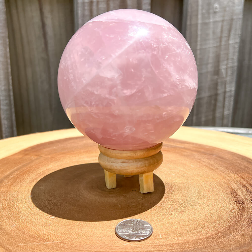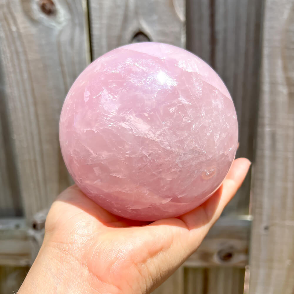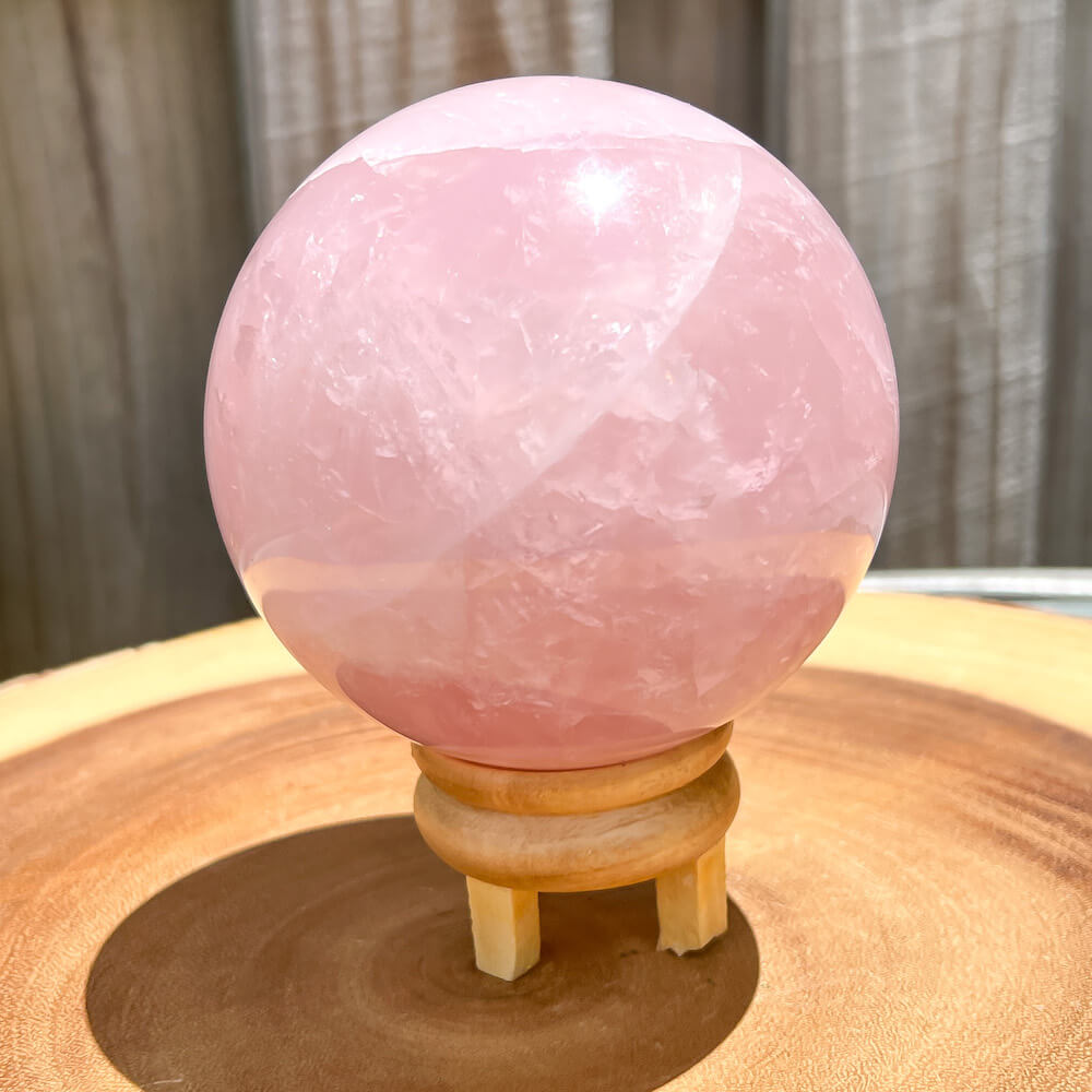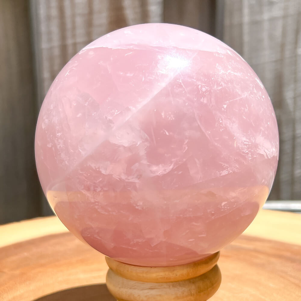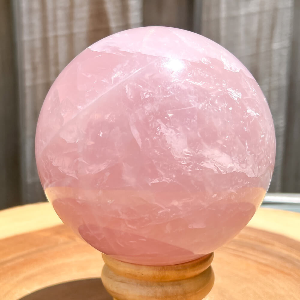 Esta hermosa esfera grande se puede exhibir en un altar, usarse en rituales o usarse para meditar para despertar o mejorar el Chakra del corazón. Tu esfera de Cuarzo Rosa llegará energéticamente limpia y cargada. ¡Esfera de cuarzo rosa de gran calidad de Brasil! ¡Seleccionado a mano para garantizar la belleza!