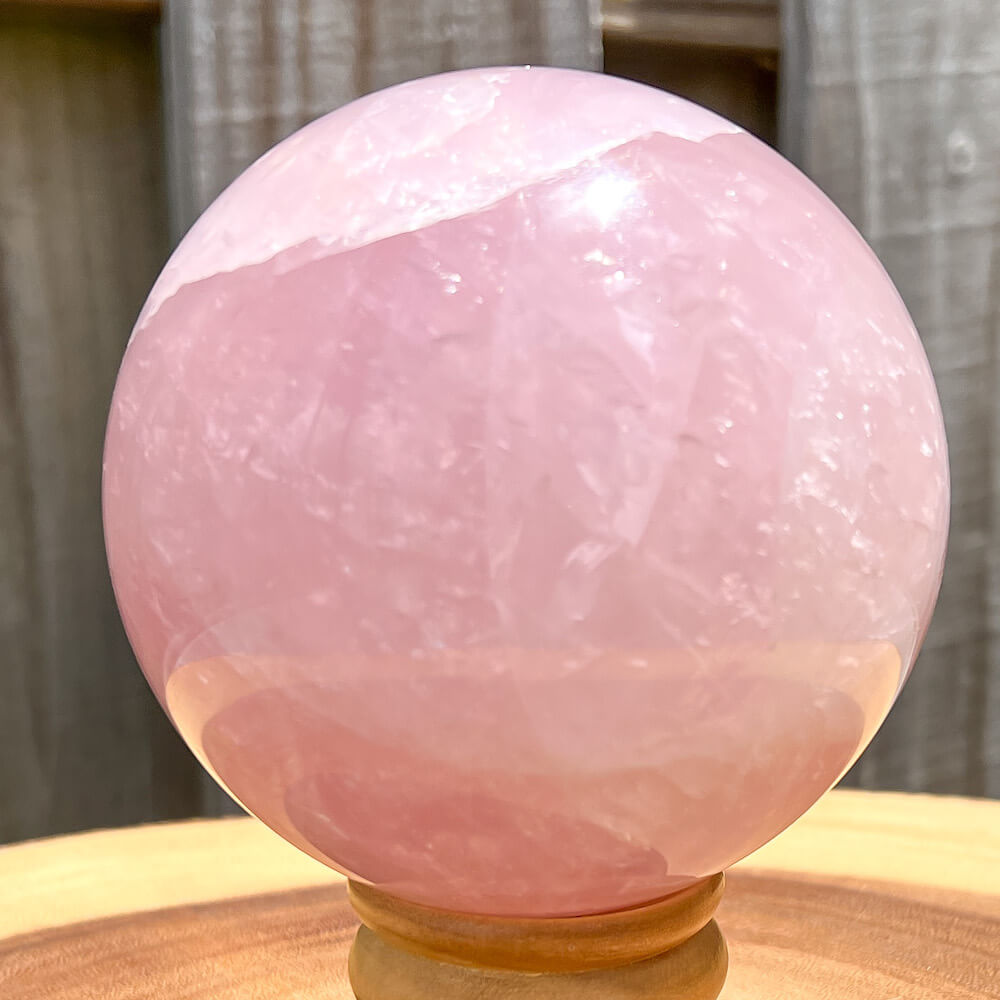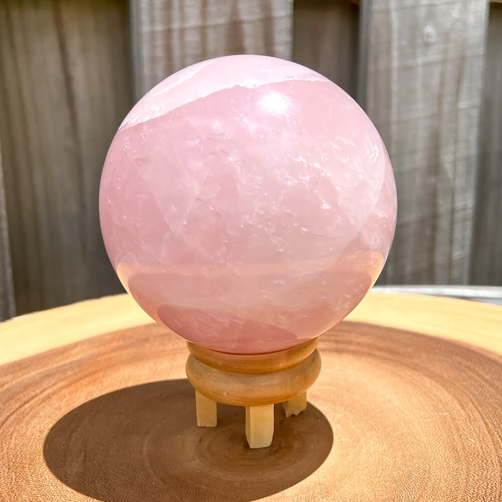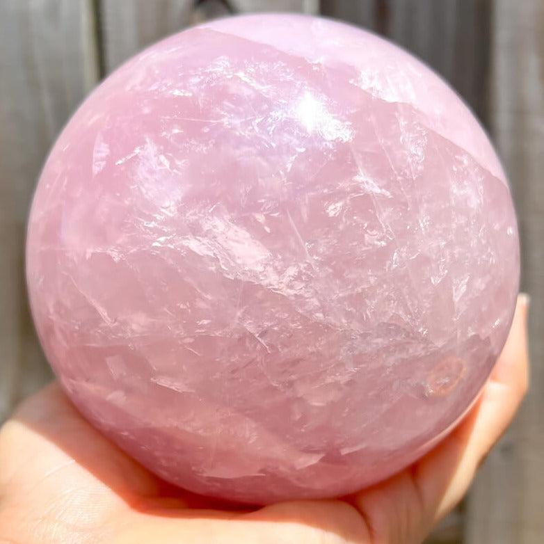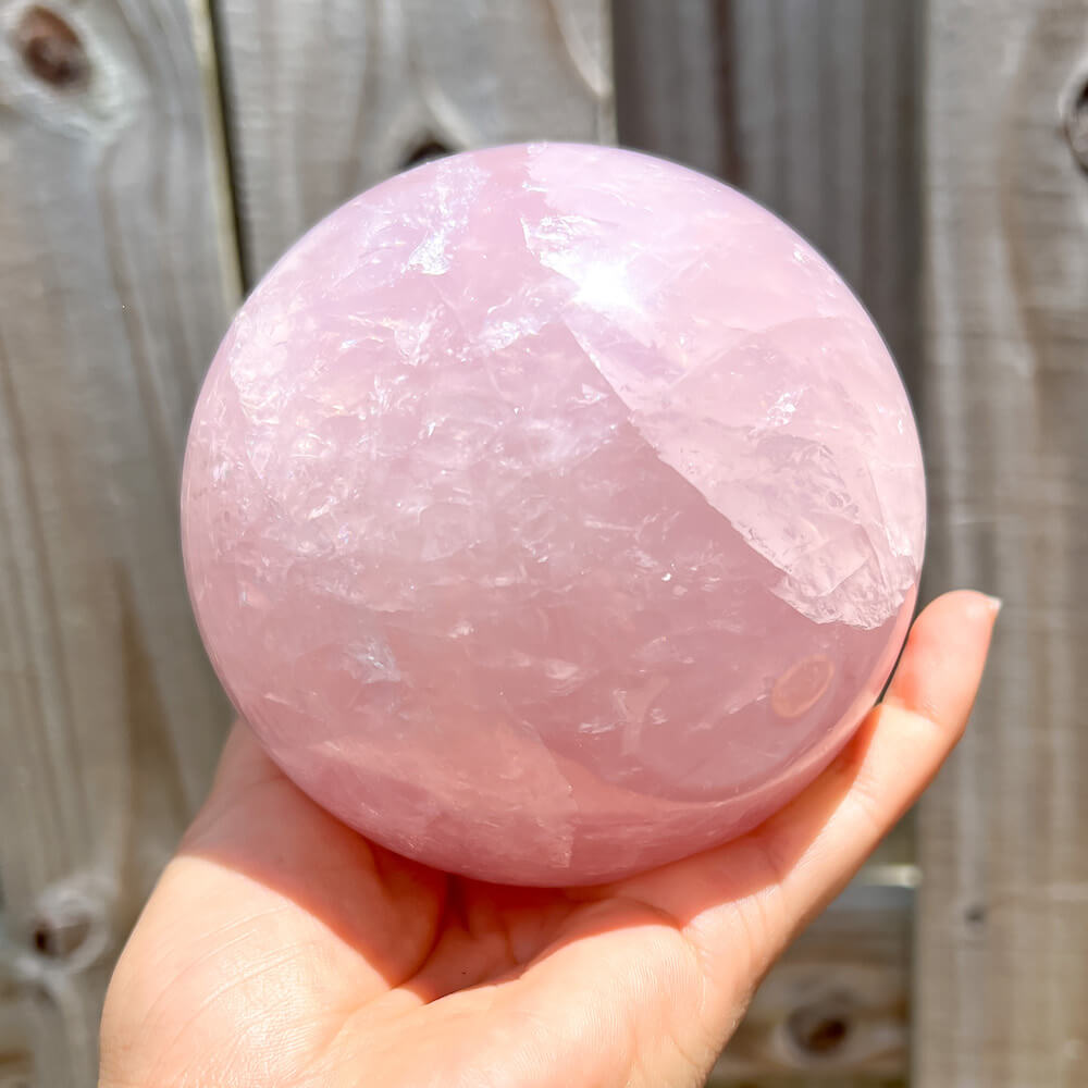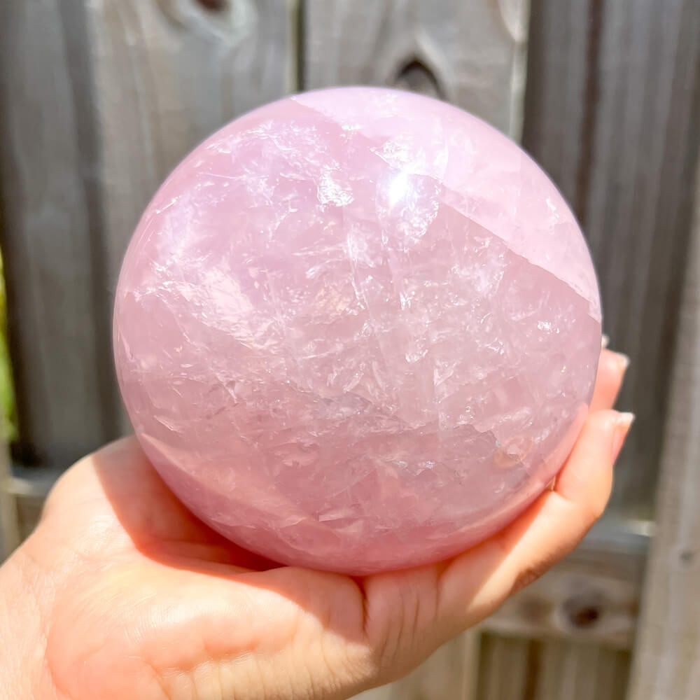 Esta hermosa esfera grande se puede exhibir en un altar, usarse en rituales o usarse para meditar para despertar o mejorar el Chakra del corazón. Tu esfera de Cuarzo Rosa llegará energéticamente limpia y cargada. ¡Esfera de cuarzo rosa de gran calidad de Brasil! ¡Seleccionado a mano para garantizar la belleza!