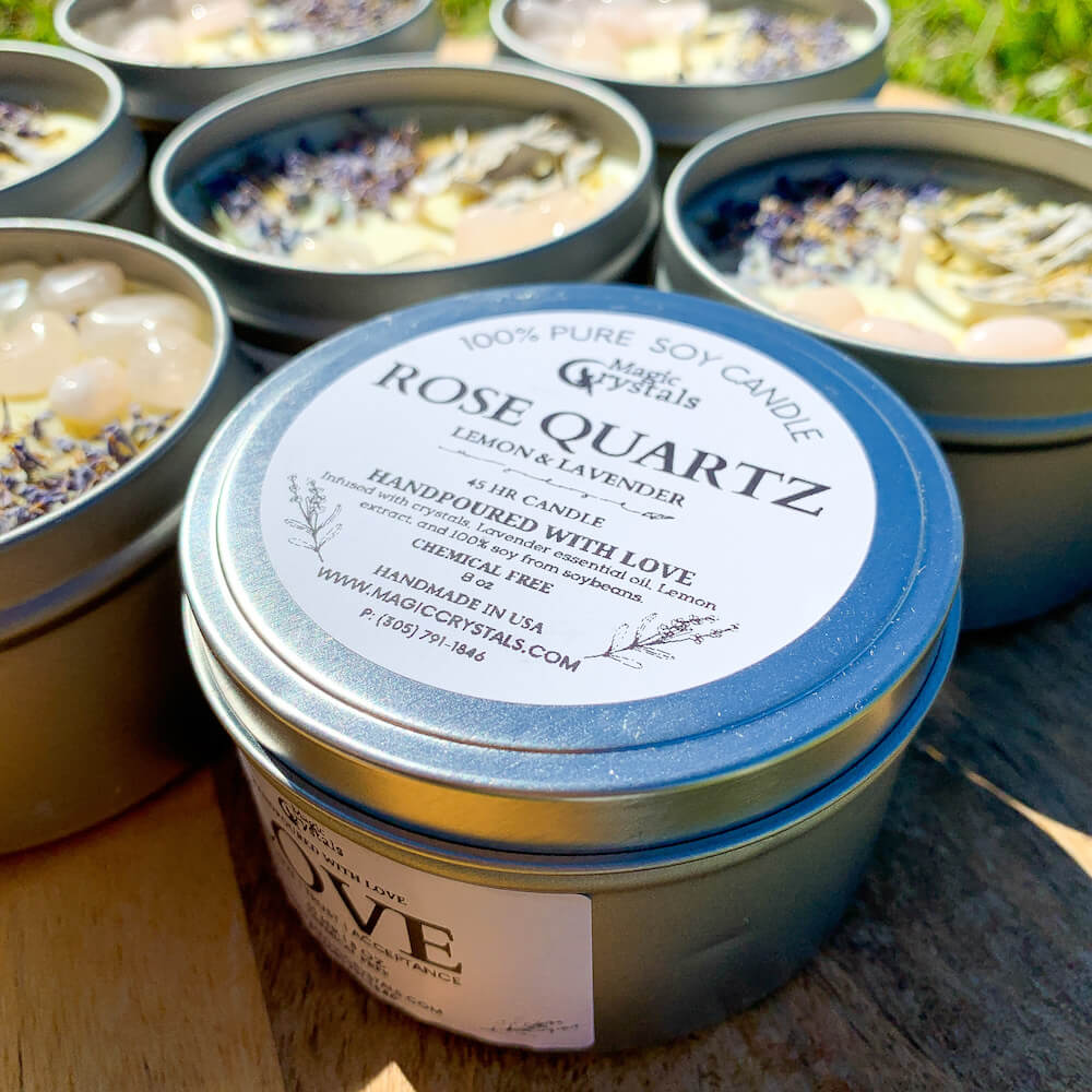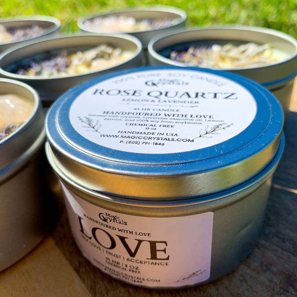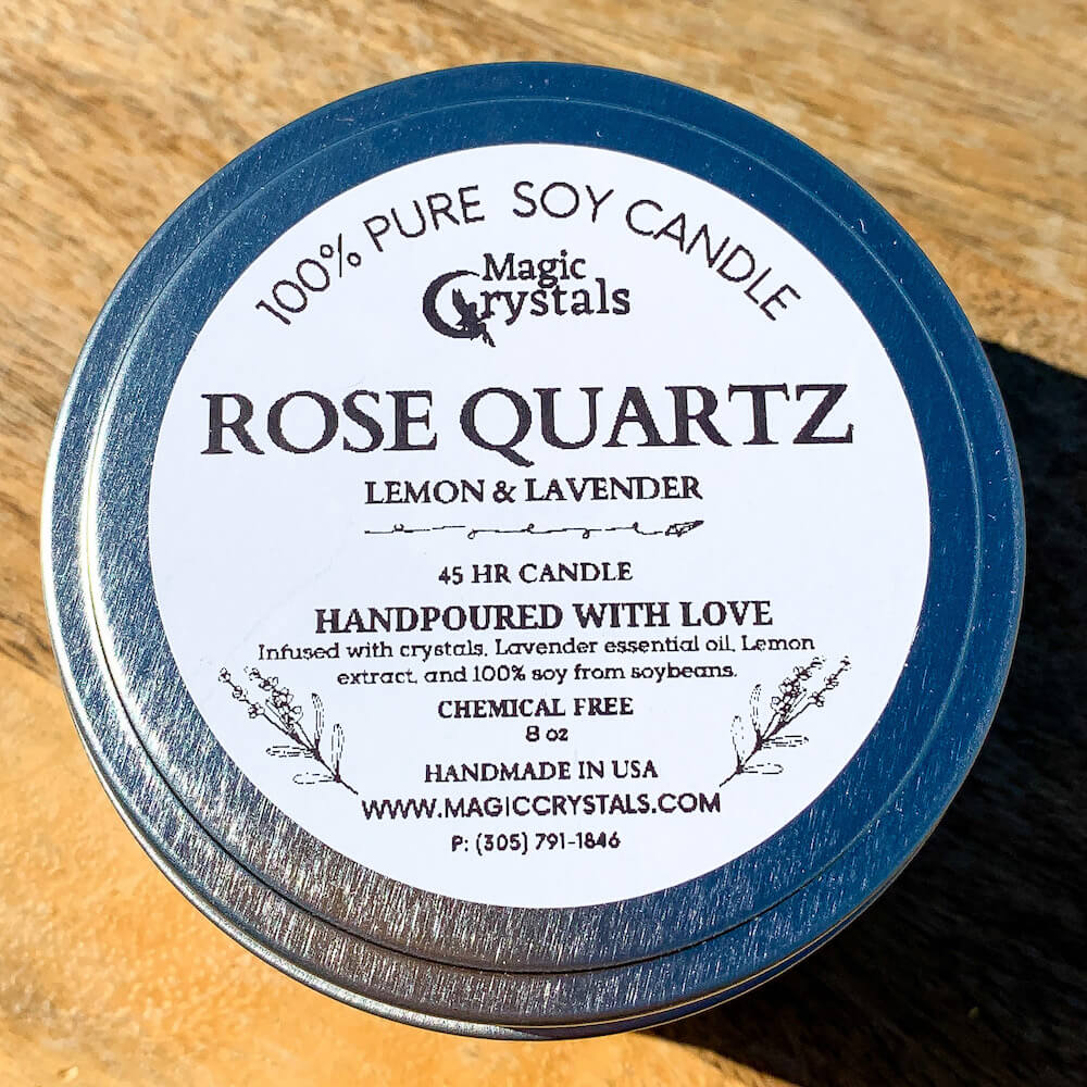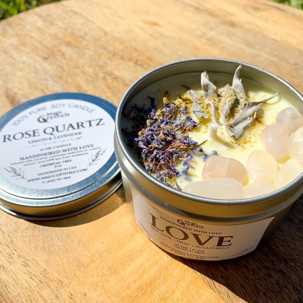 LOVE - Vela de limón, lavanda y cuarzo rosa, 8 oz