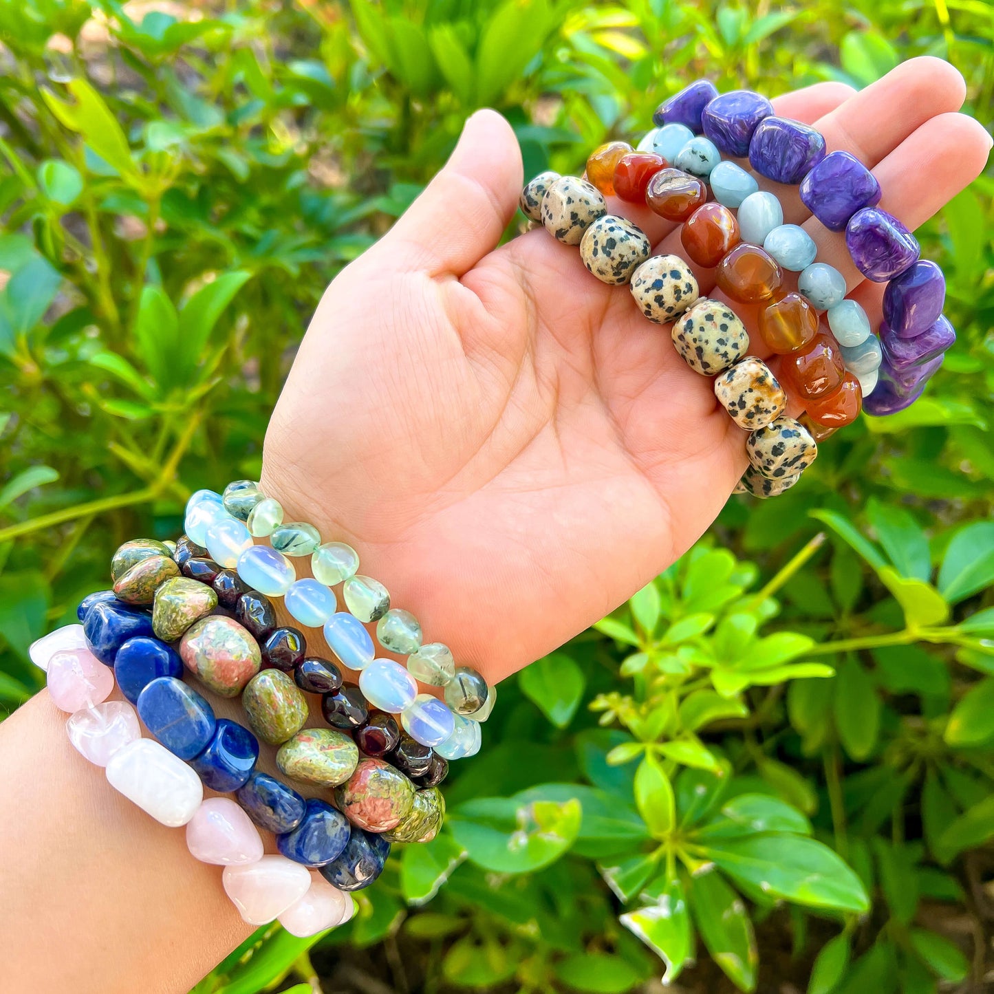Tenga en cuenta que cada pulsera es único en apariencia como cada uno de nosotros. Debido a que todas nuestras piedras preciosas se cortan de piedra 100 % natural, siempre hay una variación de color. Es posible que la pulsera real que recibirá no se vea exactamente igual a la que se muestra en las imágenes de arriba, pero el color será similar. Solo almacenamos gemas de calidad.