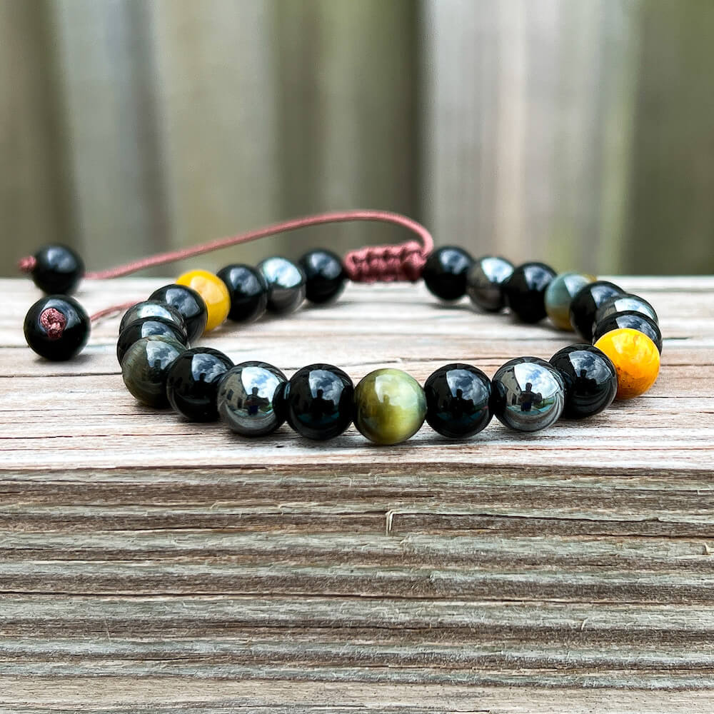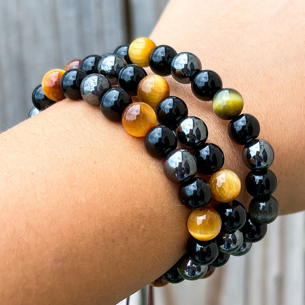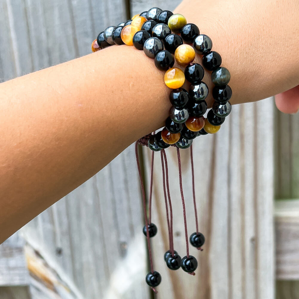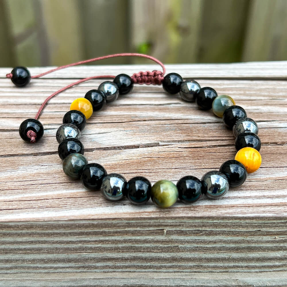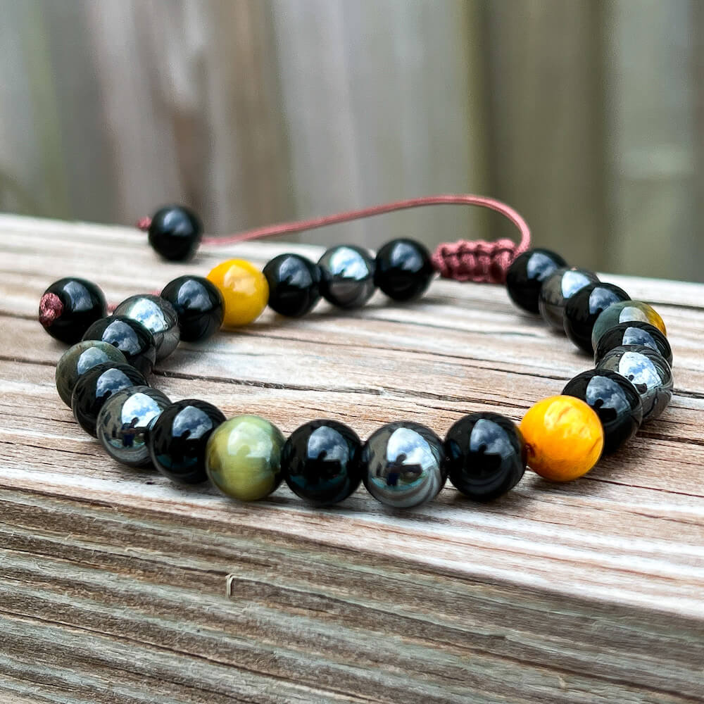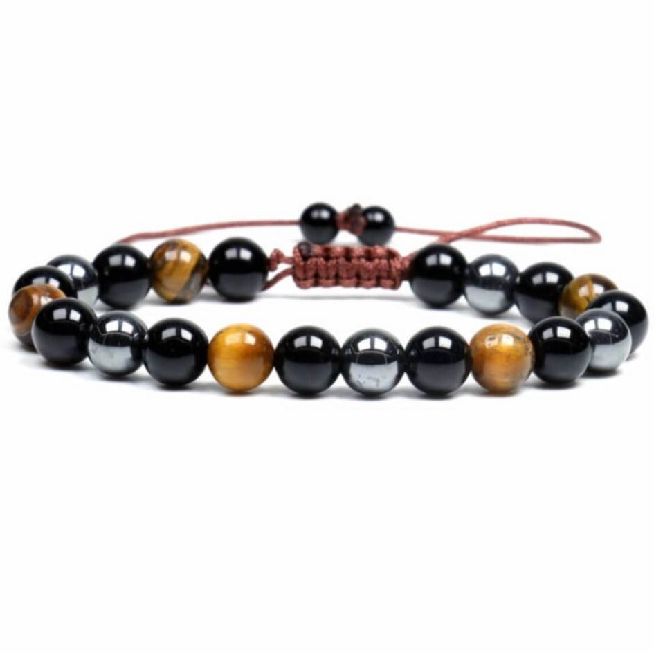 Pulsera Triple Protección - Cuentas Ajustables de Ojo de Tigre Natural de Ensueño, Obsidiana Negra y Hematites