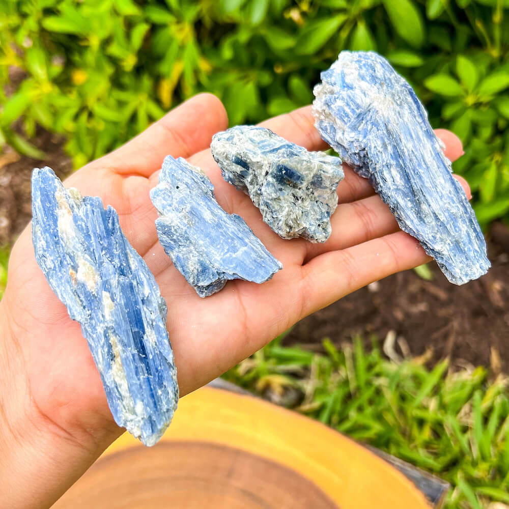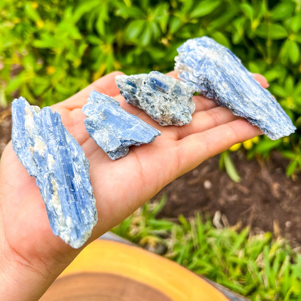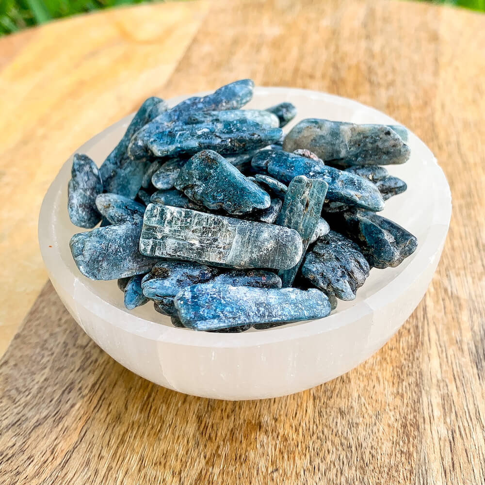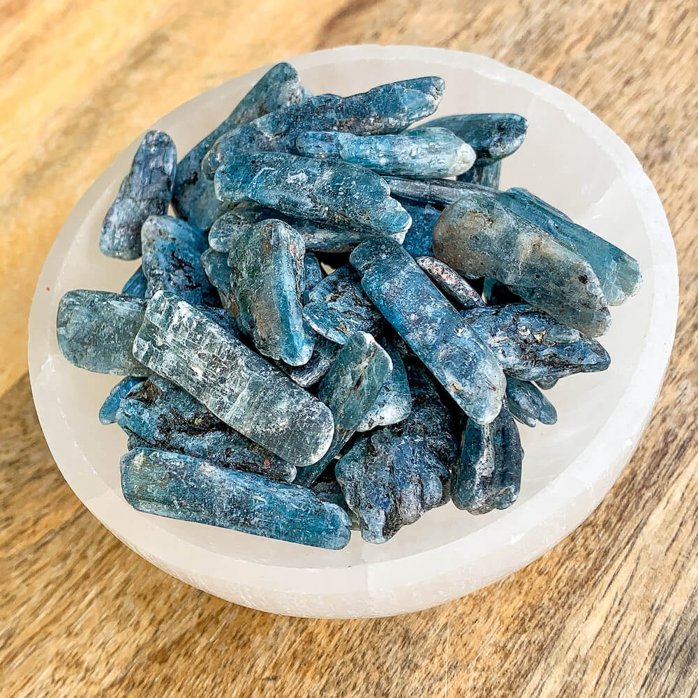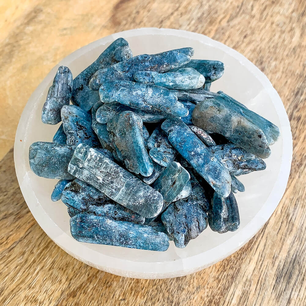 La Cianita Azul es un mineral de silicato de aluminio con una calidad de dureza inusual. Las cianitas azules tienen una alta vibración y crean transferencias de energía muy rápidas. Abren los canales psíquicos y activan los centros de la mente, acentuando las capacidades mentales de uno y mejorando la habilidad de uno para "descargar" información de fuentes superiores.
