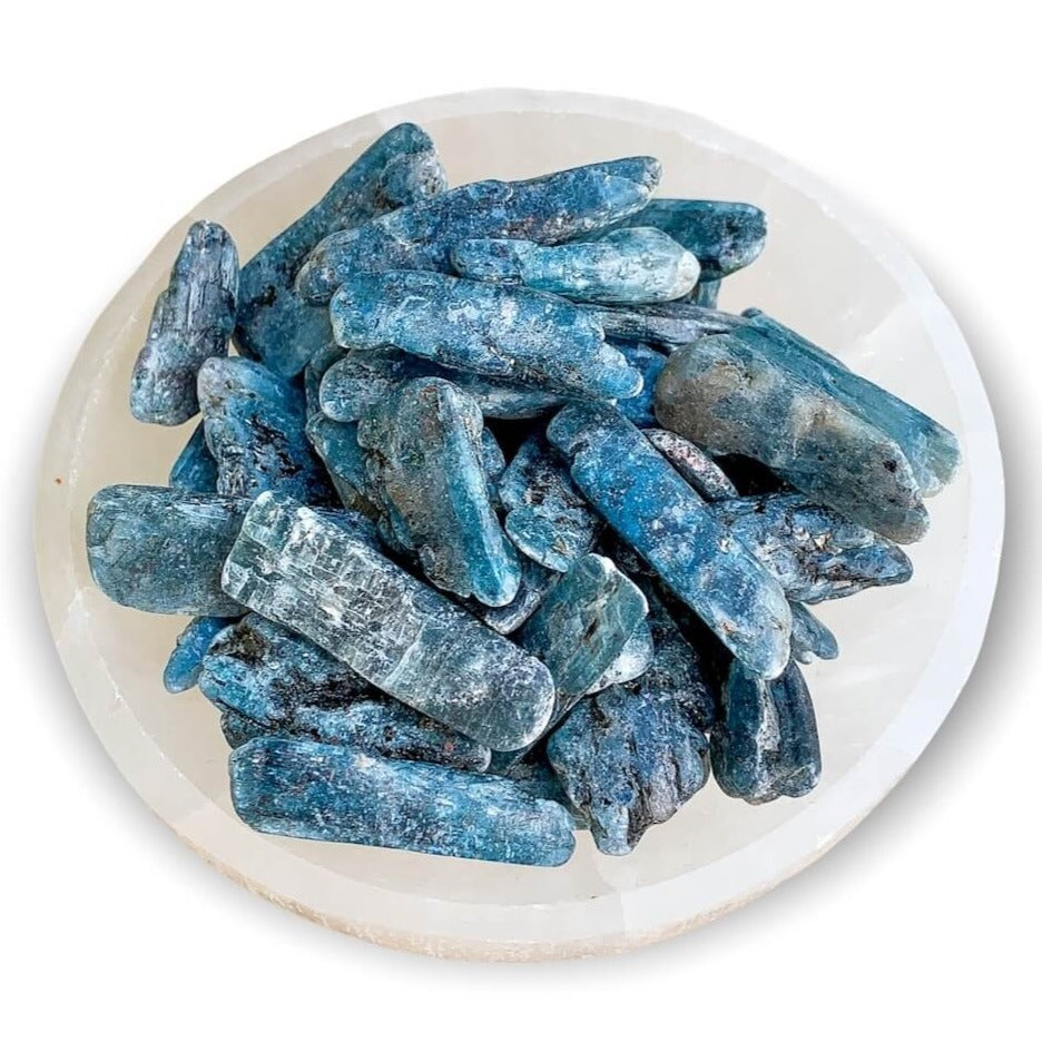 Blue Kyanite abre el chakra de la garganta, fomentando la comunicación y la autoexpresión. Atraviesa miedos y bloqueos, ayudando a decir la verdad. La cianita es una piedra excelente para la meditación y la armonización. No retendrá vibraciones o energía negativas, por lo que nunca requerirá limpieza. Kyanite alinea todos los chakras y cuerpos sutiles al instante. Proporciona equilibrio de energía yin-yang y disipa bloqueos, moviendo la energía suavemente a través del cuerpo físico.