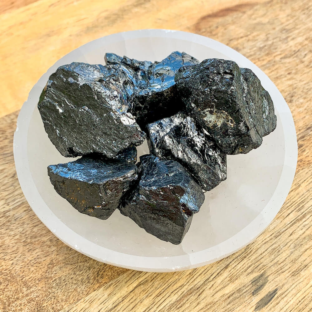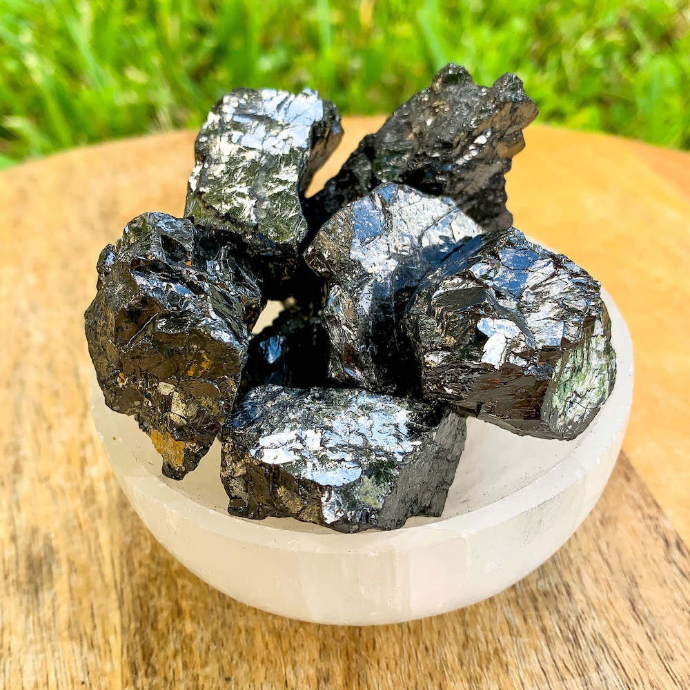 Shungite es una piedra extremadamente terrosa que es maravillosa para aliviar las tensiones geopáticas, como la contaminación electromagnética dañina, el smog y las frecuencias.