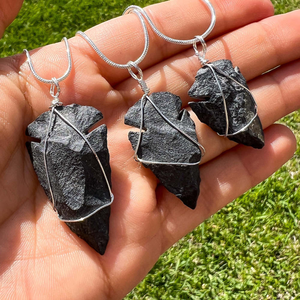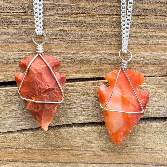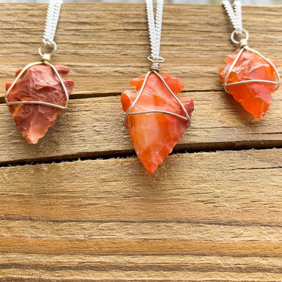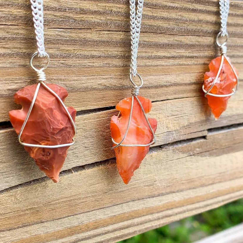 Collar con colgante de punta de flecha de piedra de cuarzo rosa