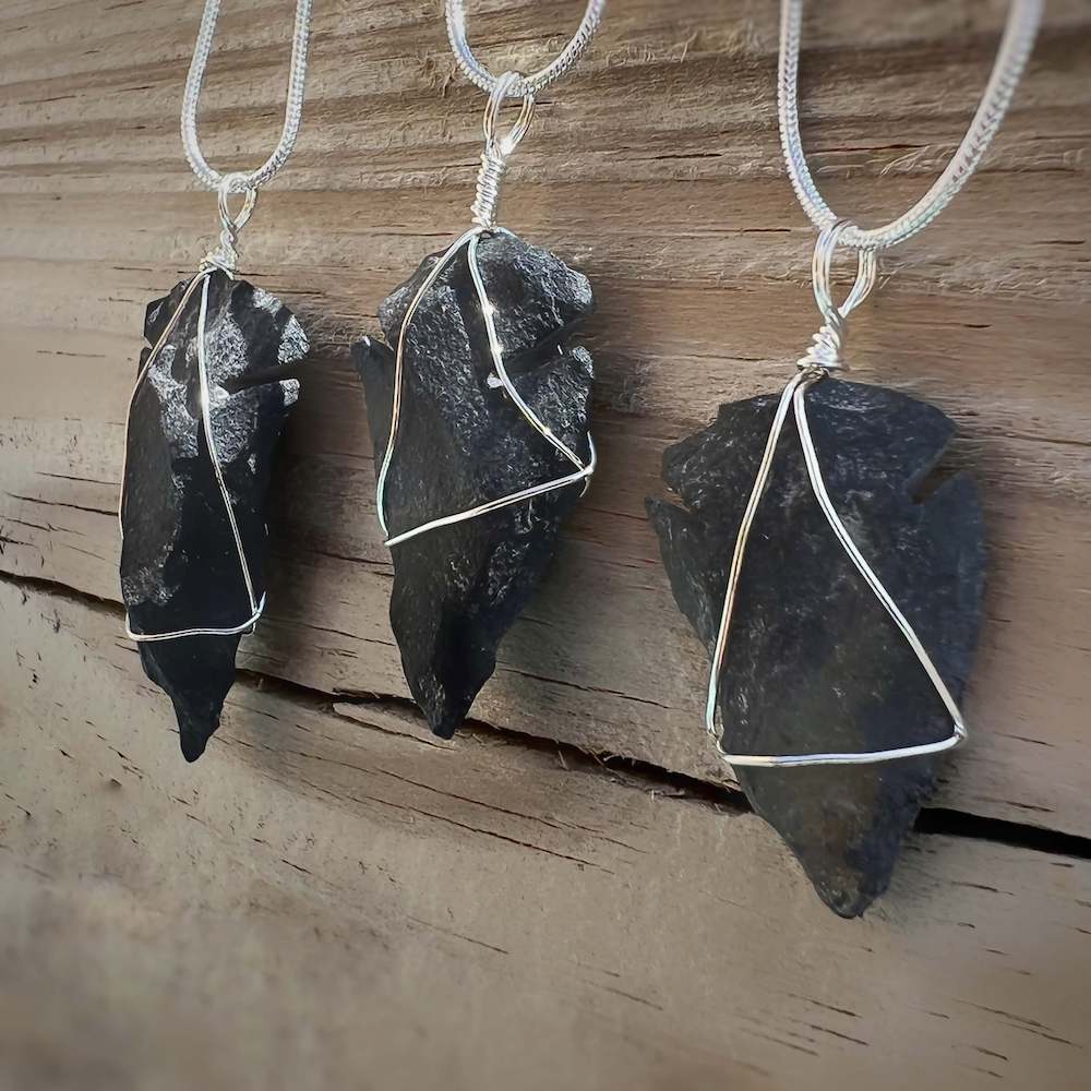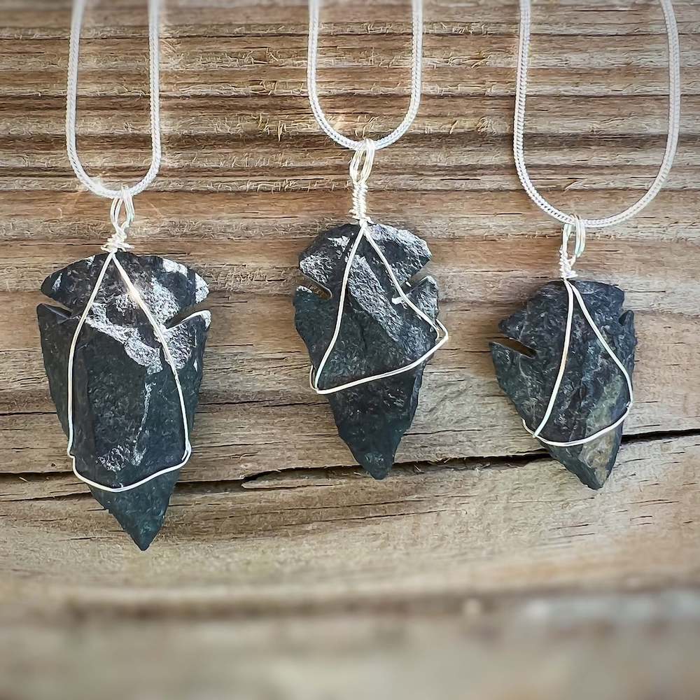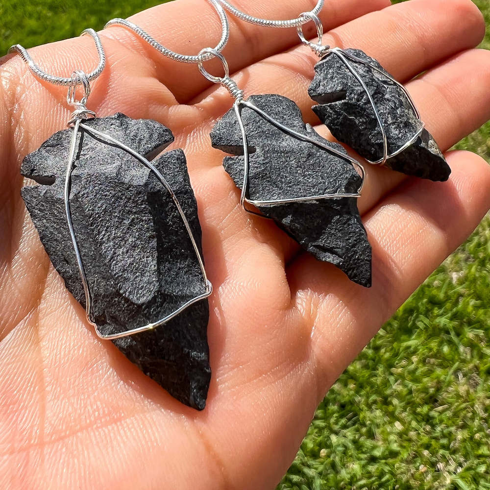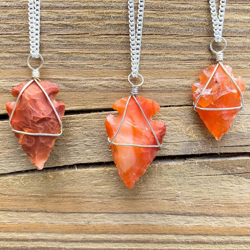 Collar con colgante de punta de flecha de piedra de cuarzo rosa