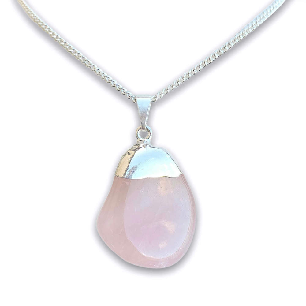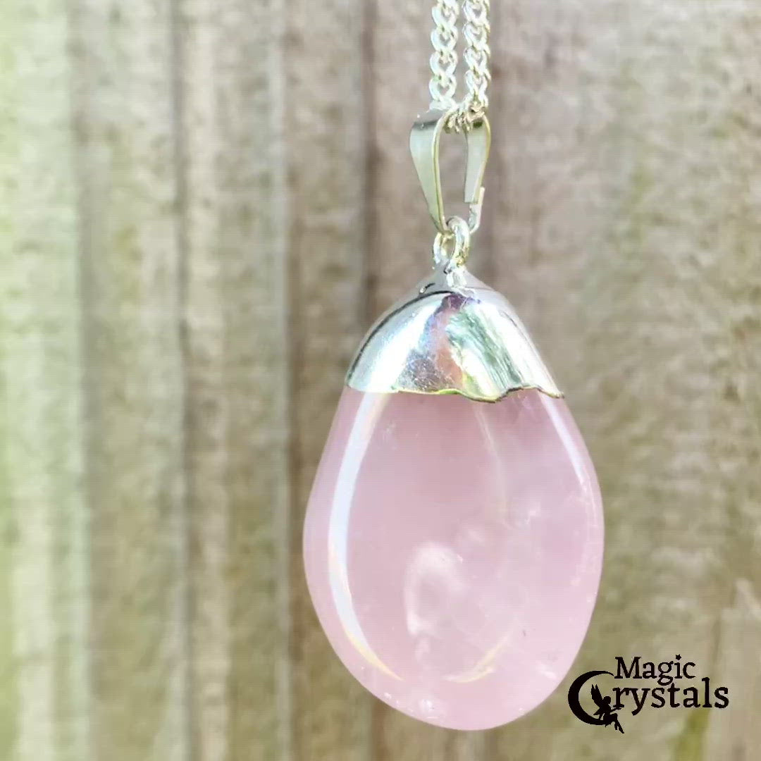 - Auténtica piedra de cuarzo rosa pulida engarzada en plata de ley