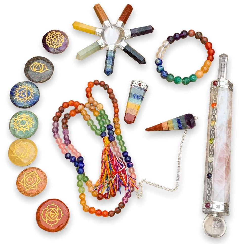 El Juego de Sanación de Siete Chakras fue diseñado para ayudar a equilibrar, alinear y limpiar sus 7 chakras. Estos siete símbolos de chakra son vitales para nuestra salud. Los Siete Chakras son los principales centros de energía del cuerpo y se cree que son el camino de la armonía entre la mente, el cuerpo y el alma. Este hermoso kit artesanal de 7 chakras ayudará a activar tus Chakras para traer equilibrio y energía a tu vida.