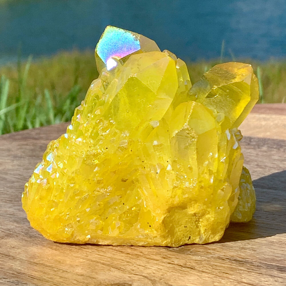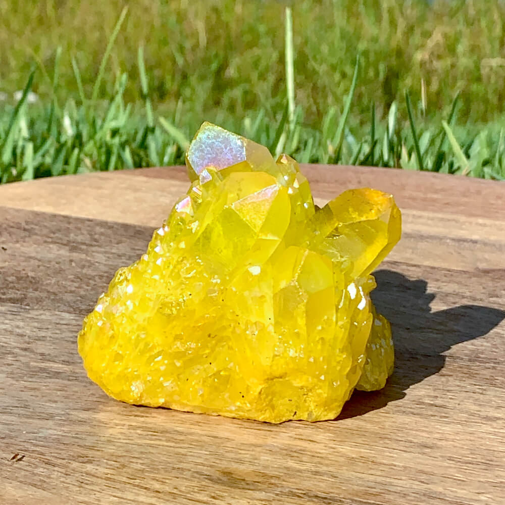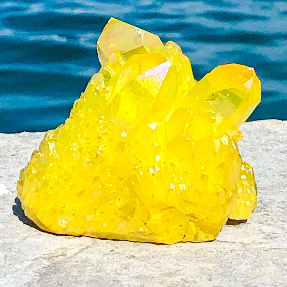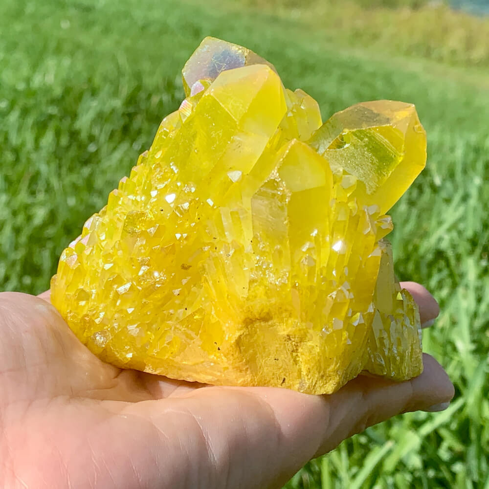 Al Canary Yellow se le ha agregado Platinum a la mezcla, lo que lo hace tres veces el precio del Orange. Sunshine Aura tiene una hermosa energía que resuena fuertemente con nuestro plexo solar. Nos anima a ver cómo asumimos la responsabilidad de nuestra propia felicidad en lugar de atribuírsela a los demás. Sunshine Aura promueve la confianza en uno mismo, la buena autoestima, la confianza en nosotros mismos y en los demás y es una piedra de alegría, felicidad y amor por la vida.