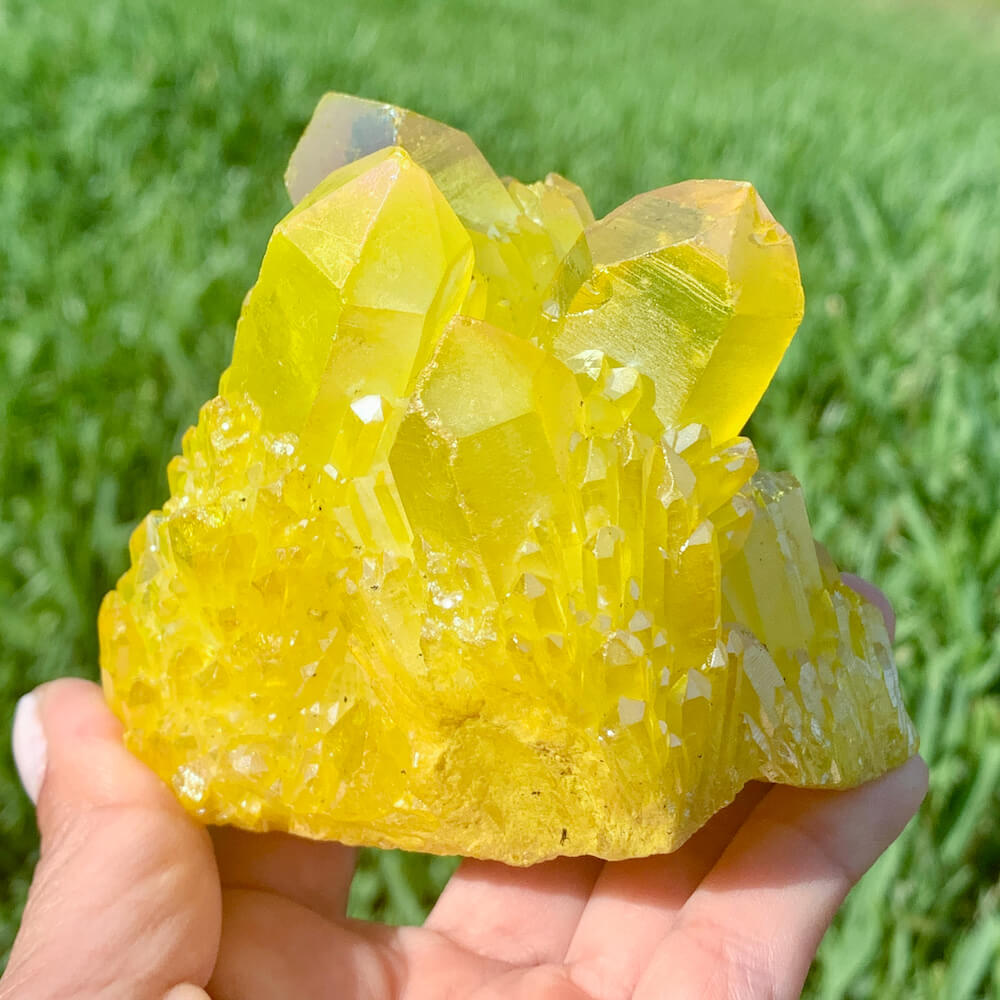 Cuarzo espiritual - Racimo de cristal de cuarzo con aura de llama amarilla