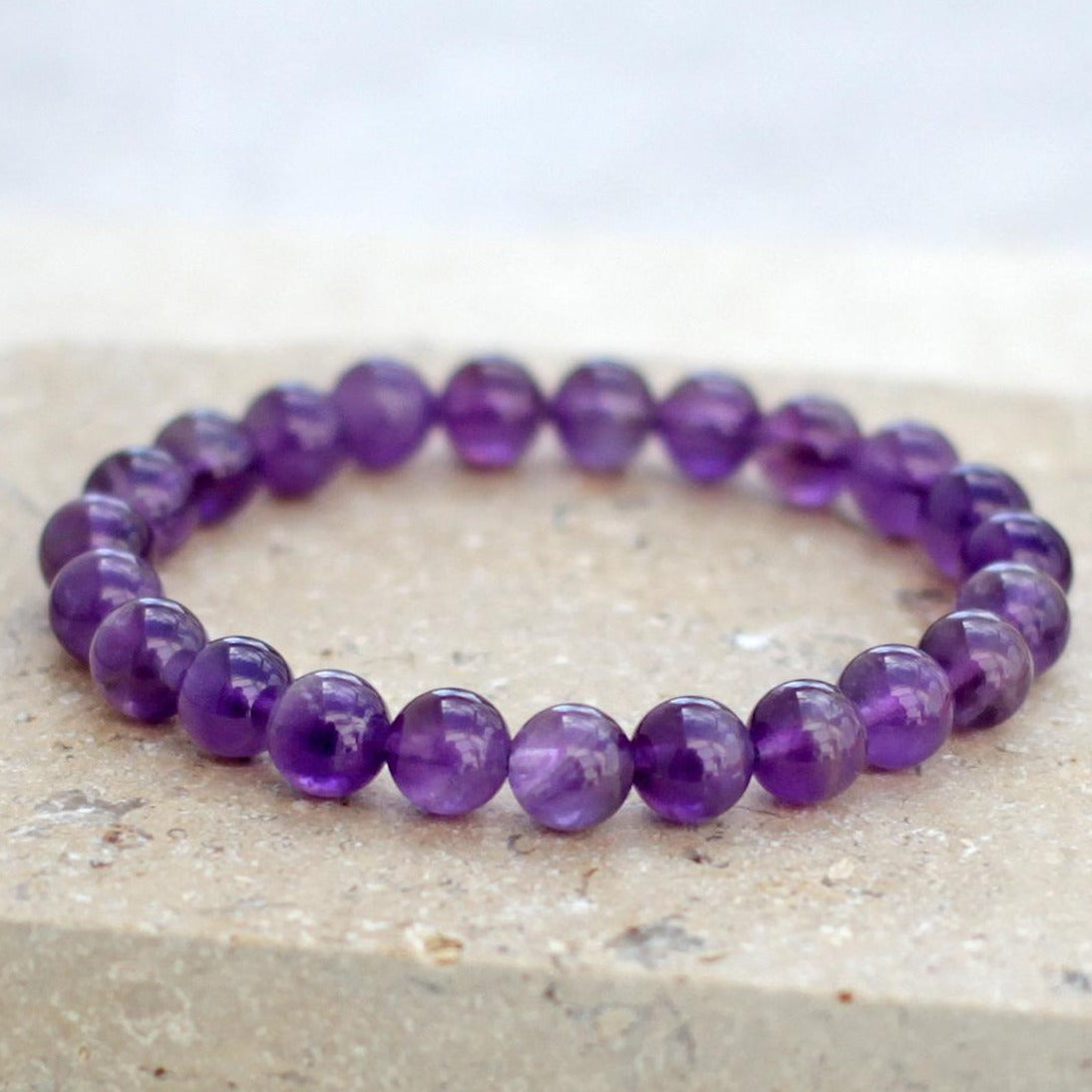 Amethyst Stone Quartz Elastic Beaded Bracelet