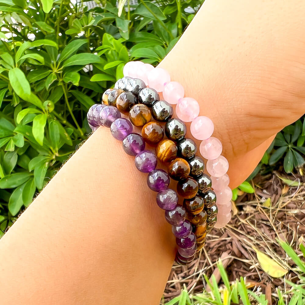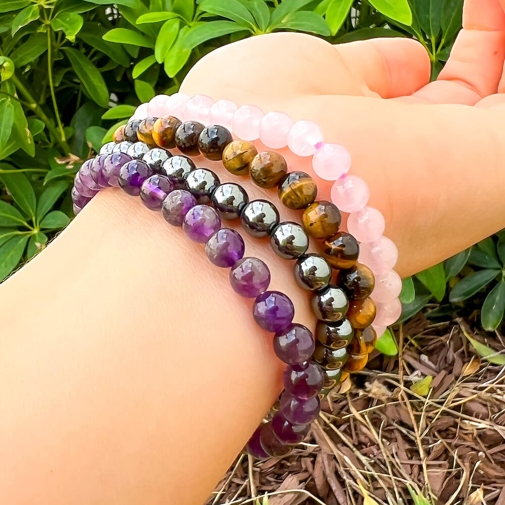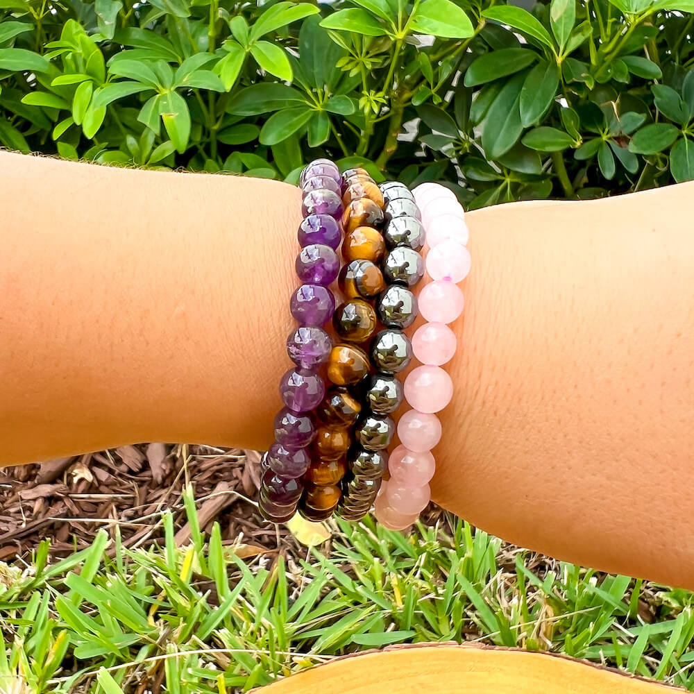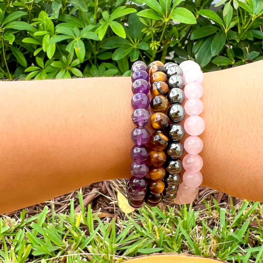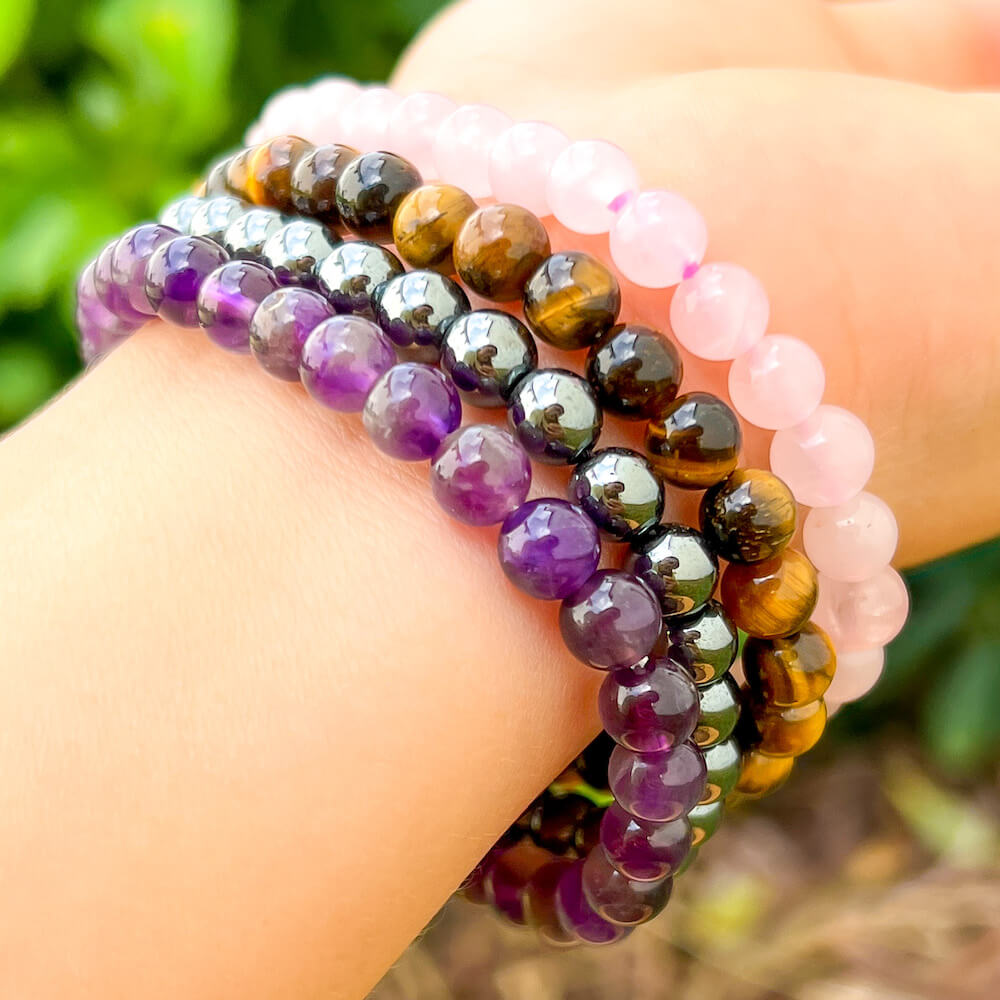 • 4 Bracelets: Amethyst, Tiger Eye, Hematite, Rose Quartz