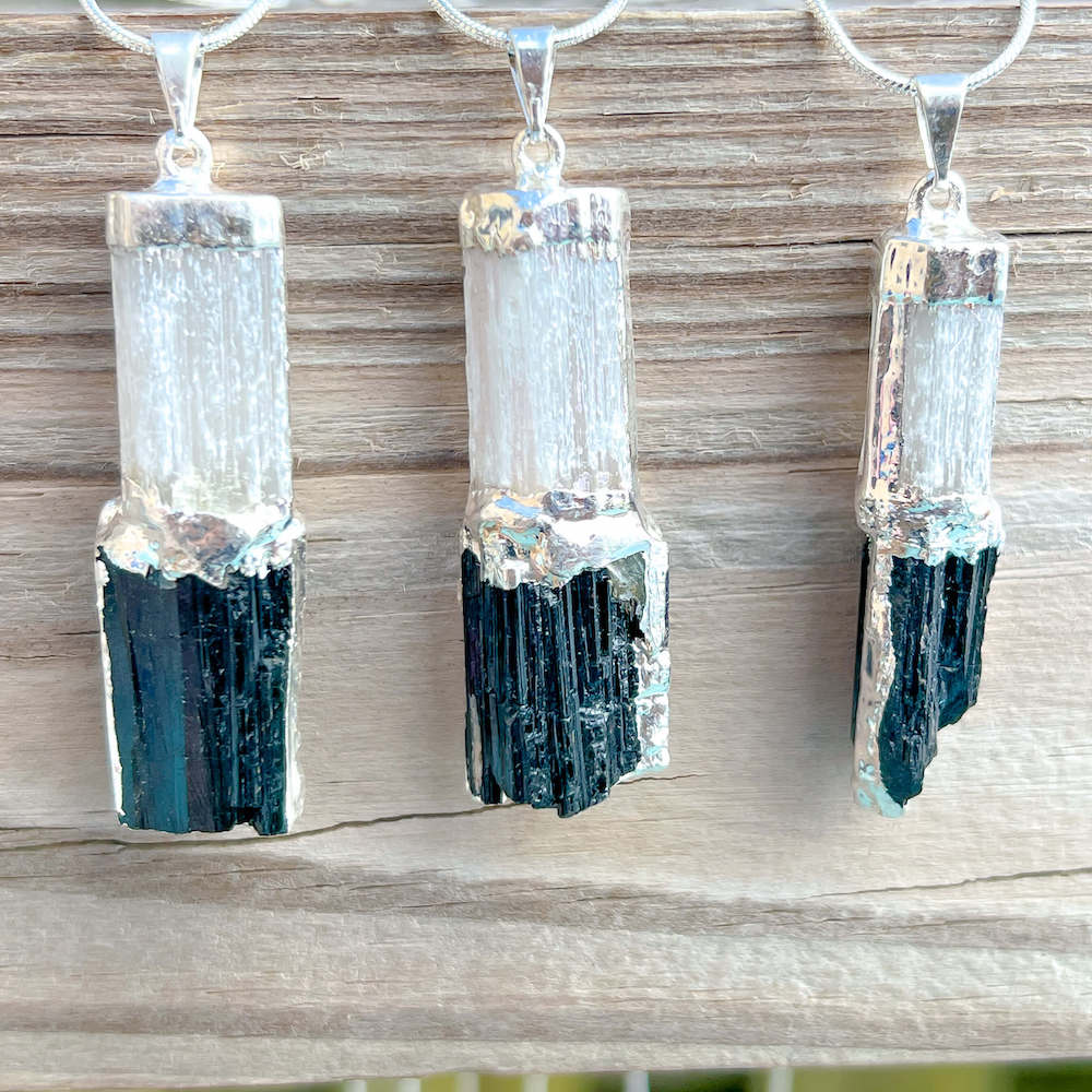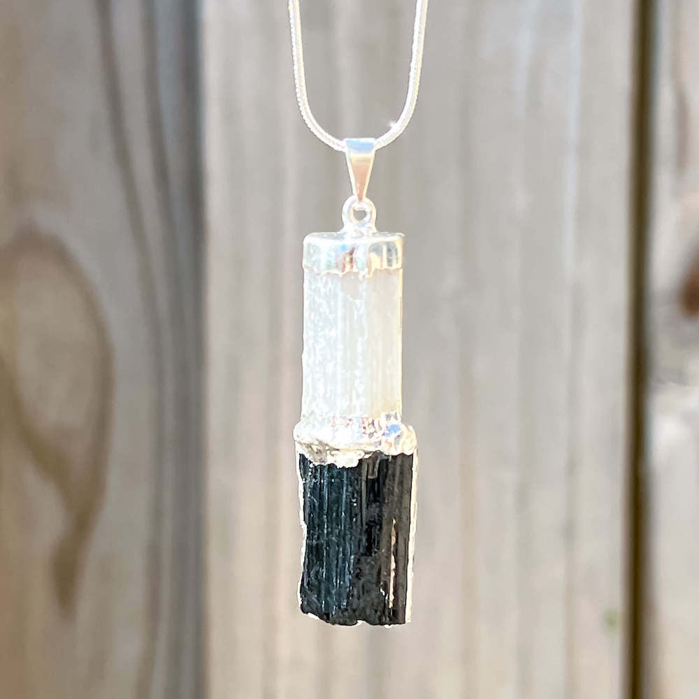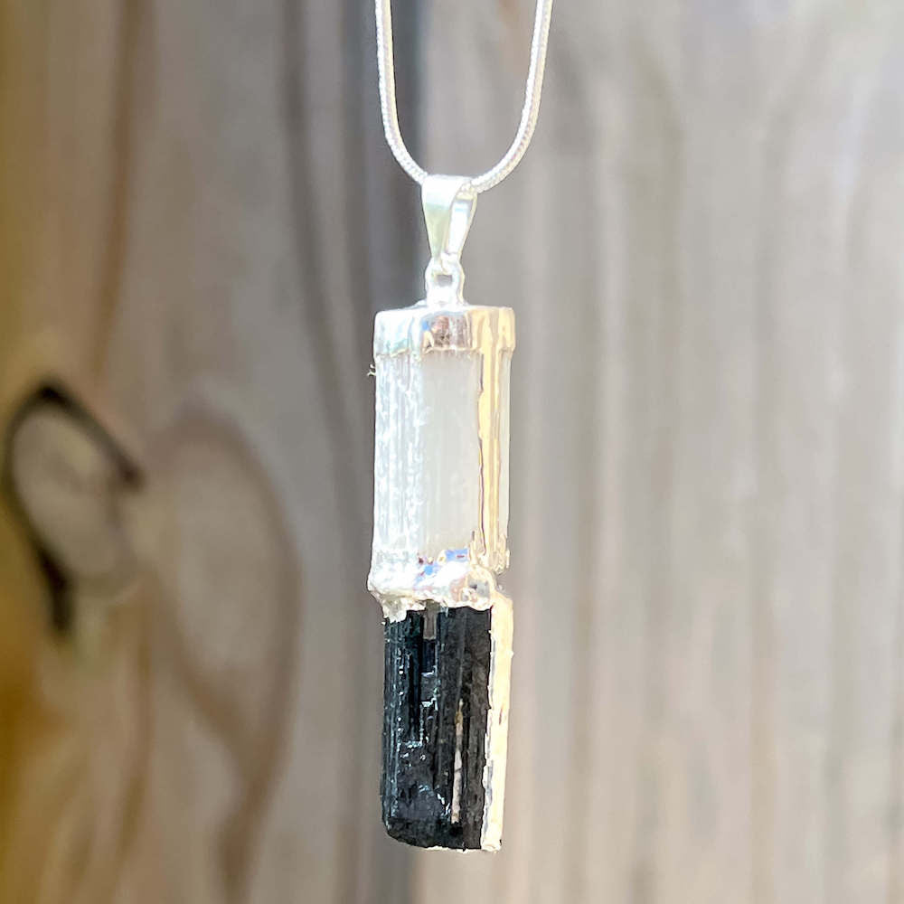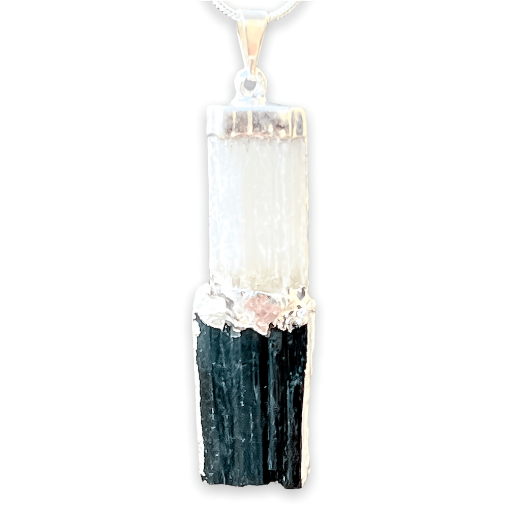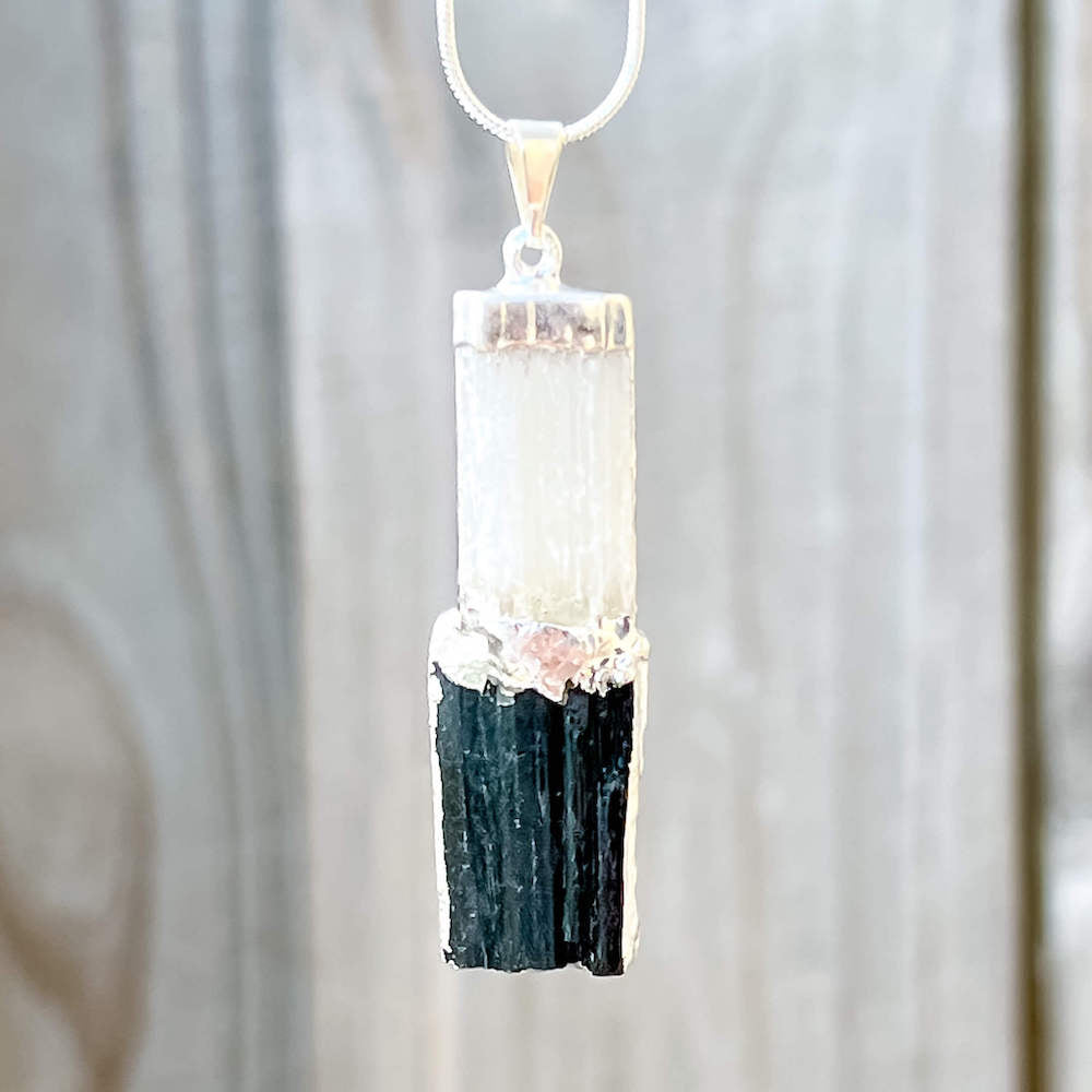 - Handmade Polished Authentic Selenite Stone set in with Black Tourmaline