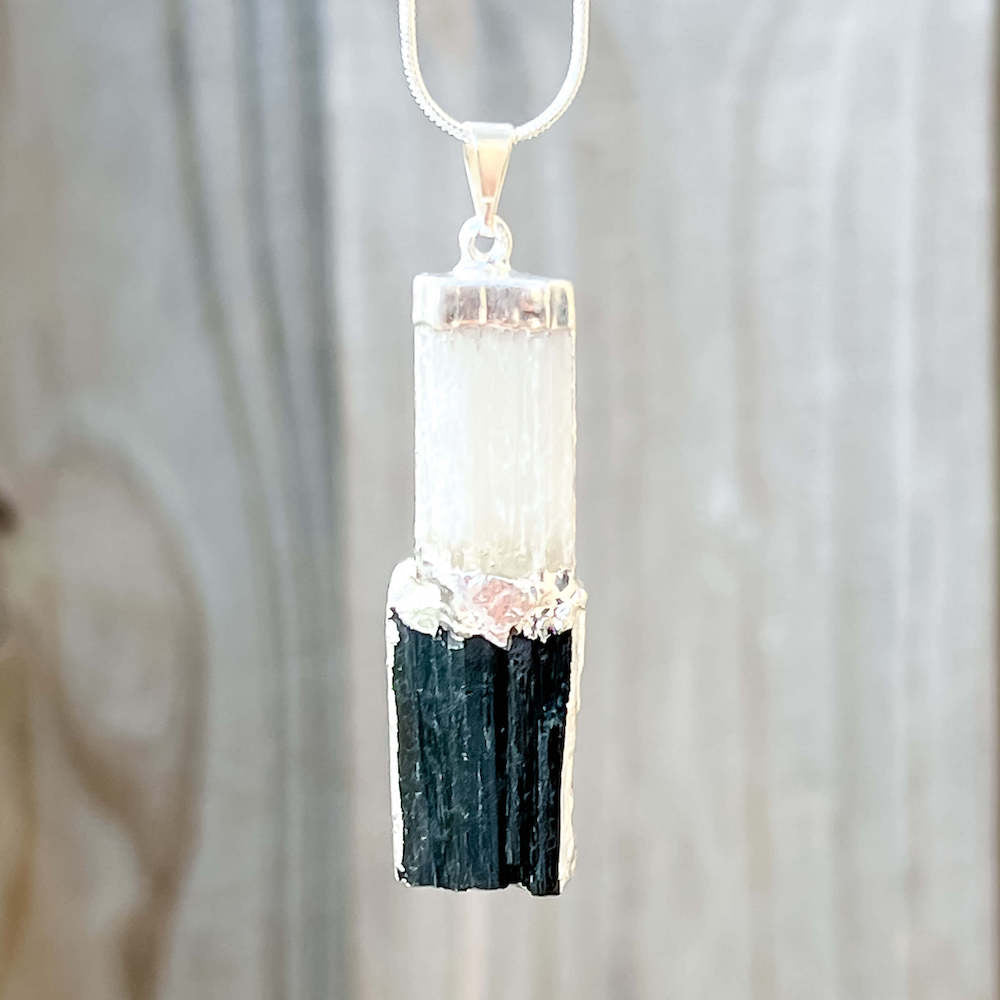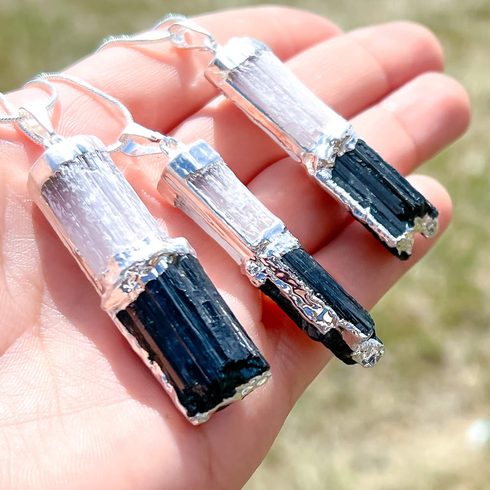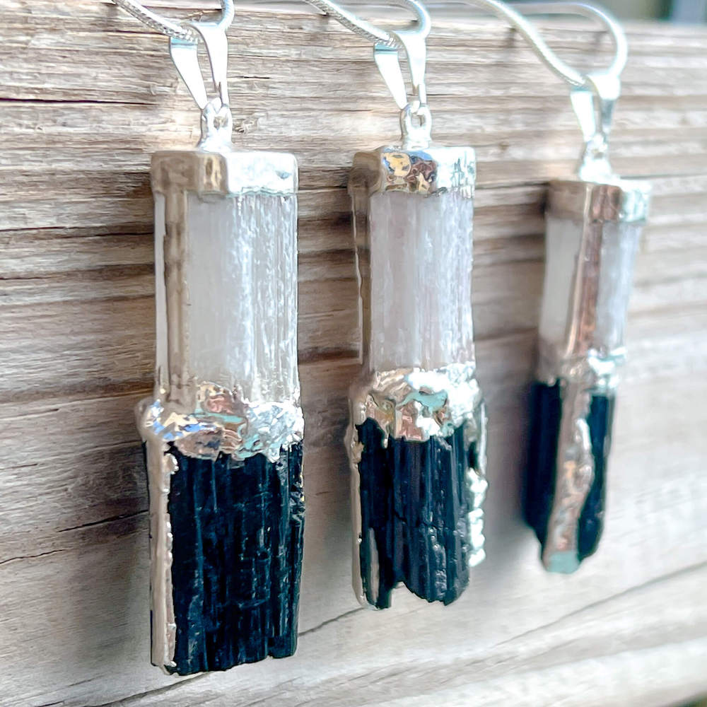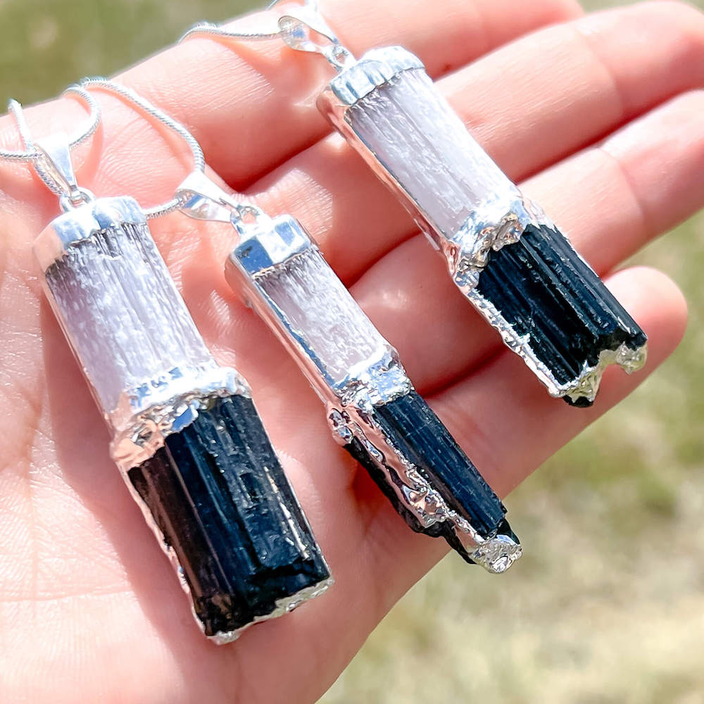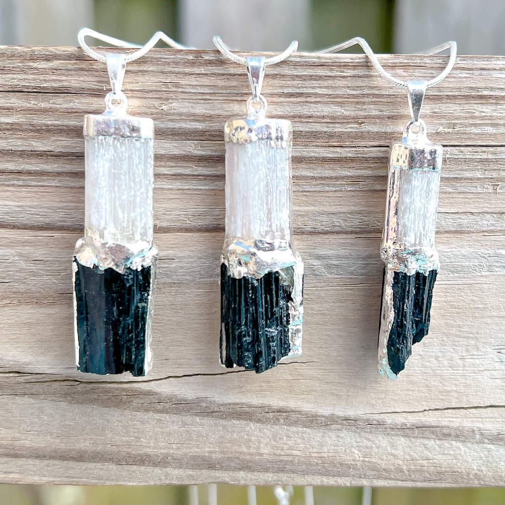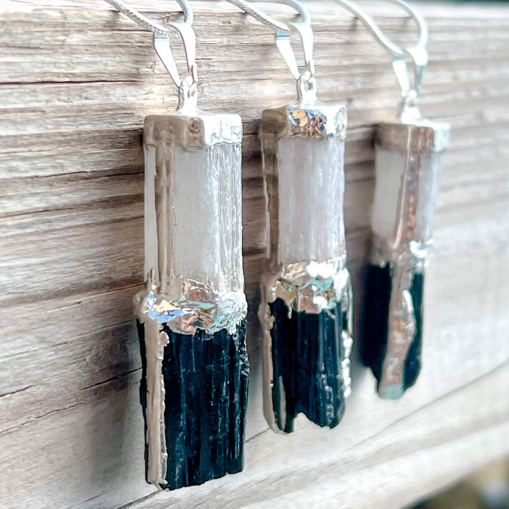 - Handmade Polished Authentic Selenite Stone set in with Black Tourmaline