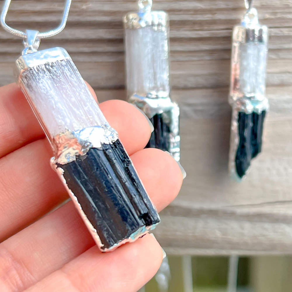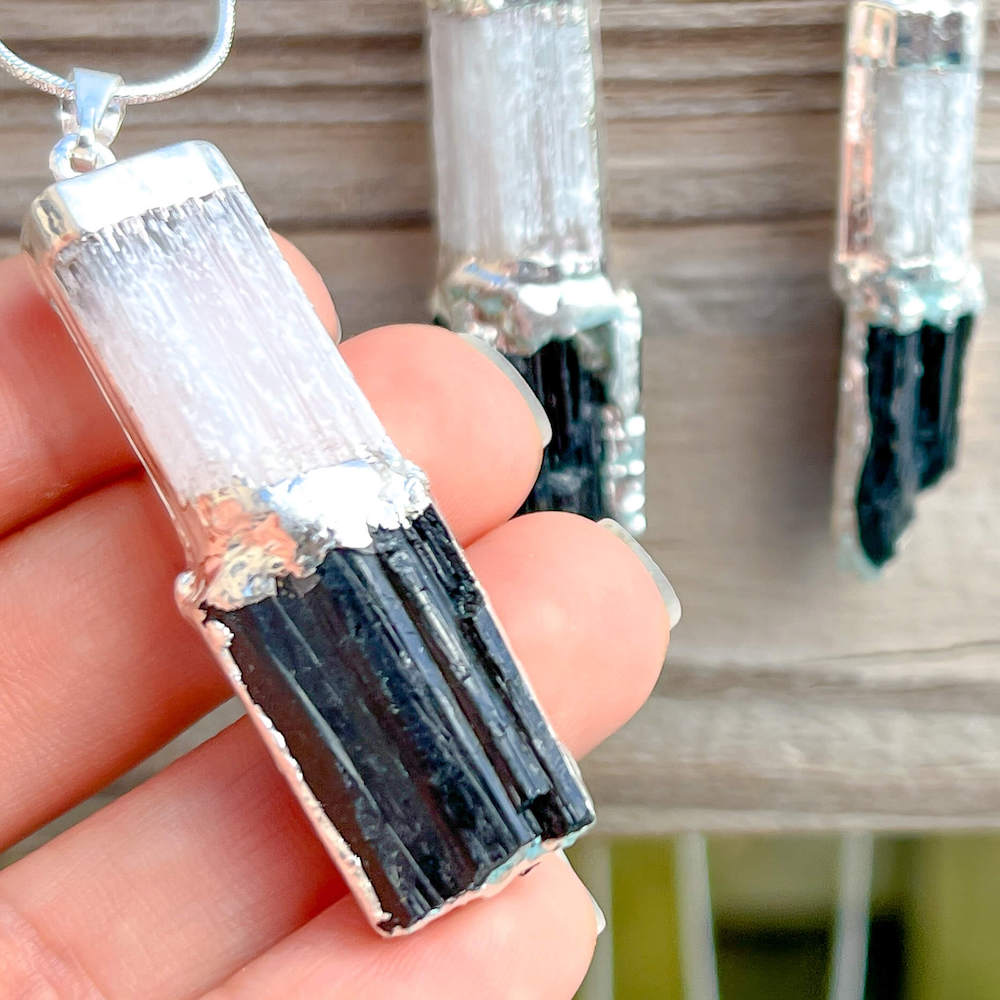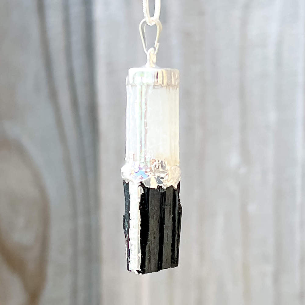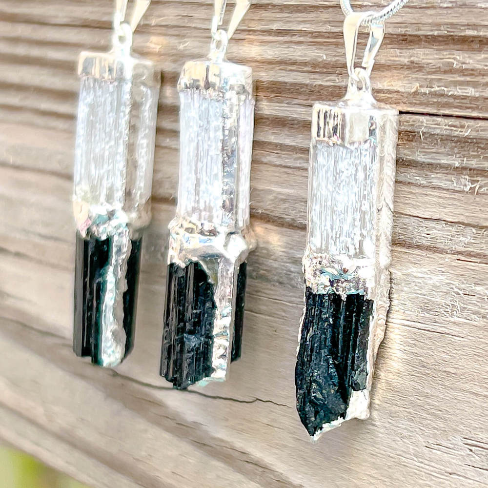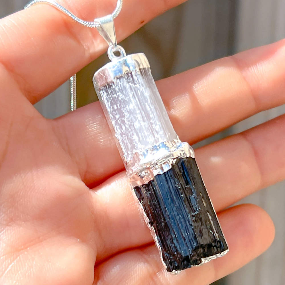 - Handmade Polished Authentic Selenite Stone set in with Black Tourmaline