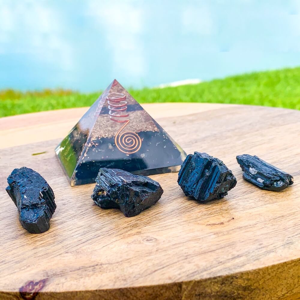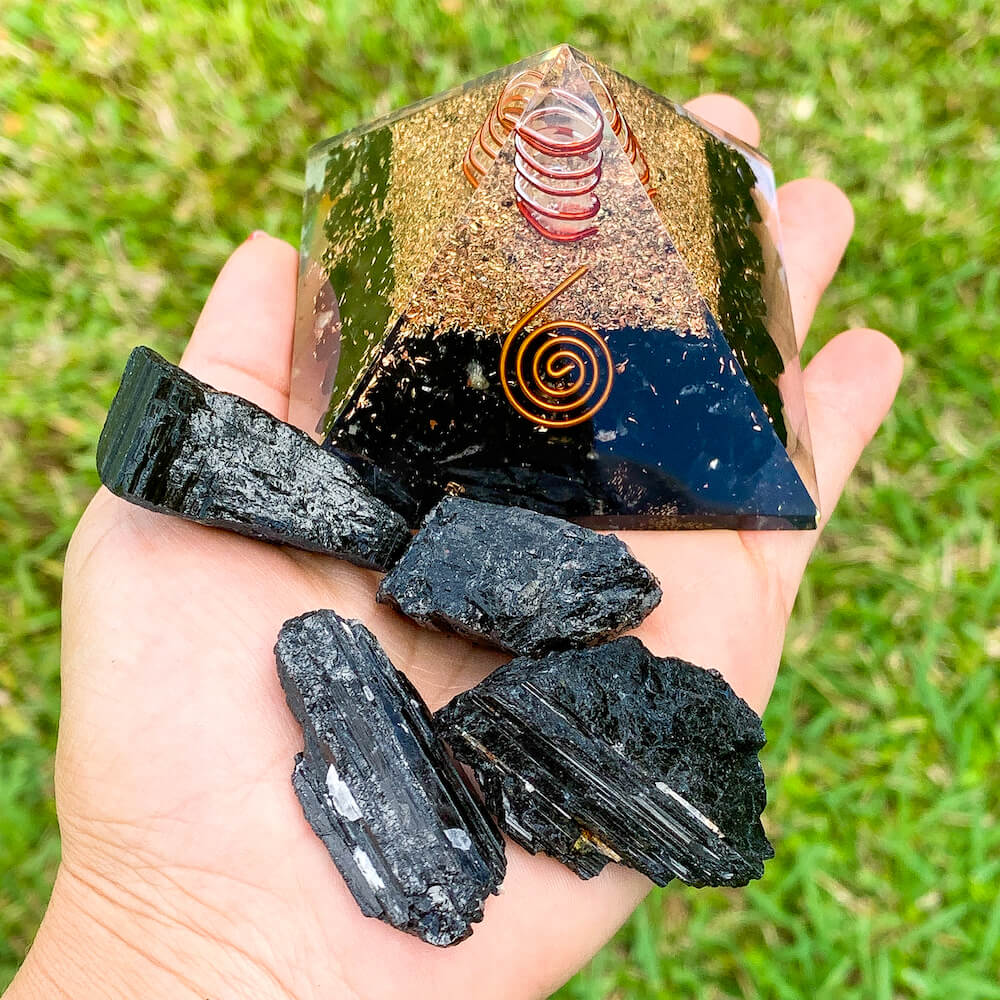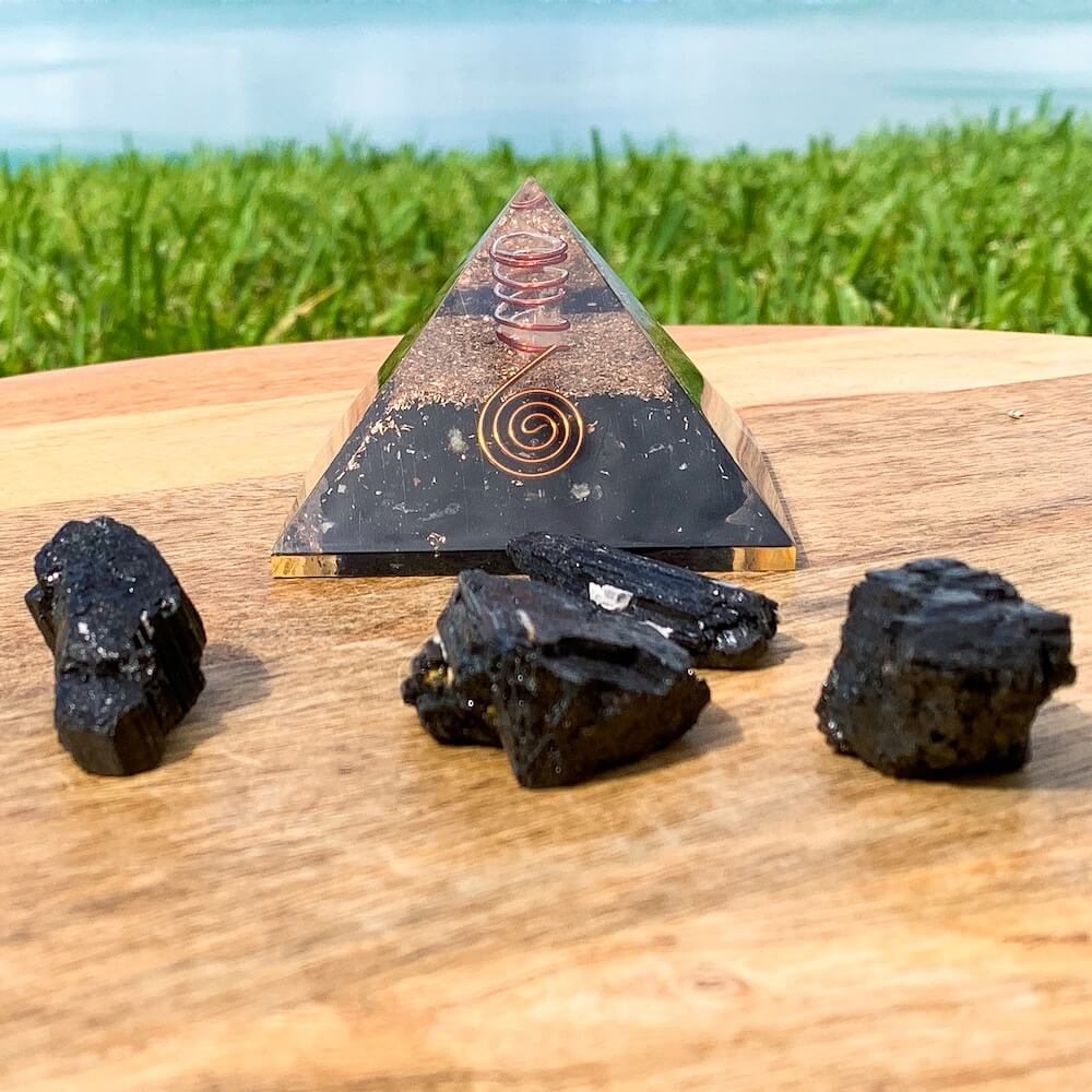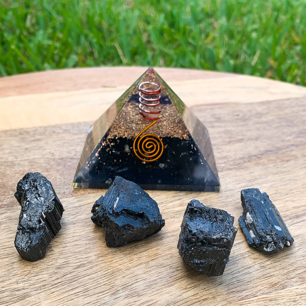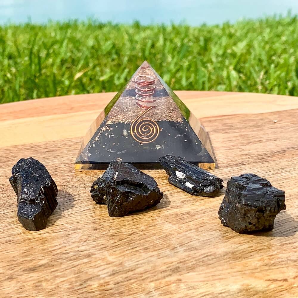 Black Tourmaline Stone | Orgone Pyramid | Copper Coil | Clear Quartz Point