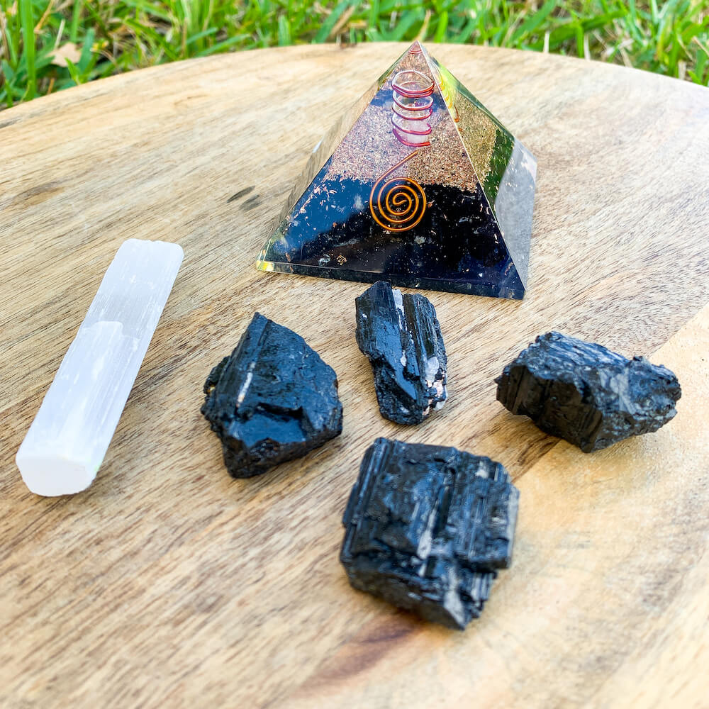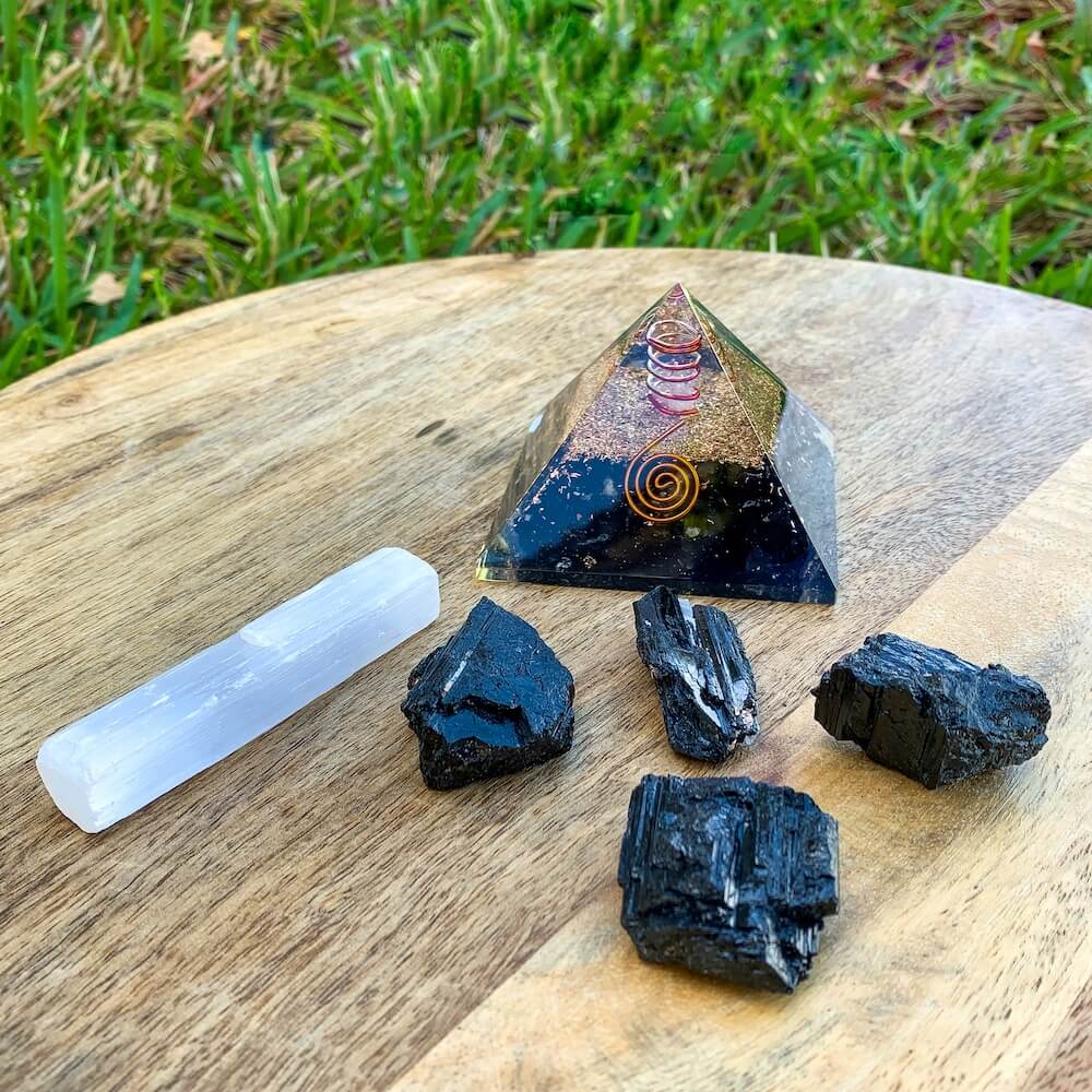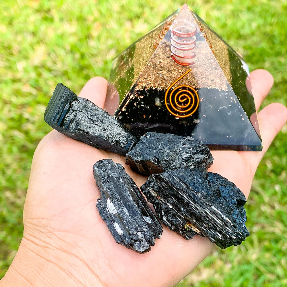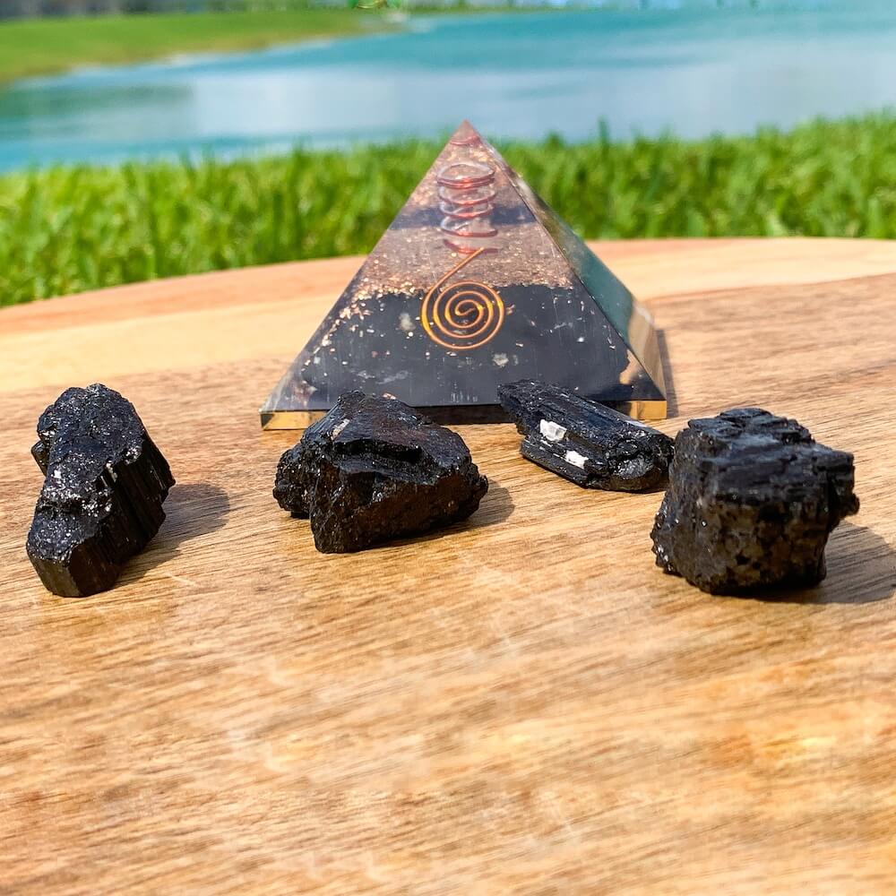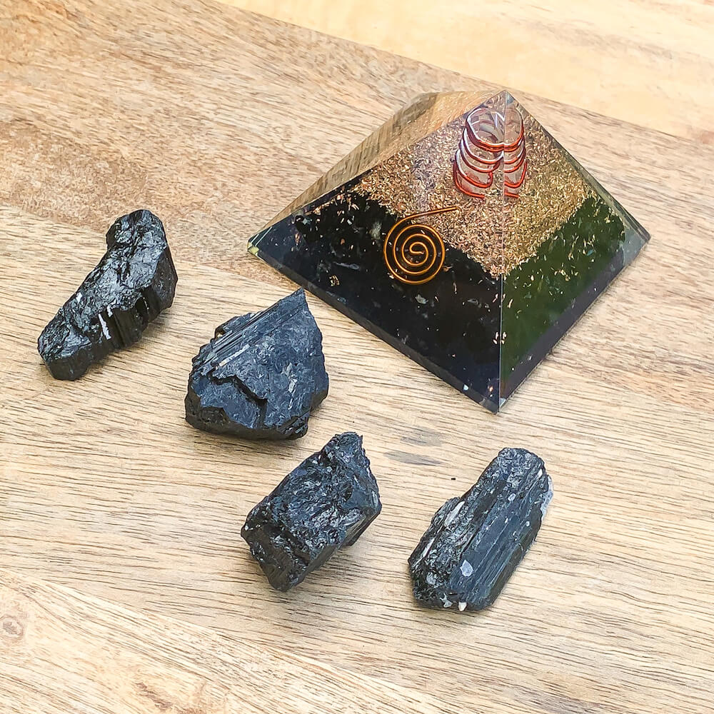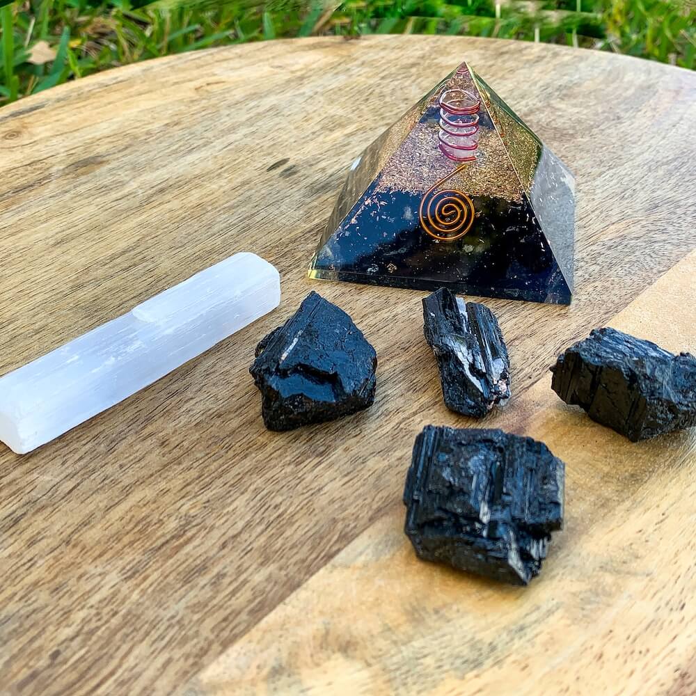 Black Tourmaline Stone | Orgone Pyramid | Copper Coil | Clear Quartz Point
