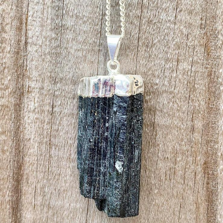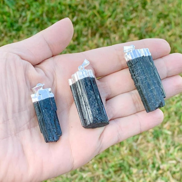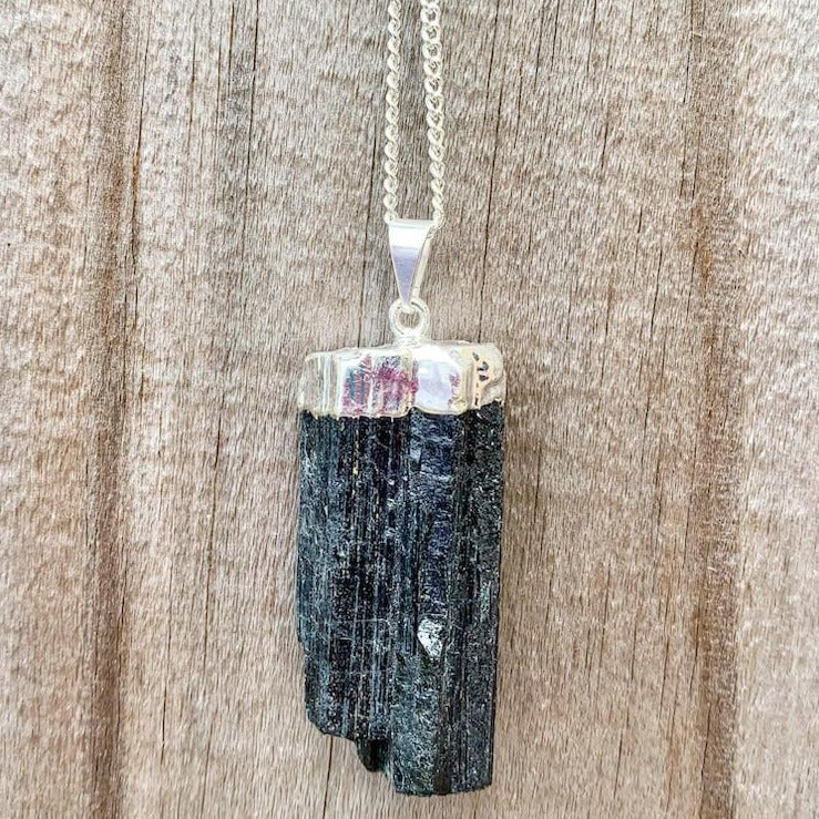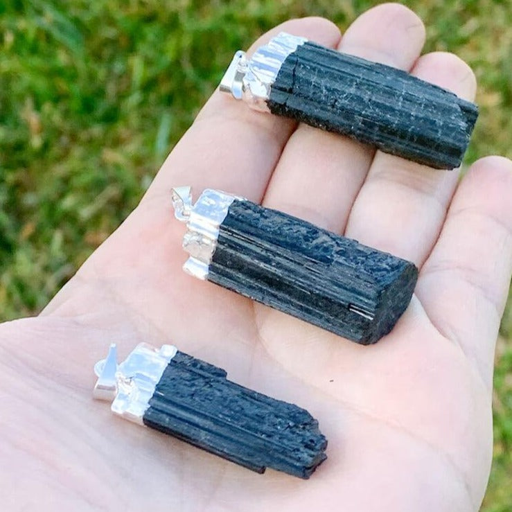 - Polished Authentic Black Tourmaline  Stone set in plated silver.