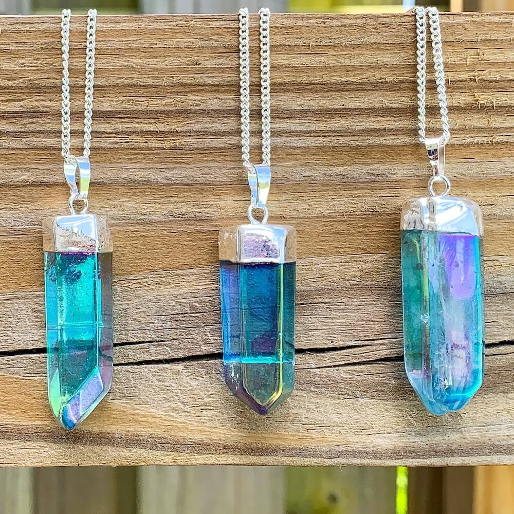 Aura Quartz is treated with gold and adds the healing properties of gold to quartz. Gold is the purest element. You will get similar aqua aura quartz as shown in pictured. This are unique natural wands and they may vary in shape and size.