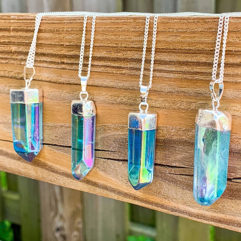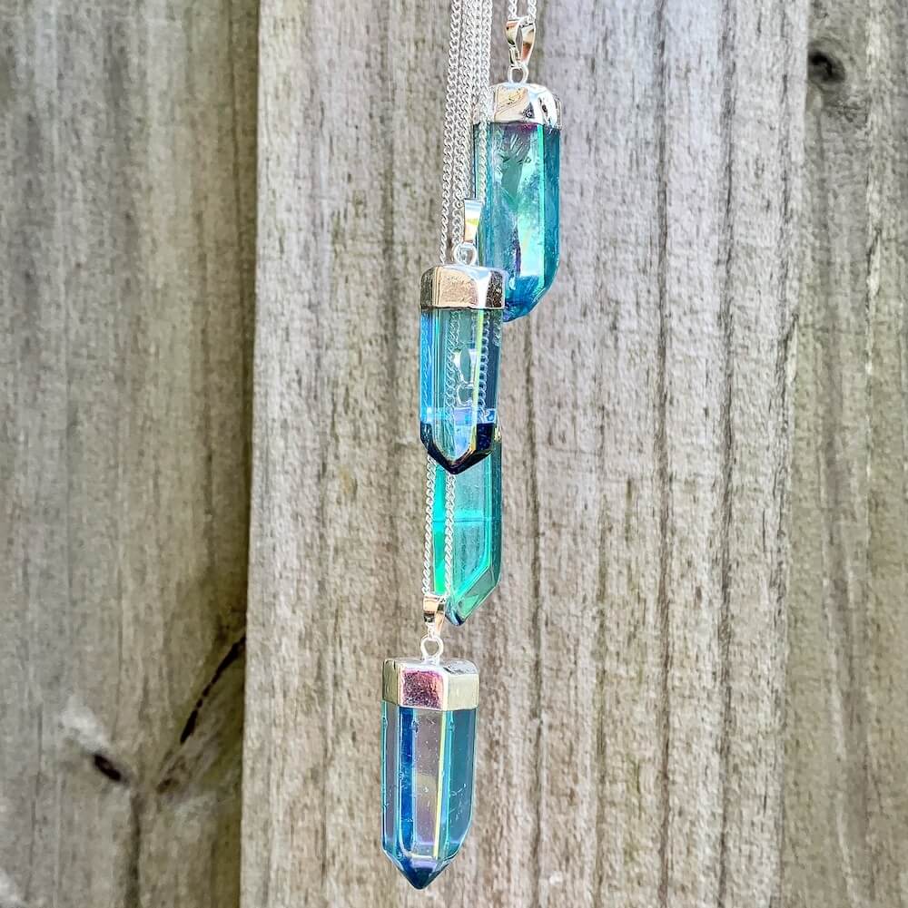 Blue Aqua Aura Meaning: When you first lay eyes on the aqua aura quartz, you cannot help but be enchanted by its shimmering iridescence. Aqua Aura is called both a success stone and an abundance stone. It is said to attract success to all who use or carry it, and help them understand that it is indeed success. Aqua Aura can bring prosperity, even possibly wealth. The stunning and striking color of this crystal looks almost like the finest aquamarine gem, with flashes of shimmering violet and enhanced opalescence. You will be captivated by this electric blue crystal and its subtle flashes of rainbow luminosity. It’s really now wonder why it’s the most popular aura quartz!