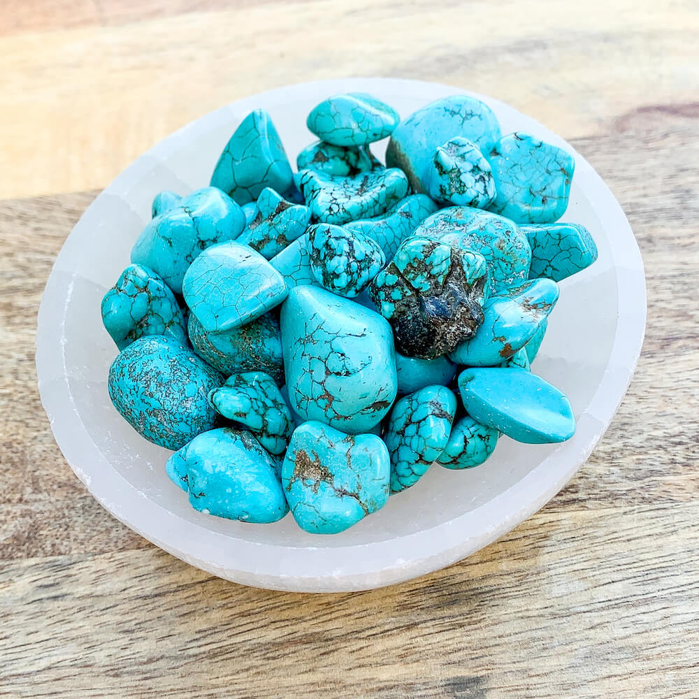 Blue Howlite Turquoise is considered to be a bridge between Heaven/Sky and Earth, grounding us while still remaining open to Spirit. Many Native American cultures believe Turquoise helps to connect the mind to the infinite possibilities of the Universe, and Turquoise is considered sacred in many Chinese cultures as well.