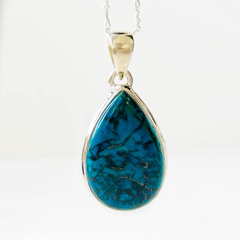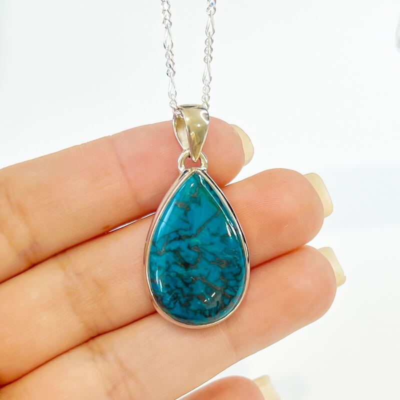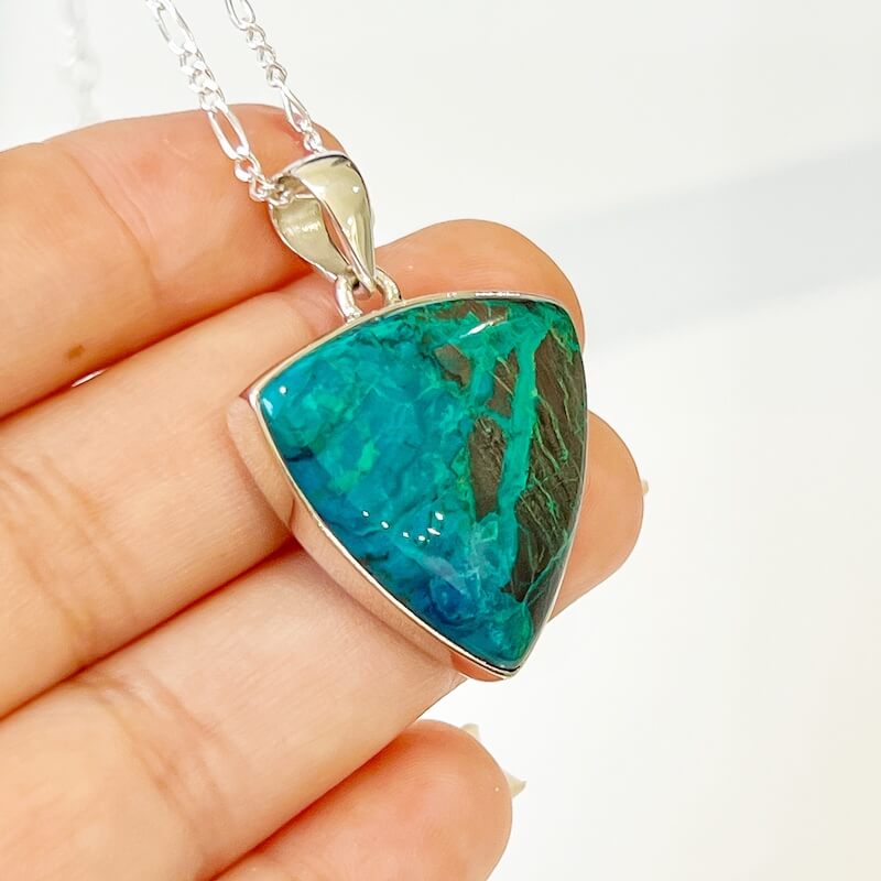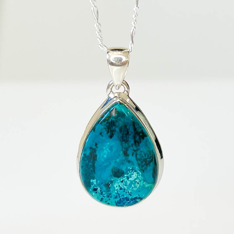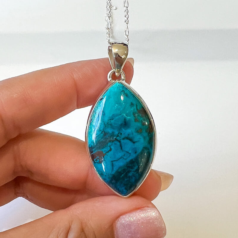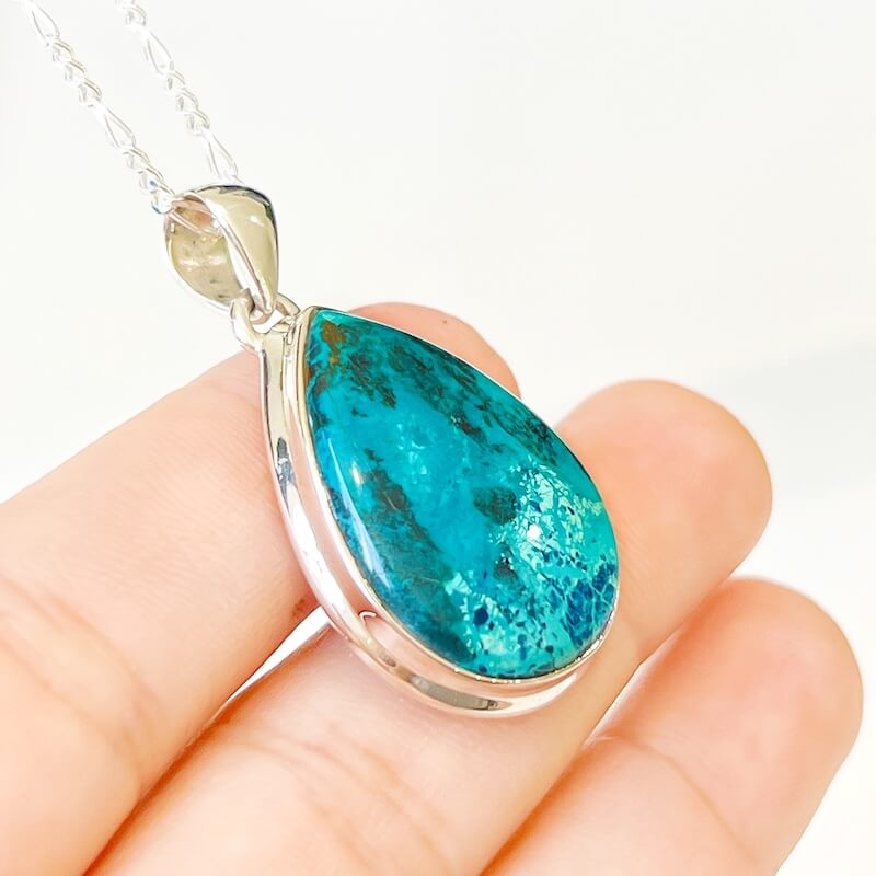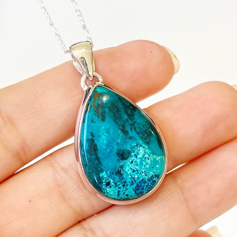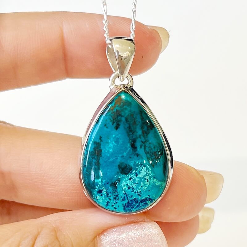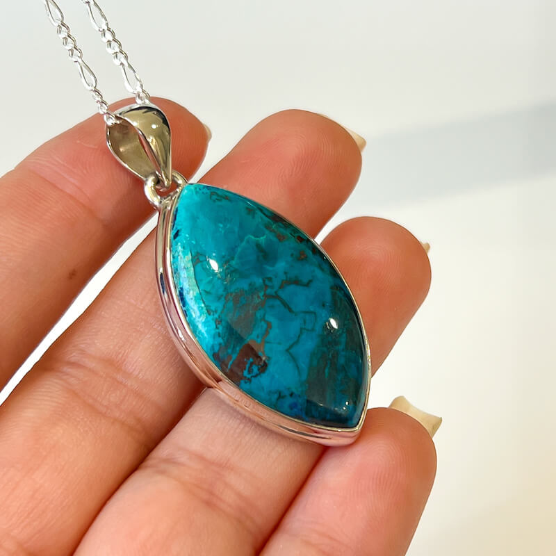 Chrysocolla is a stone of communication and expression. Its very essence is devoted to expression, empowerment, and teaching. The serenity of its turquoise blue color discharges negative energies, calms, and allows truth and inner wisdom to surface and be heard.