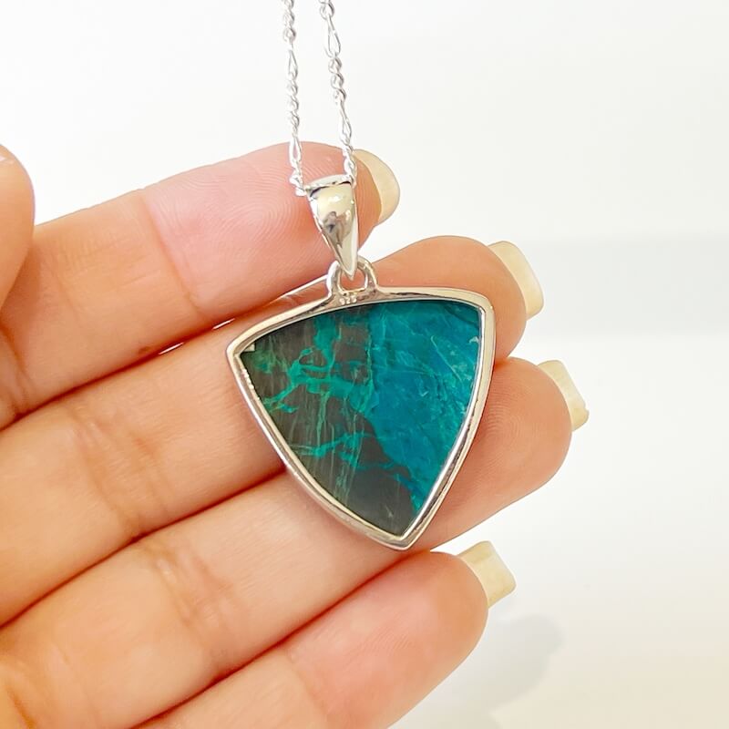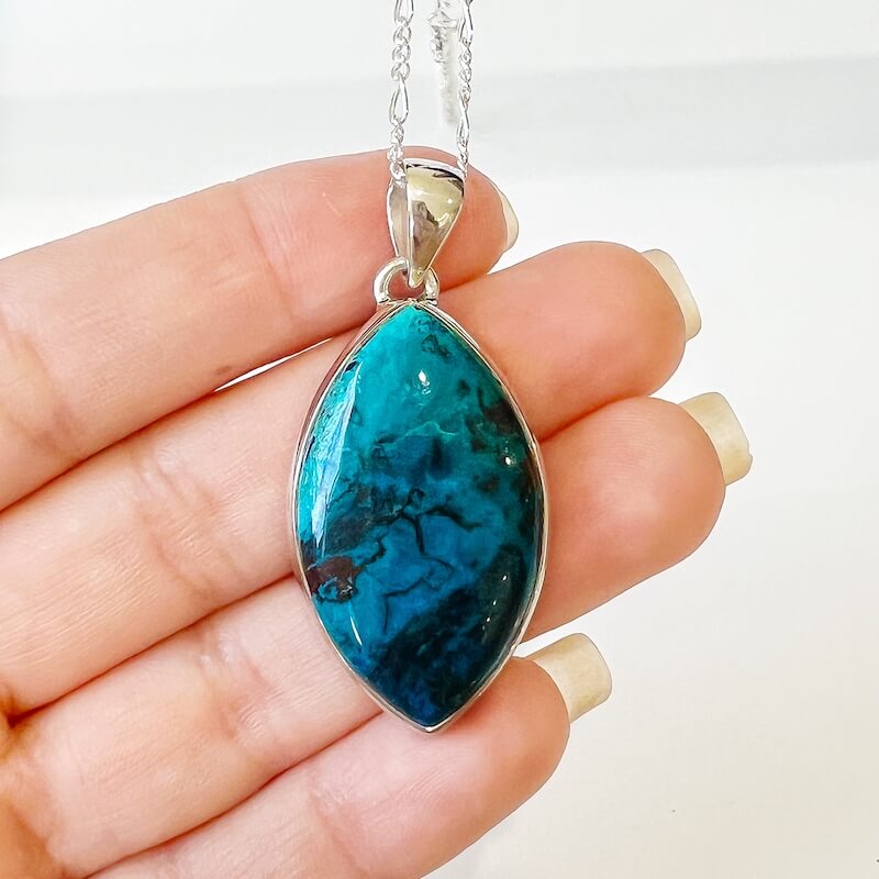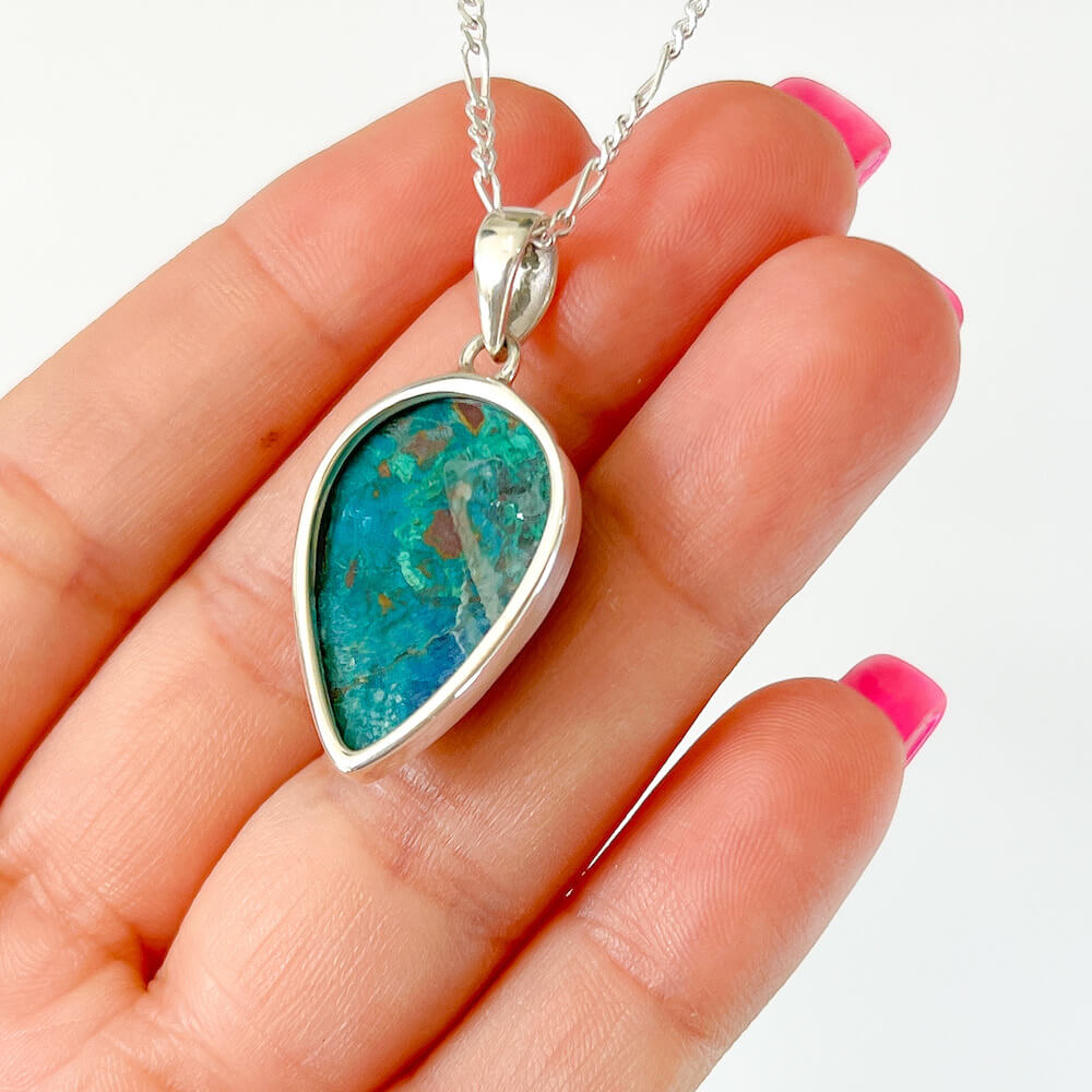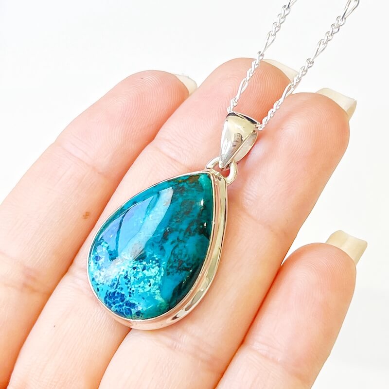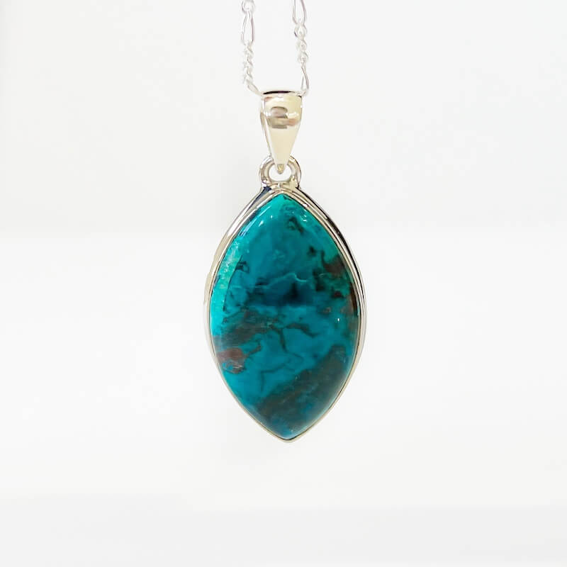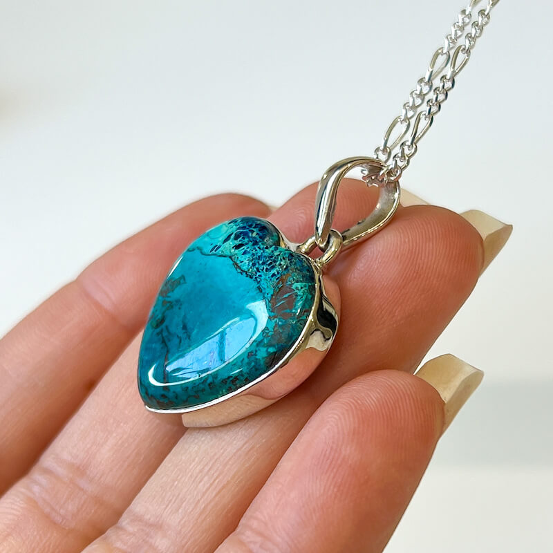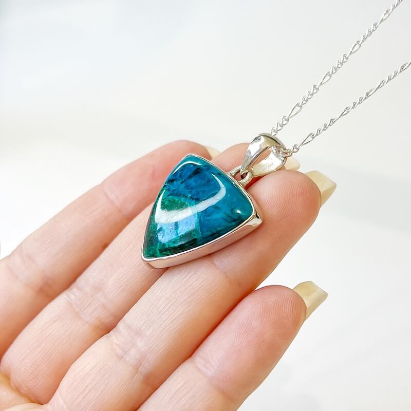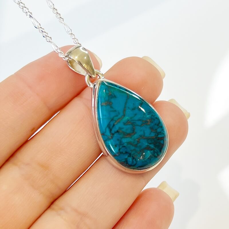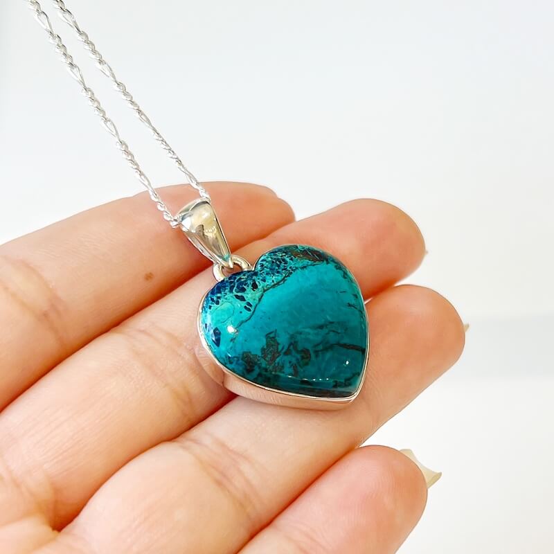 Chrysocolla is a stone of communication and expression. Its very essence is devoted to expression, empowerment, and teaching. The serenity of its turquoise blue color discharges negative energies, calms, and allows truth and inner wisdom to surface and be heard.
