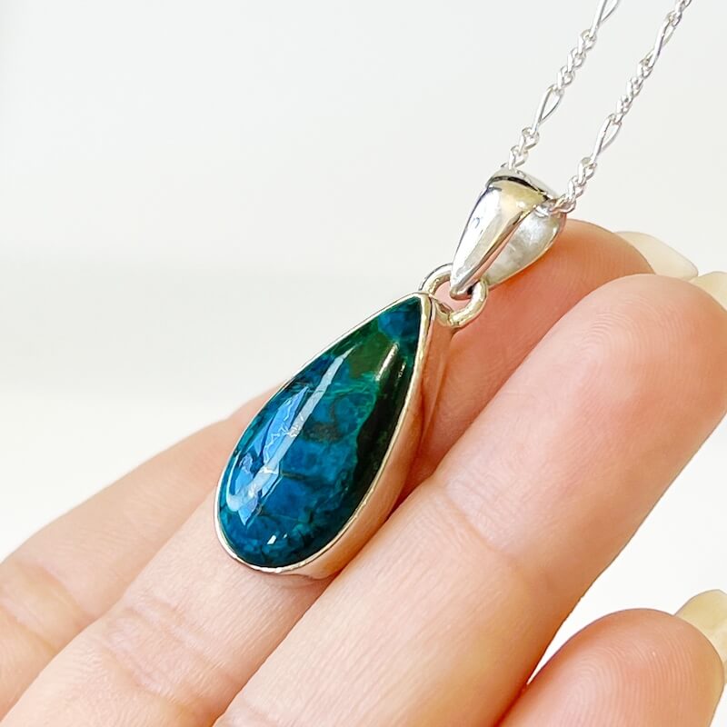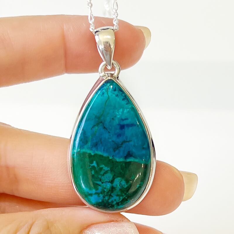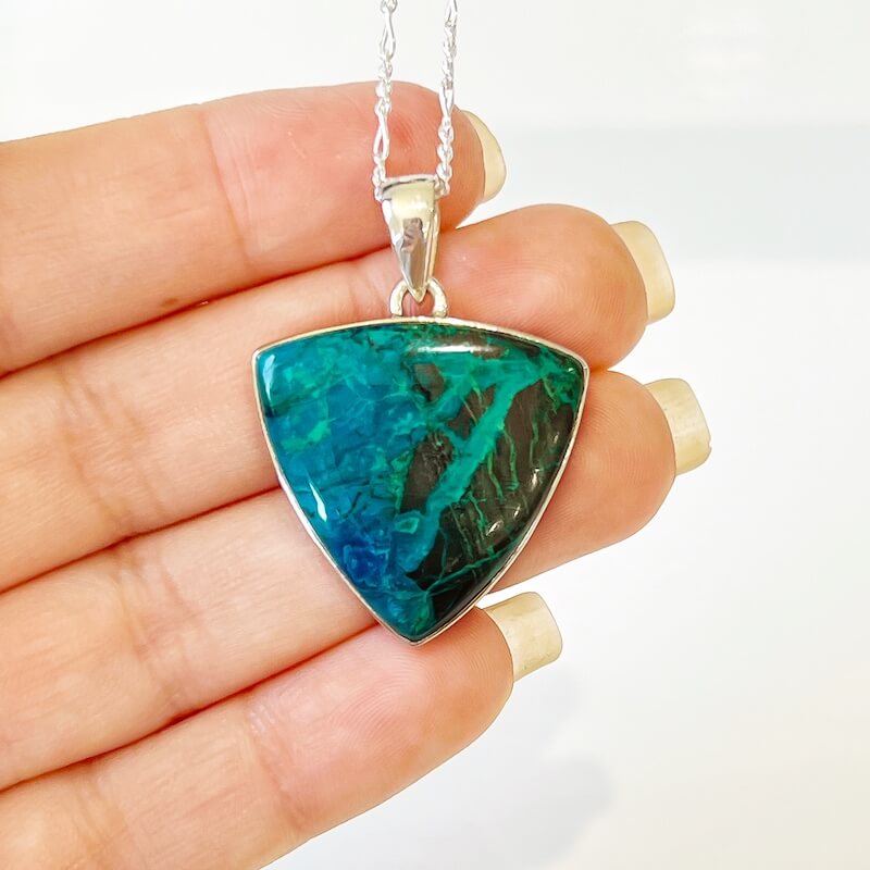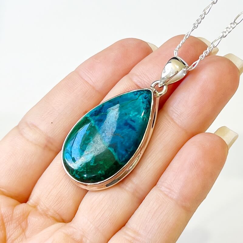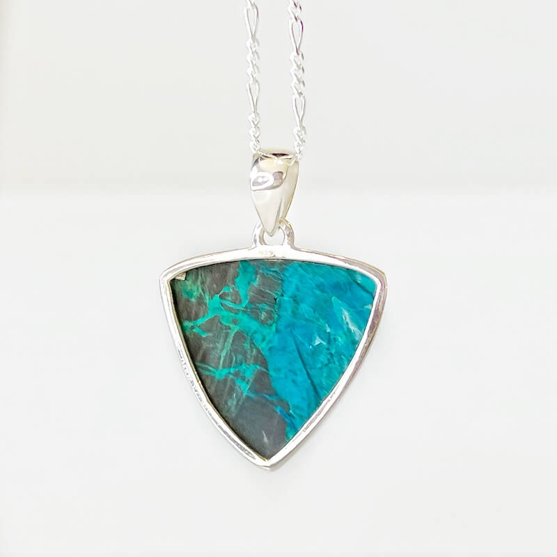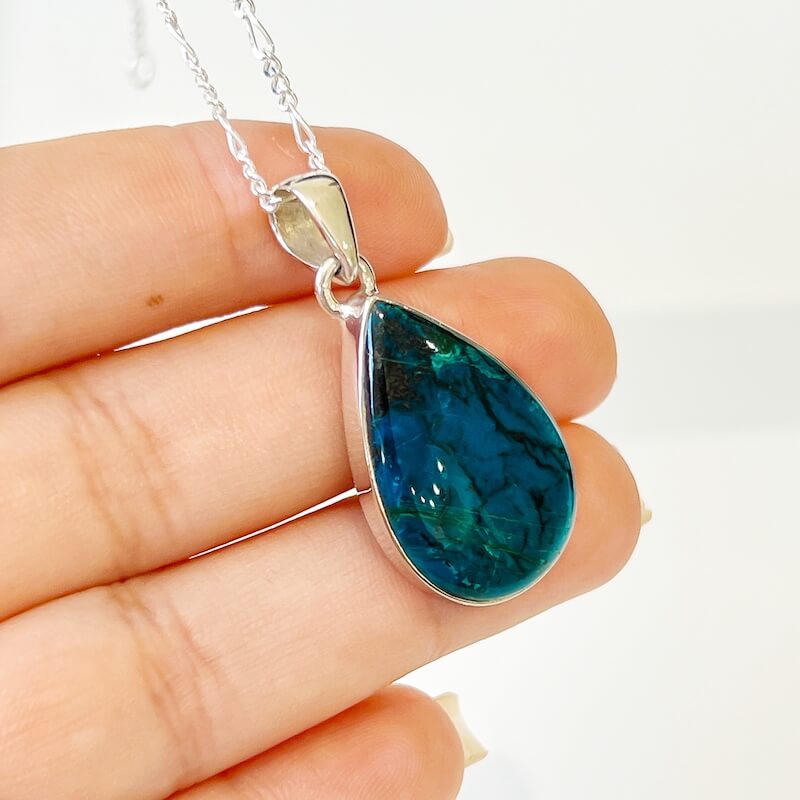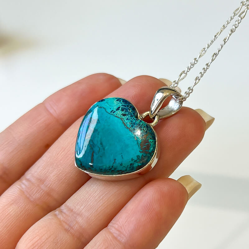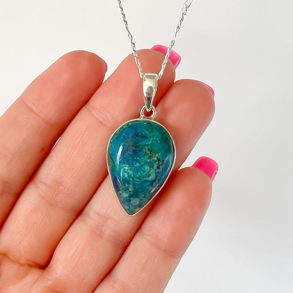 Chrysocolla is a stone of communication and expression. Its very essence is devoted to expression, empowerment, and teaching. The serenity of its turquoise blue color discharges negative energies, calms, and allows truth and inner wisdom to surface and be heard.
