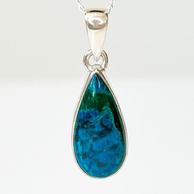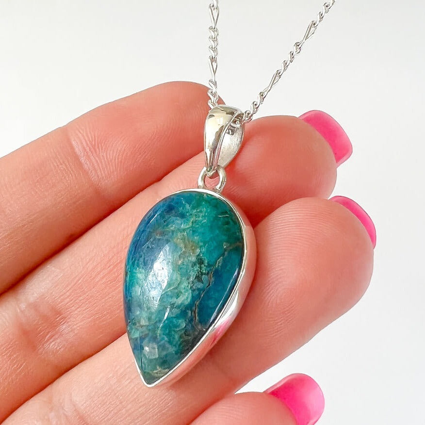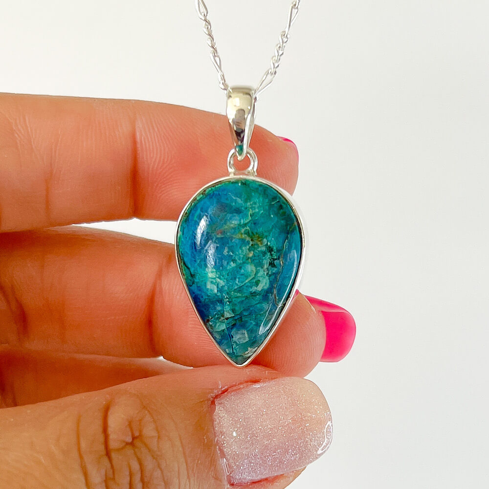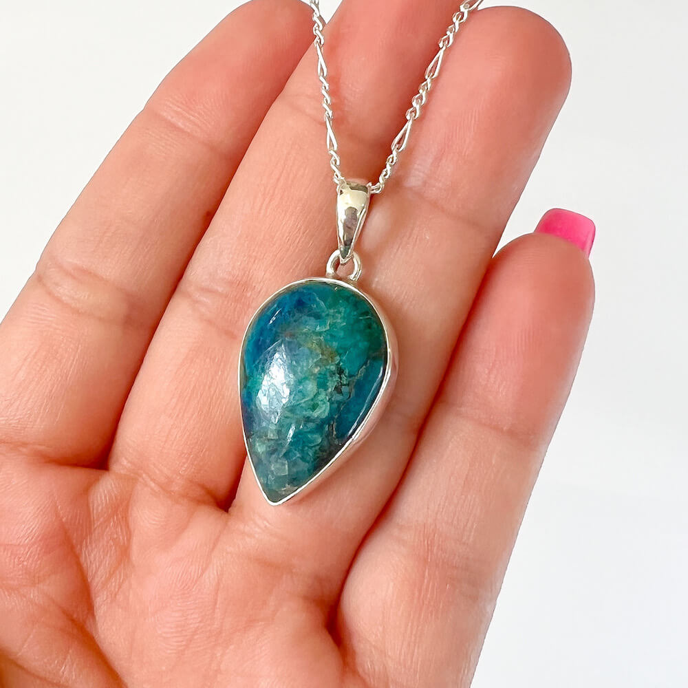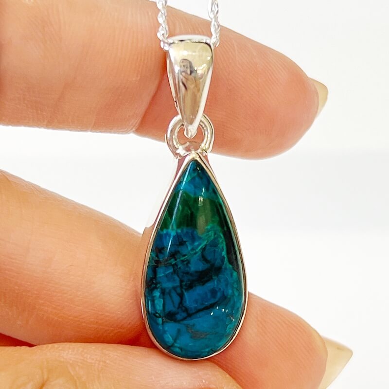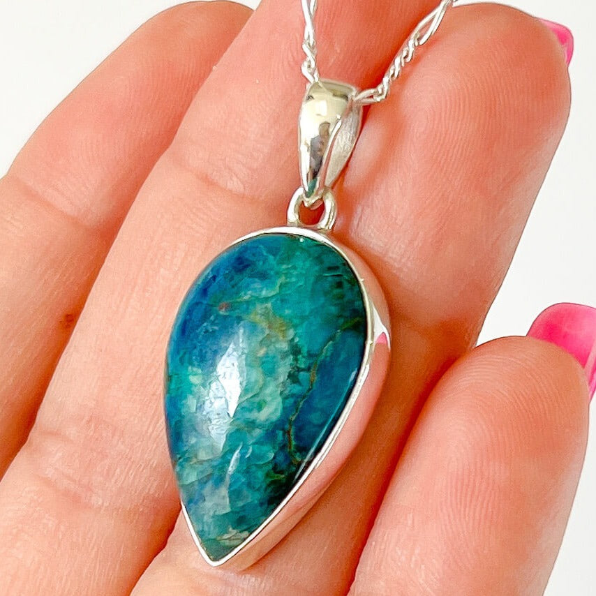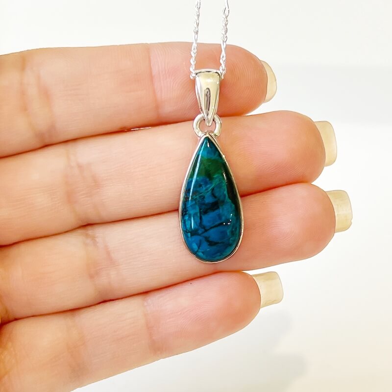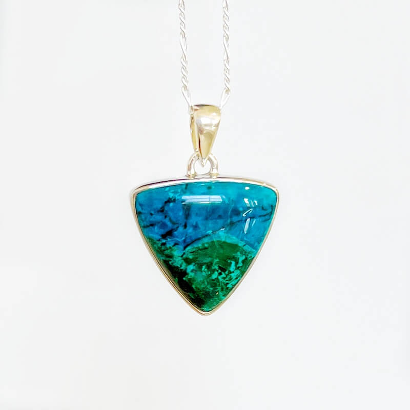 Chrysocolla is a stone of communication and expression. Its very essence is devoted to expression, empowerment, and teaching. The serenity of its turquoise blue color discharges negative energies, calms, and allows truth and inner wisdom to surface and be heard.