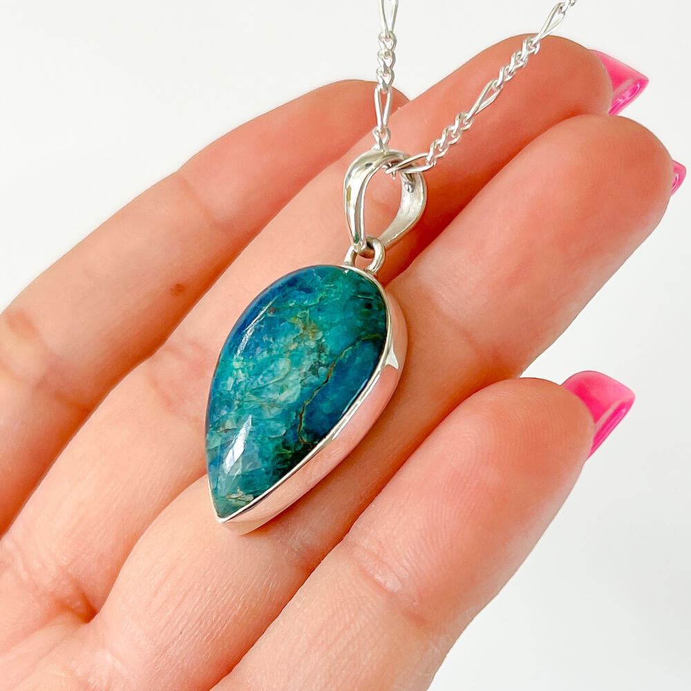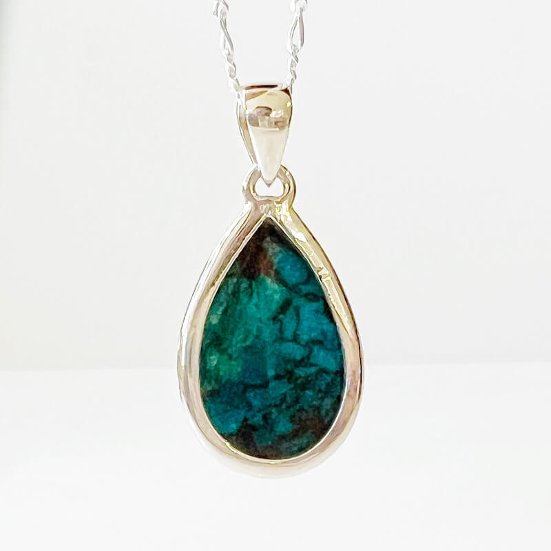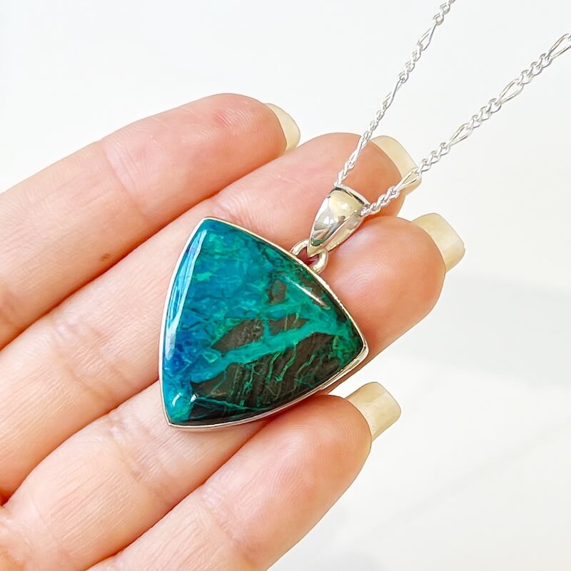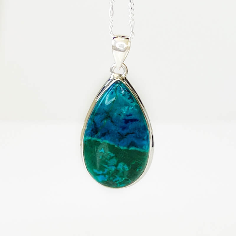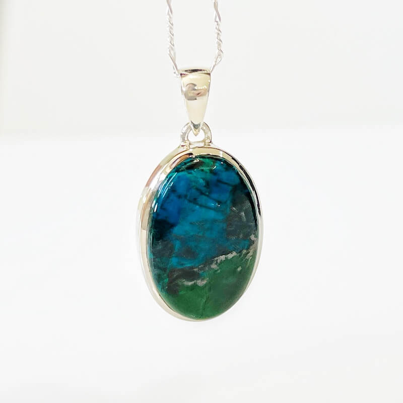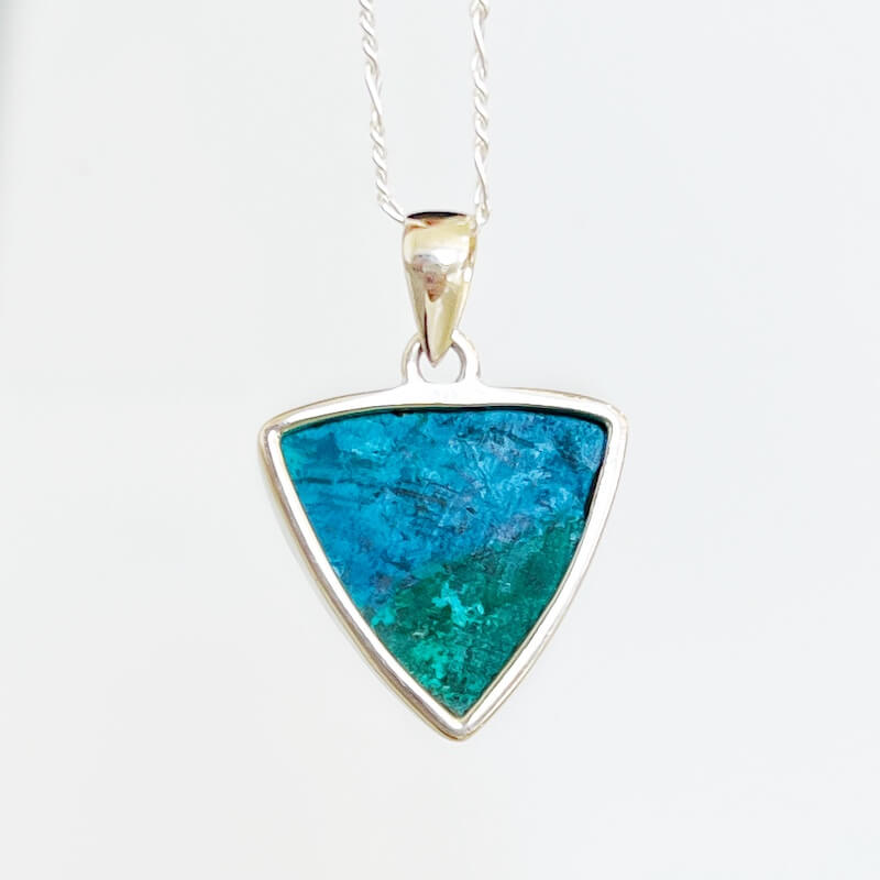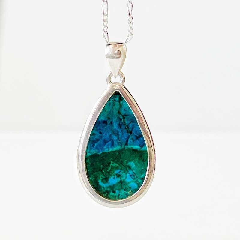 - Polished Authentic Chrysocolla Stone bezel set into 925 sterling silver