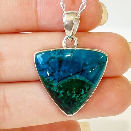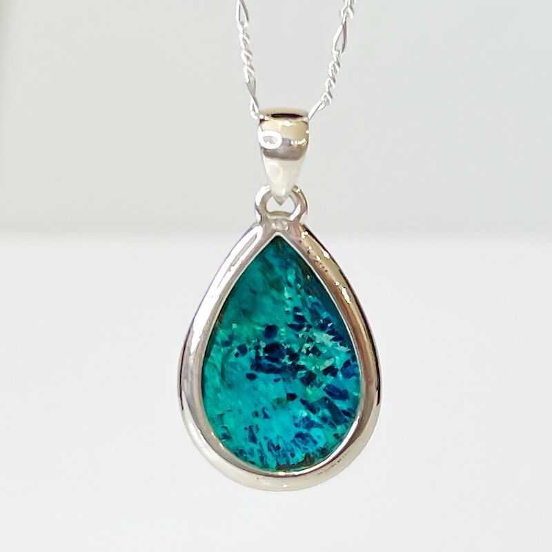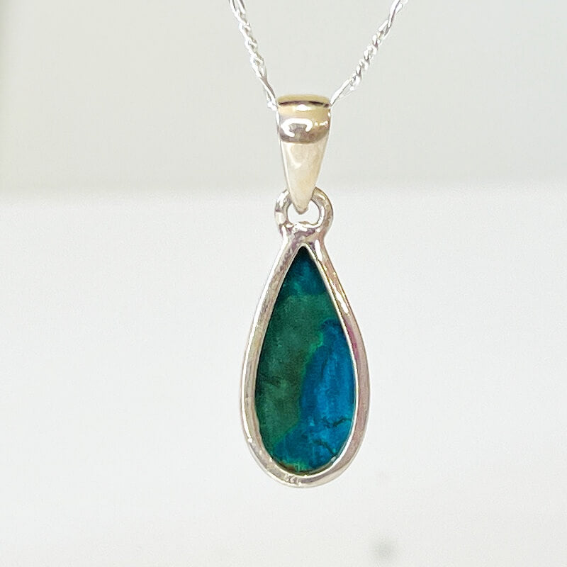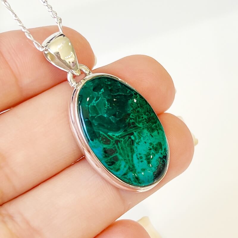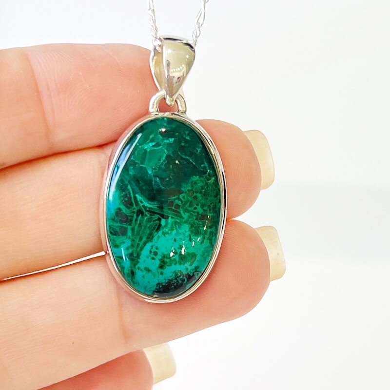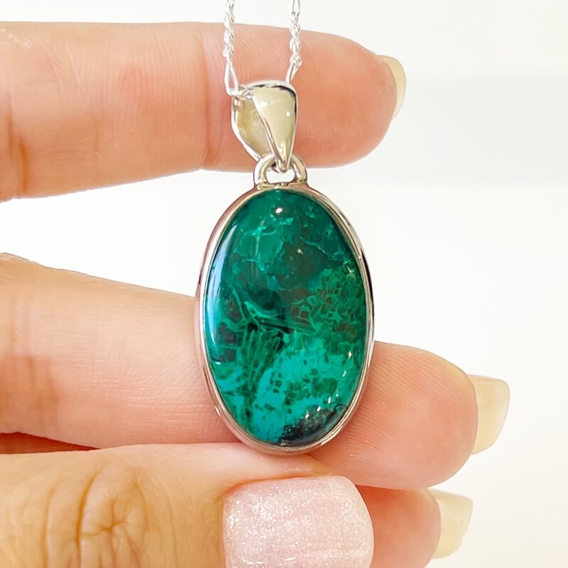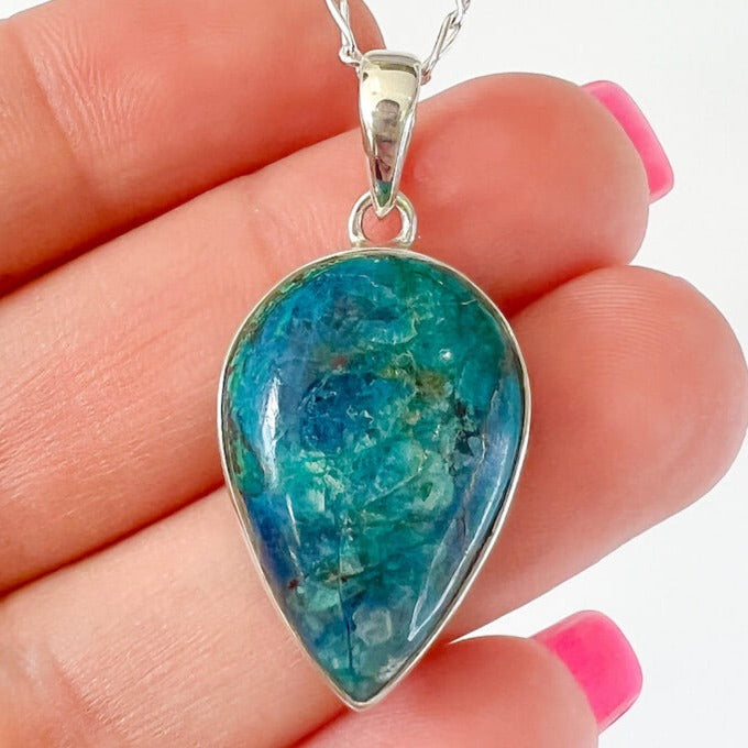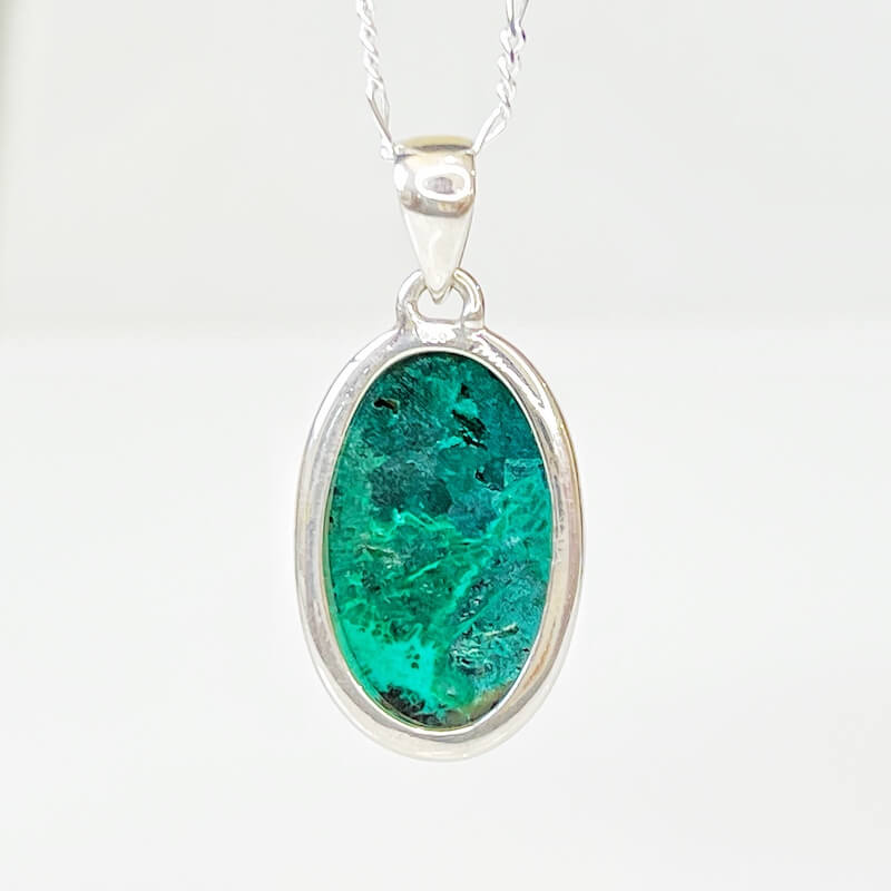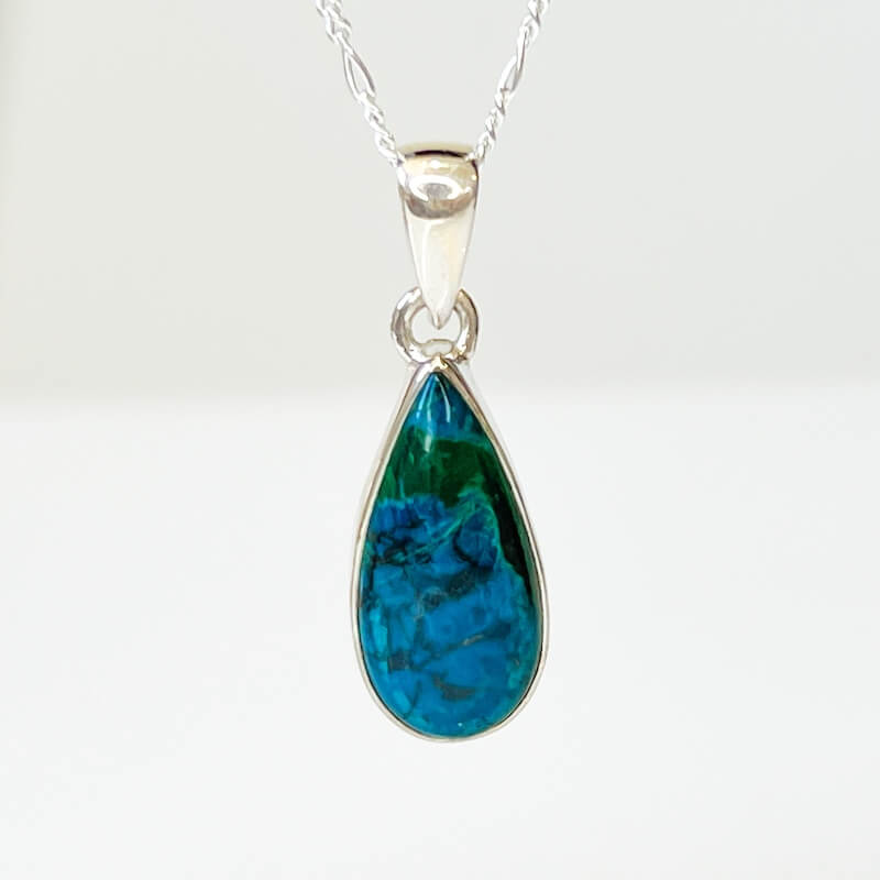 - Polished Authentic Chrysocolla Stone bezel set into 925 sterling silver